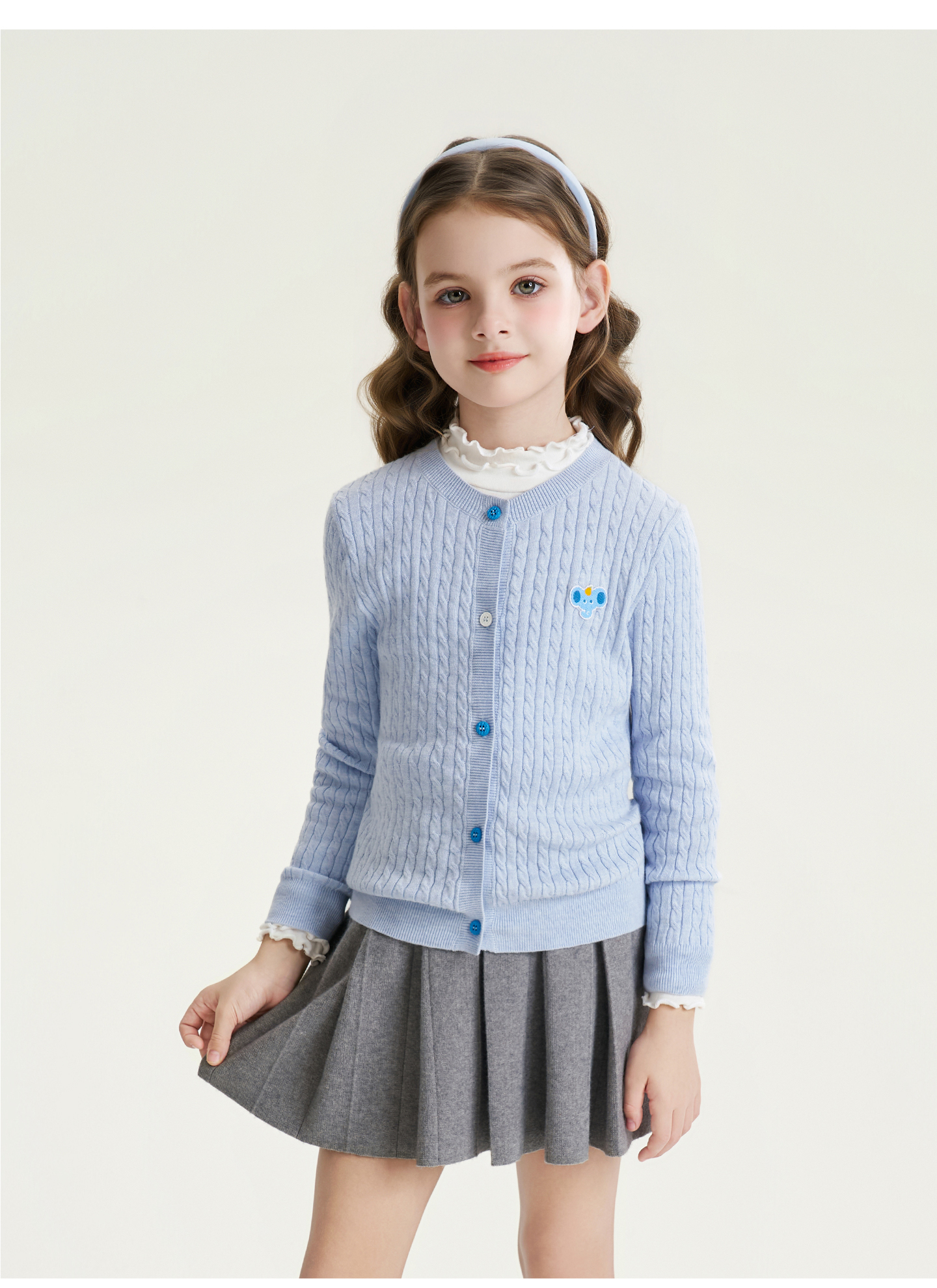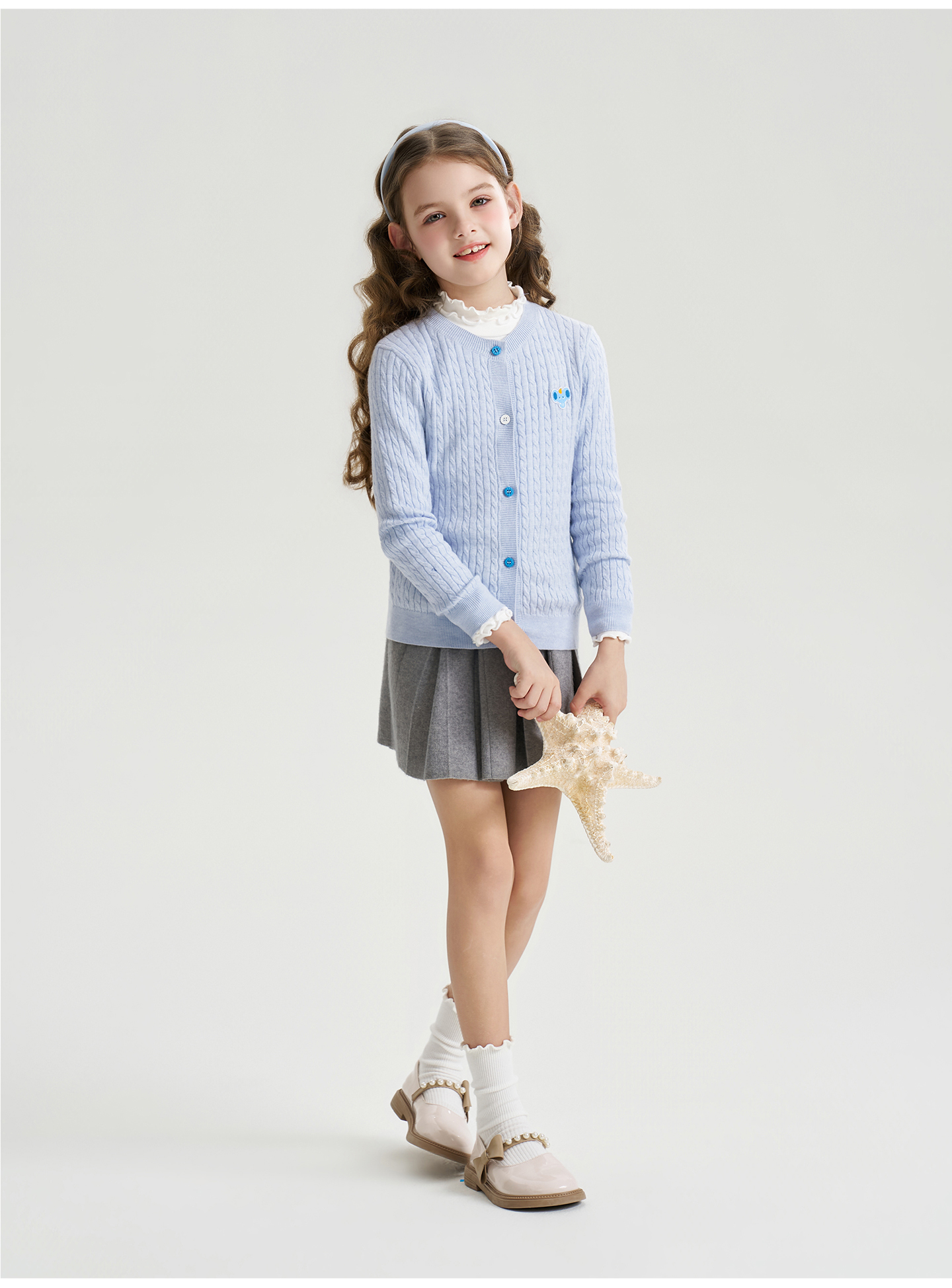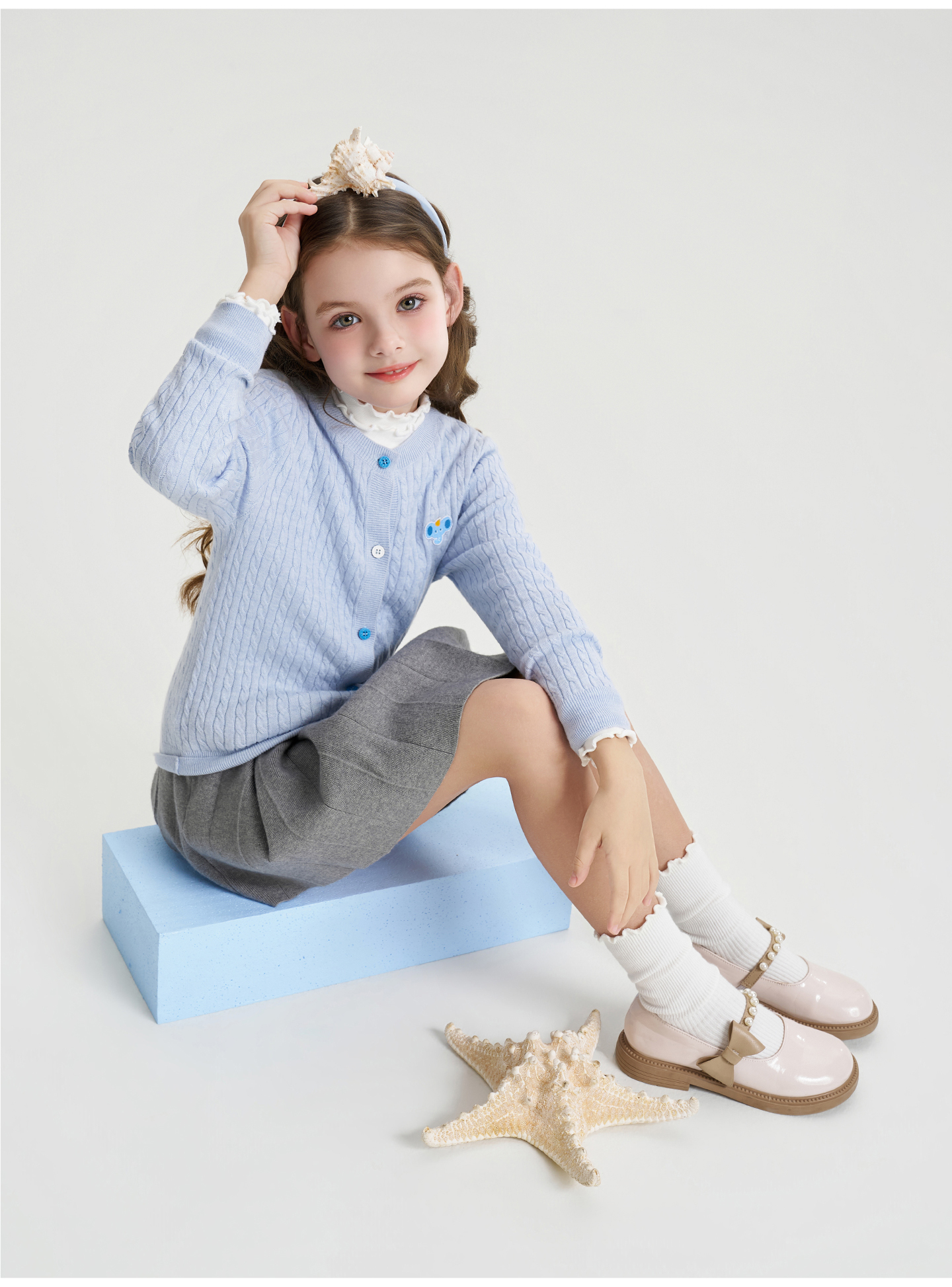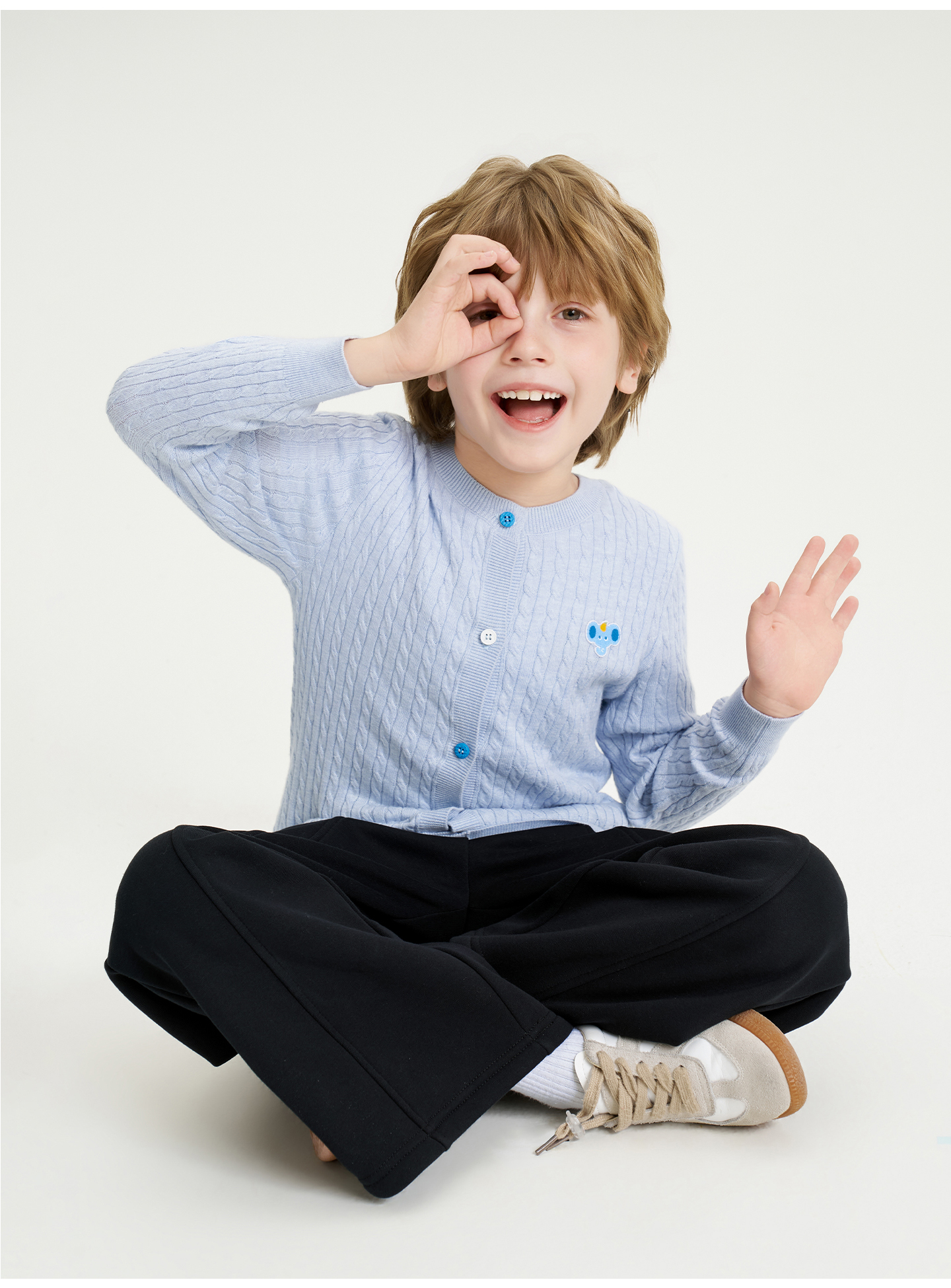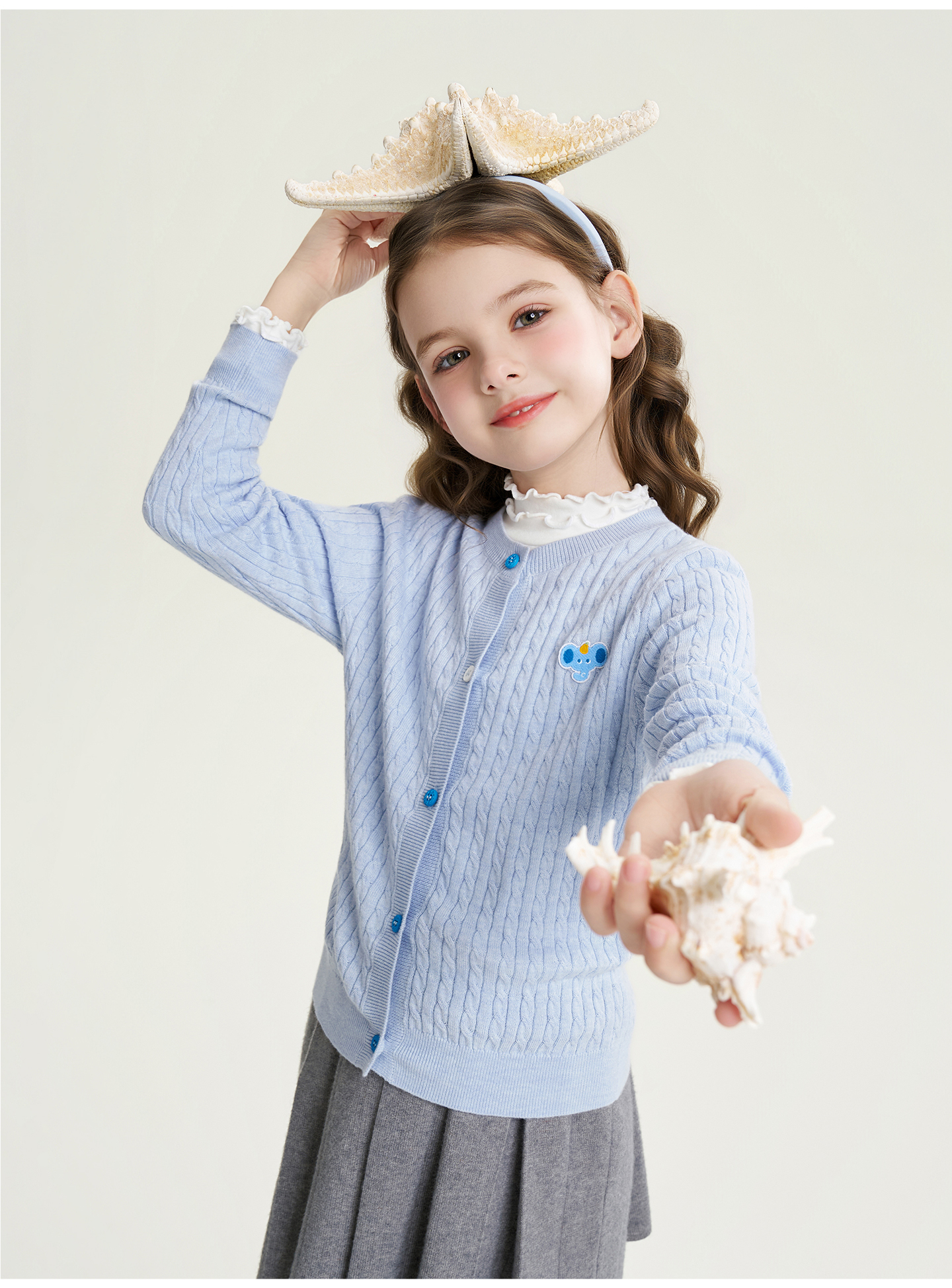 mettekids儿童针织衫2026春新款女童洋气绞花桑蚕丝男童毛衣开衫