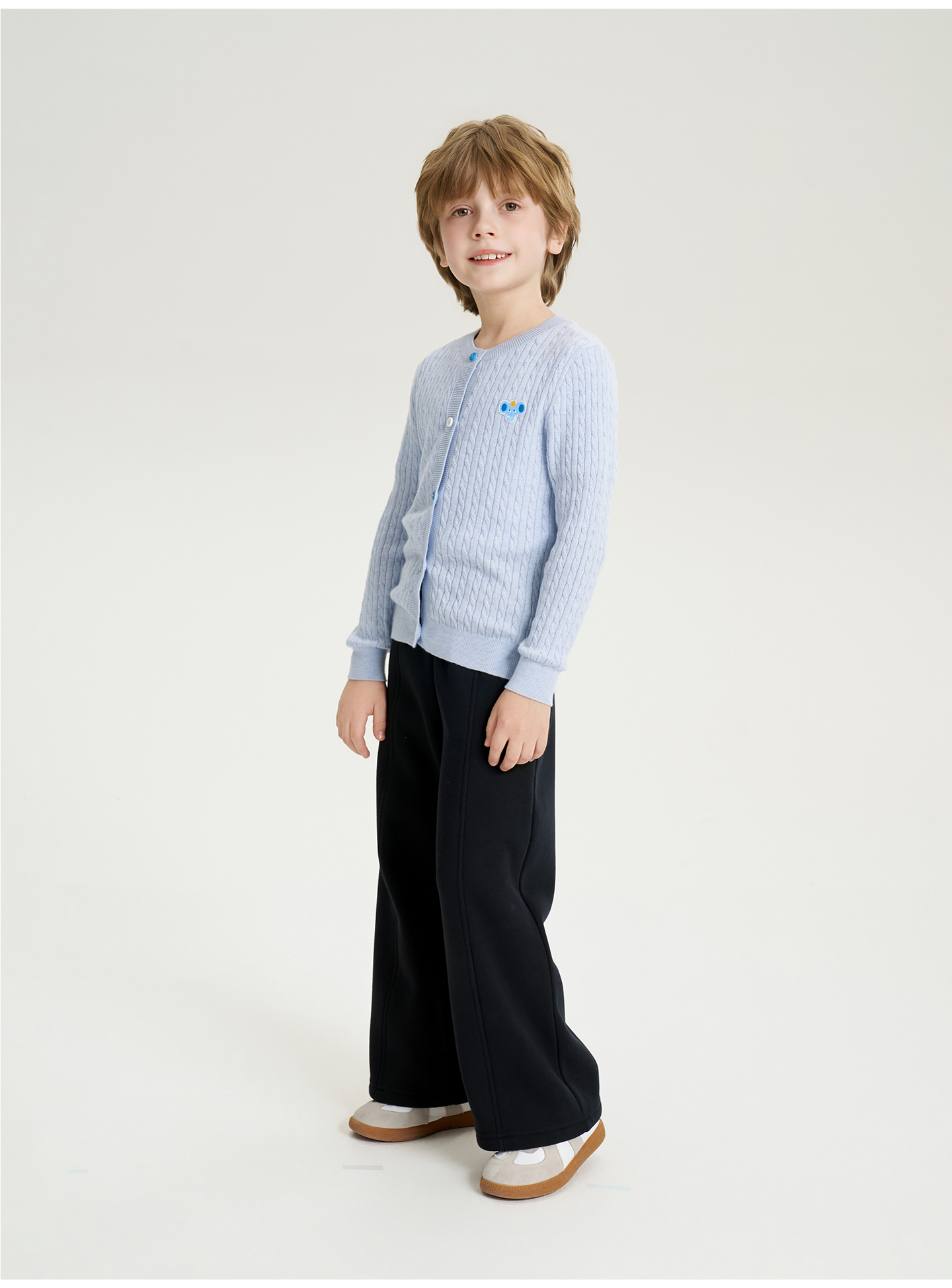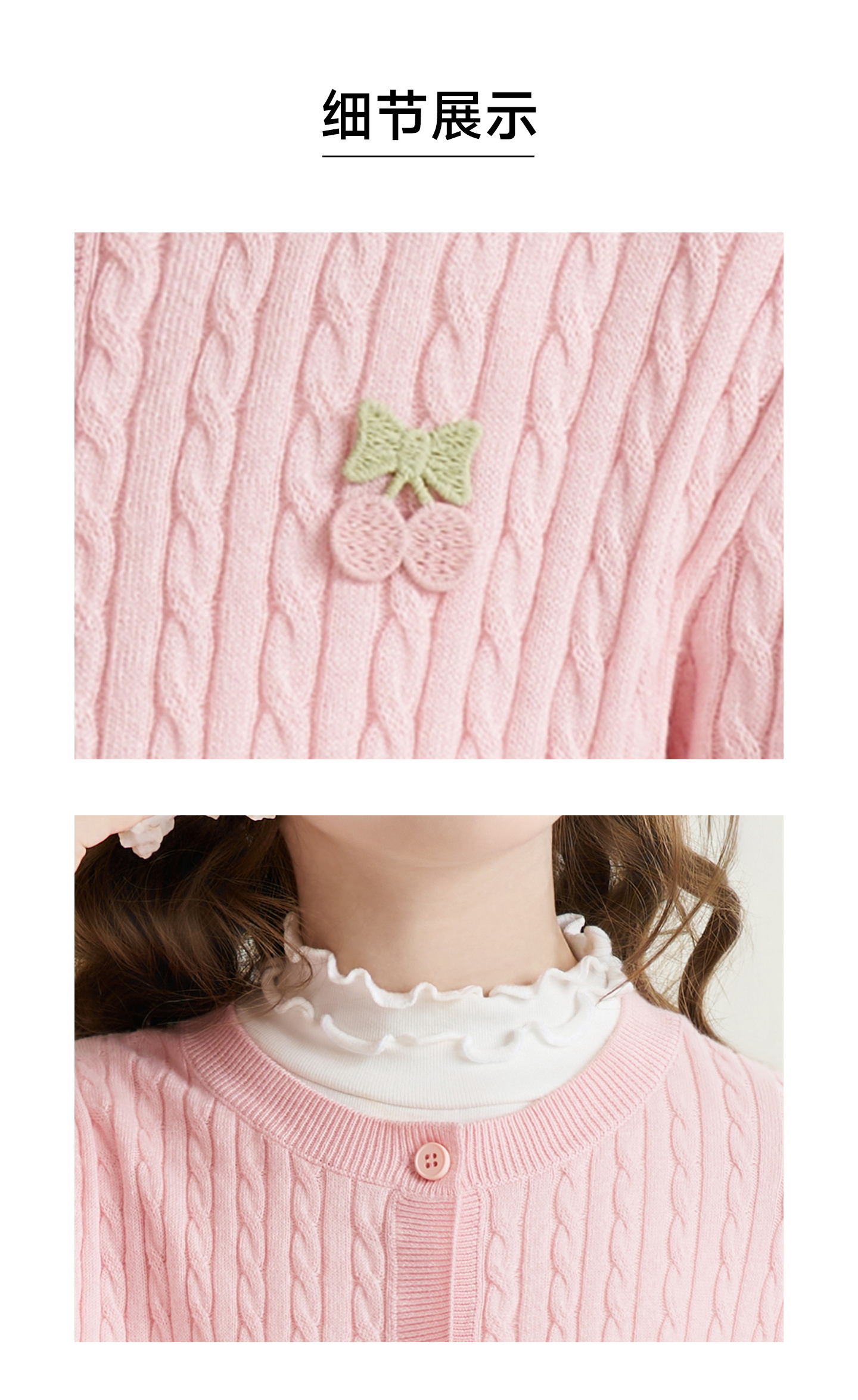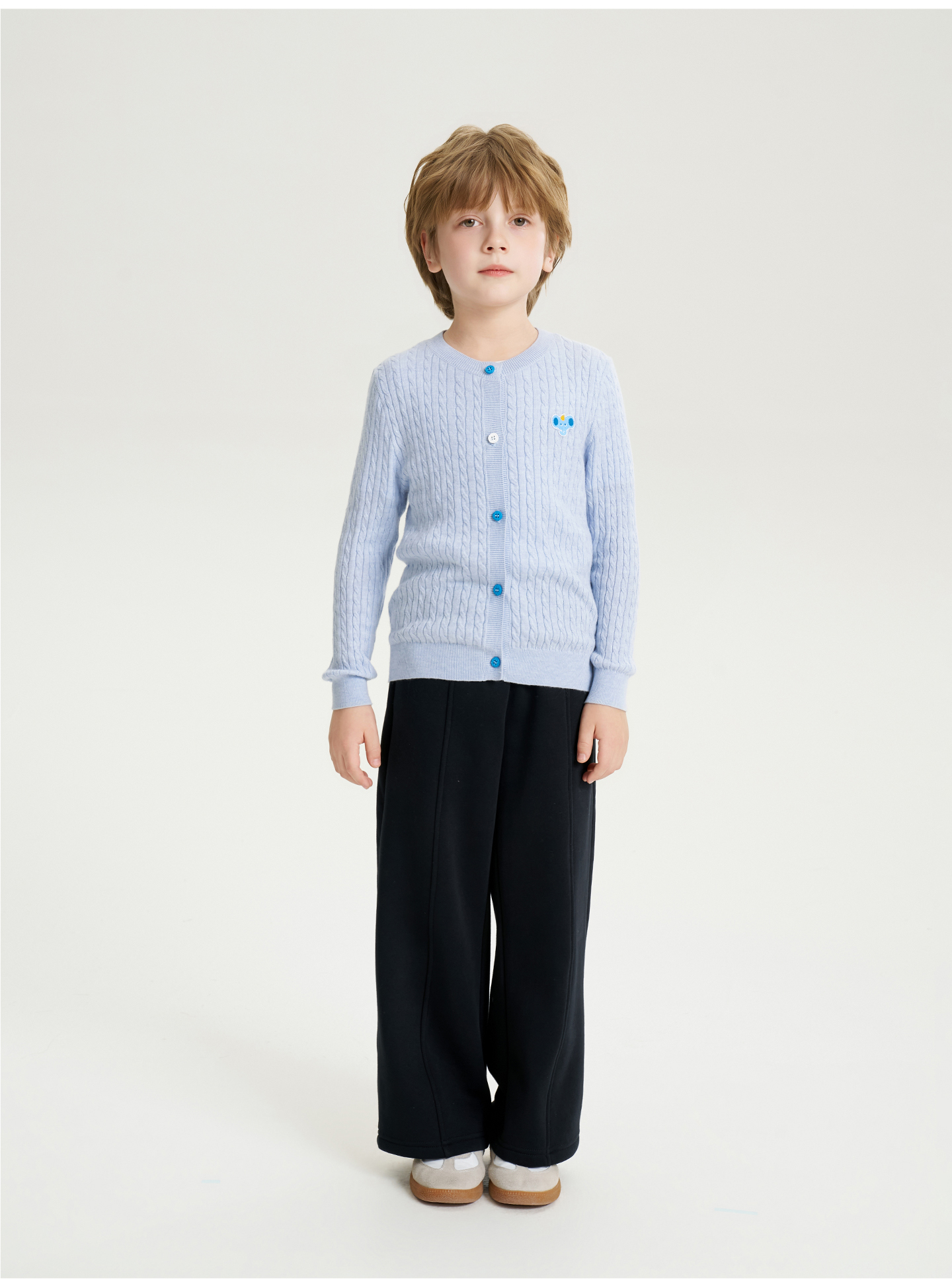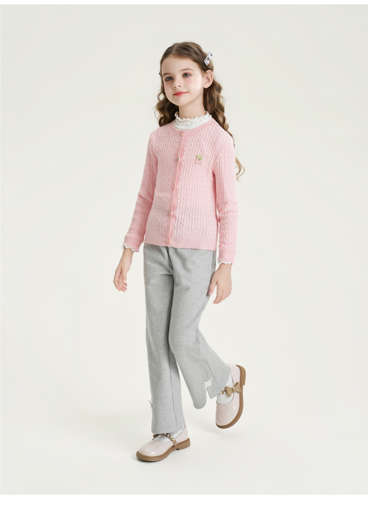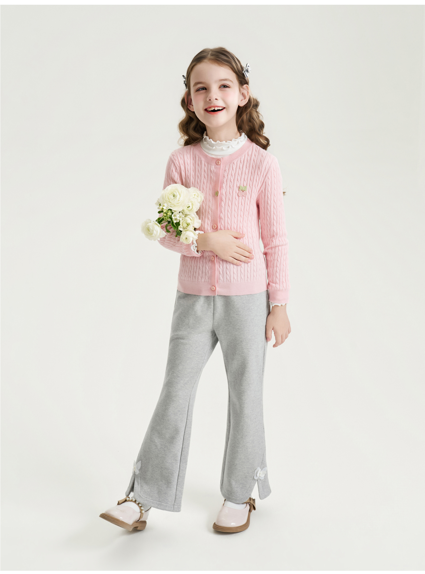 mettekids儿童针织衫2026春新款女童洋气绞花桑蚕丝男童毛衣开衫
