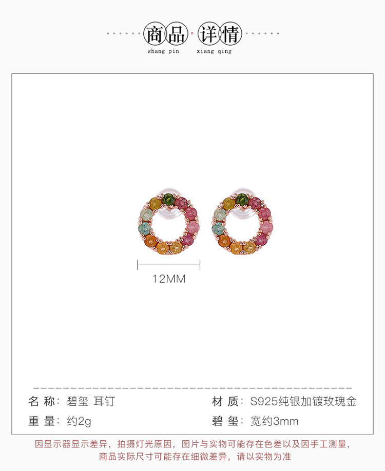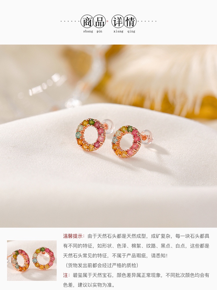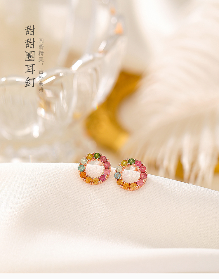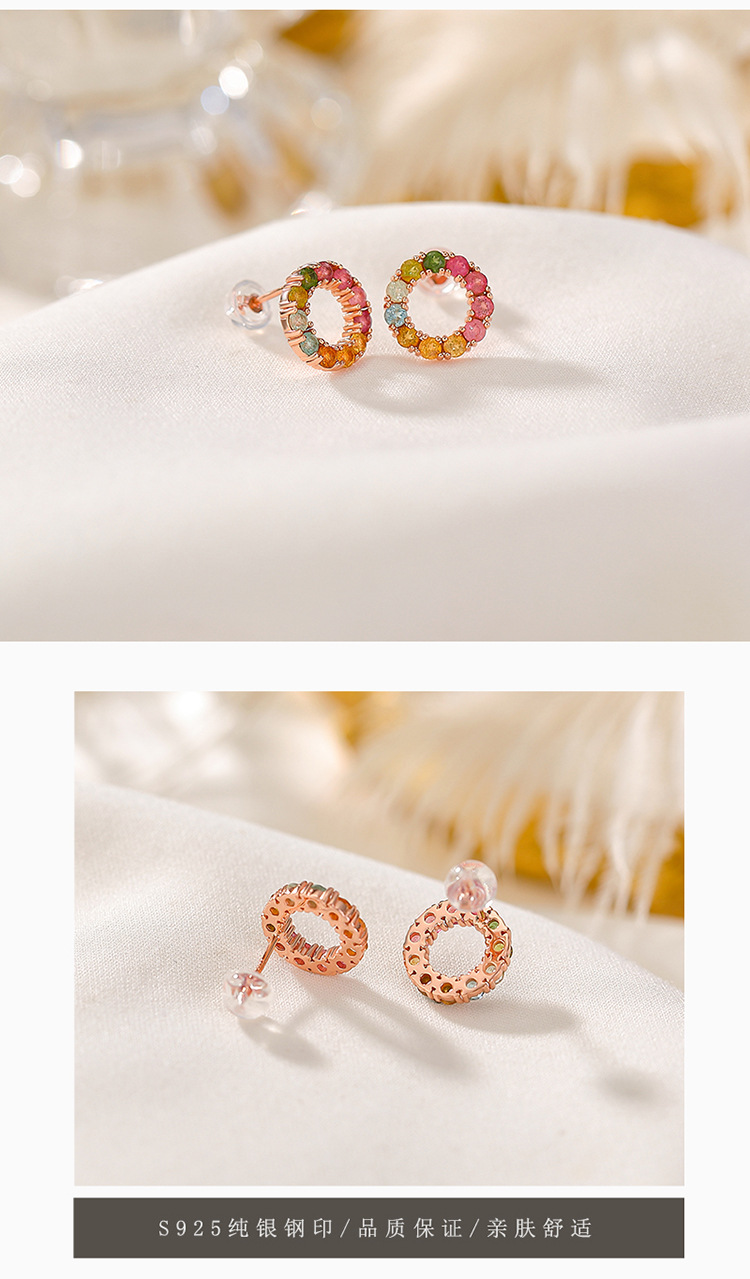 【甜甜圈】S925纯银镀玫瑰金彩色碧玺耳饰【CW-ED03963】