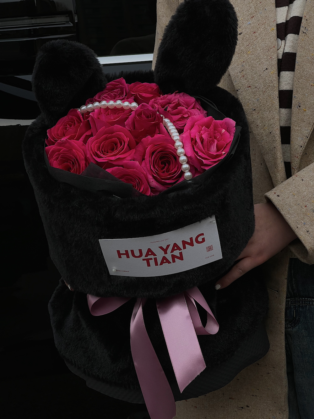 搭配黑色毛绒兔耳朵