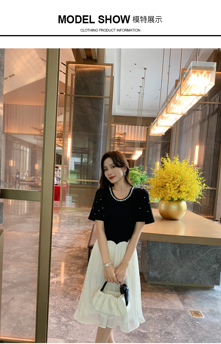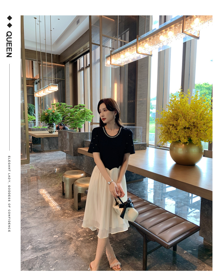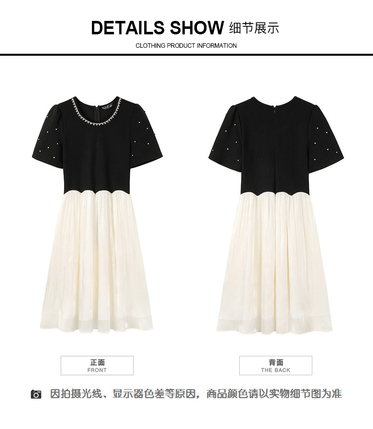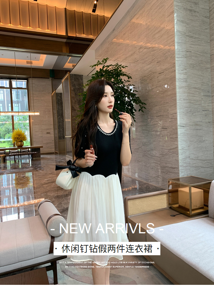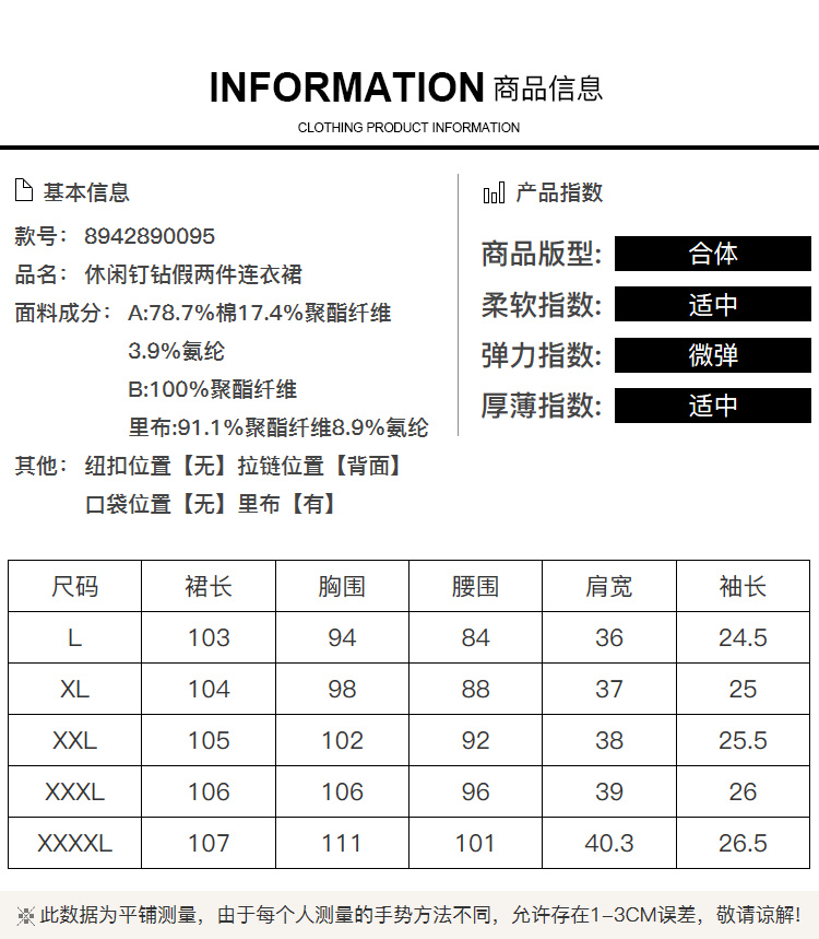 [奢姿轻奢系列]休闲钉钻连衣裙大码女装夏季新款胖妹妹假两件裙子8942890095【1】