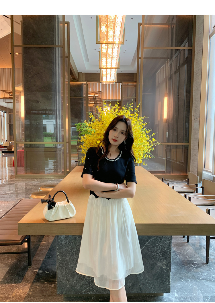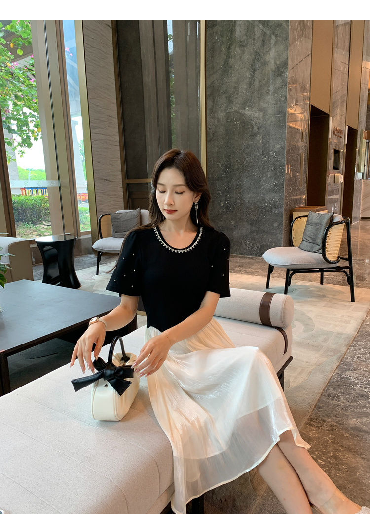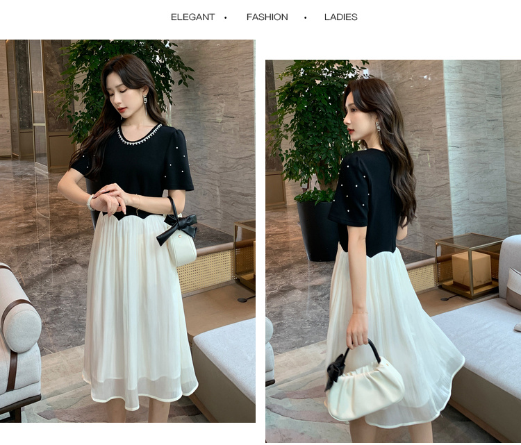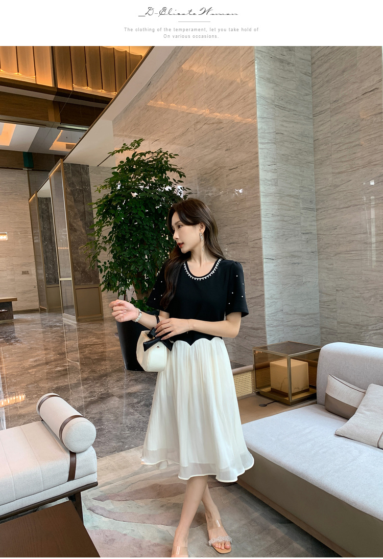 [奢姿轻奢系列]休闲钉钻连衣裙大码女装夏季新款胖妹妹假两件裙子8942890095【1】