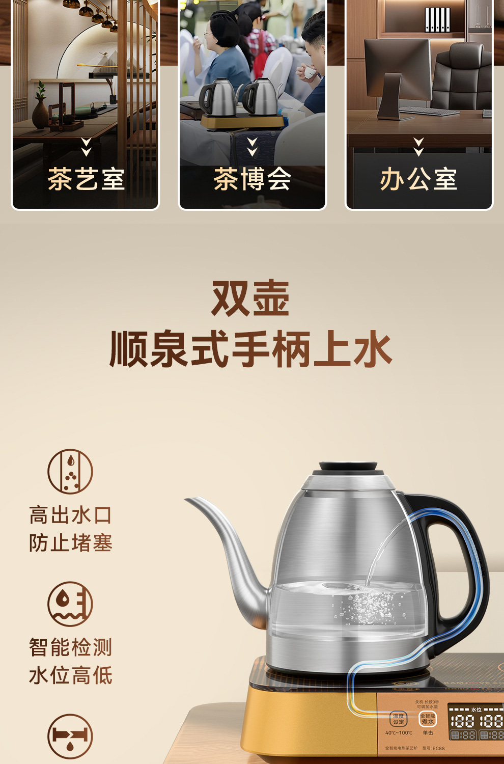 金灶EC-88自动上水电热水壶双壶智能保温一体烧水壶泡茶专用电水壶