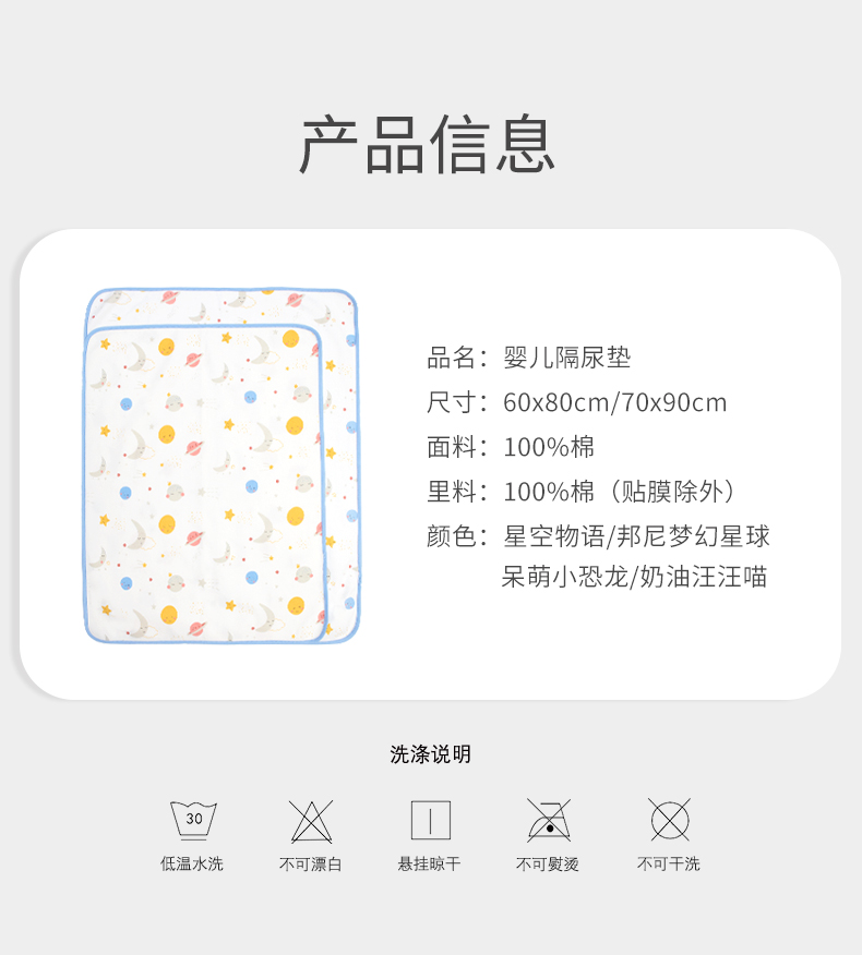 *little tiny婴儿隔尿垫秋防水防漏尿透气可水洗纯棉新生婴儿宝宝