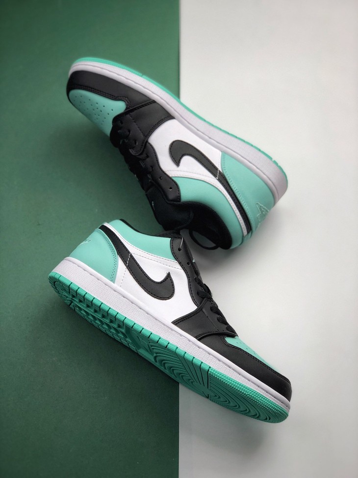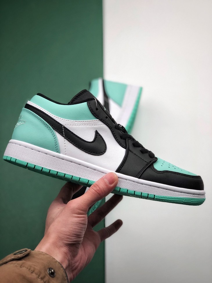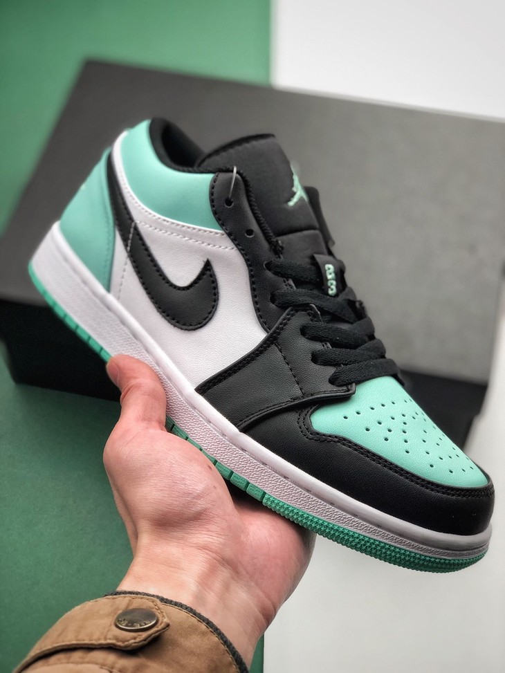 aj1低乔丹一代 低帮 Air Jordan 1 Low Emerald Rise 薄荷绿, 这款低帮也采用了黑脚趾配色,配色极致清爽,让不少球鞋爱好者争相入手