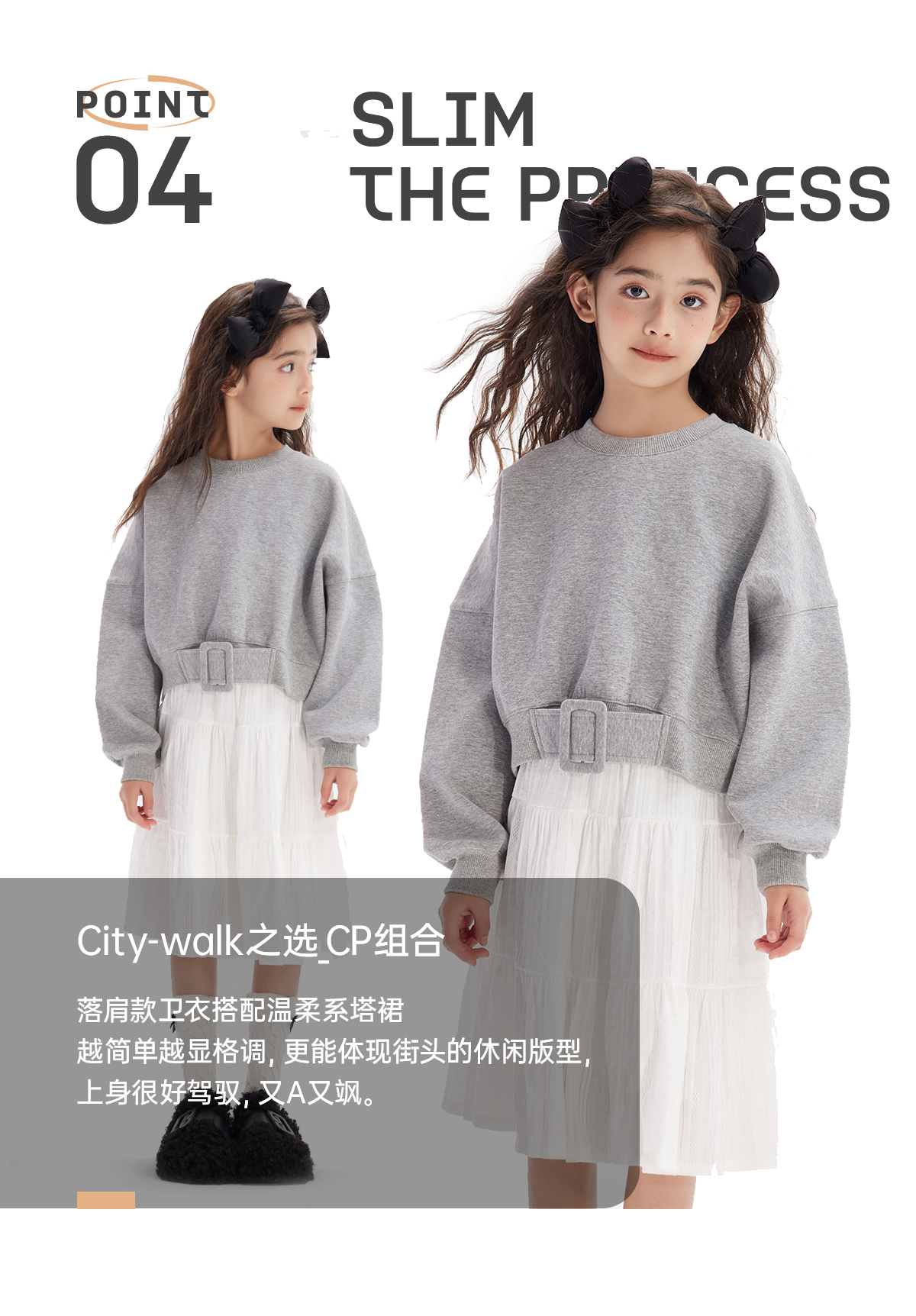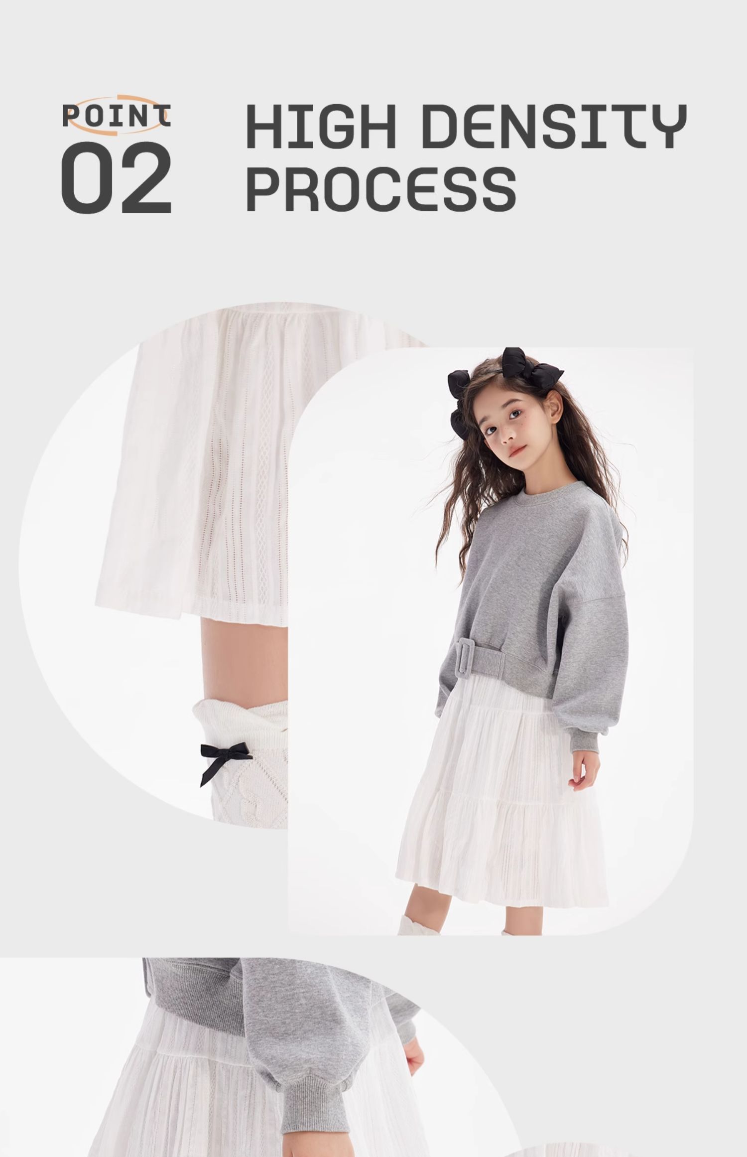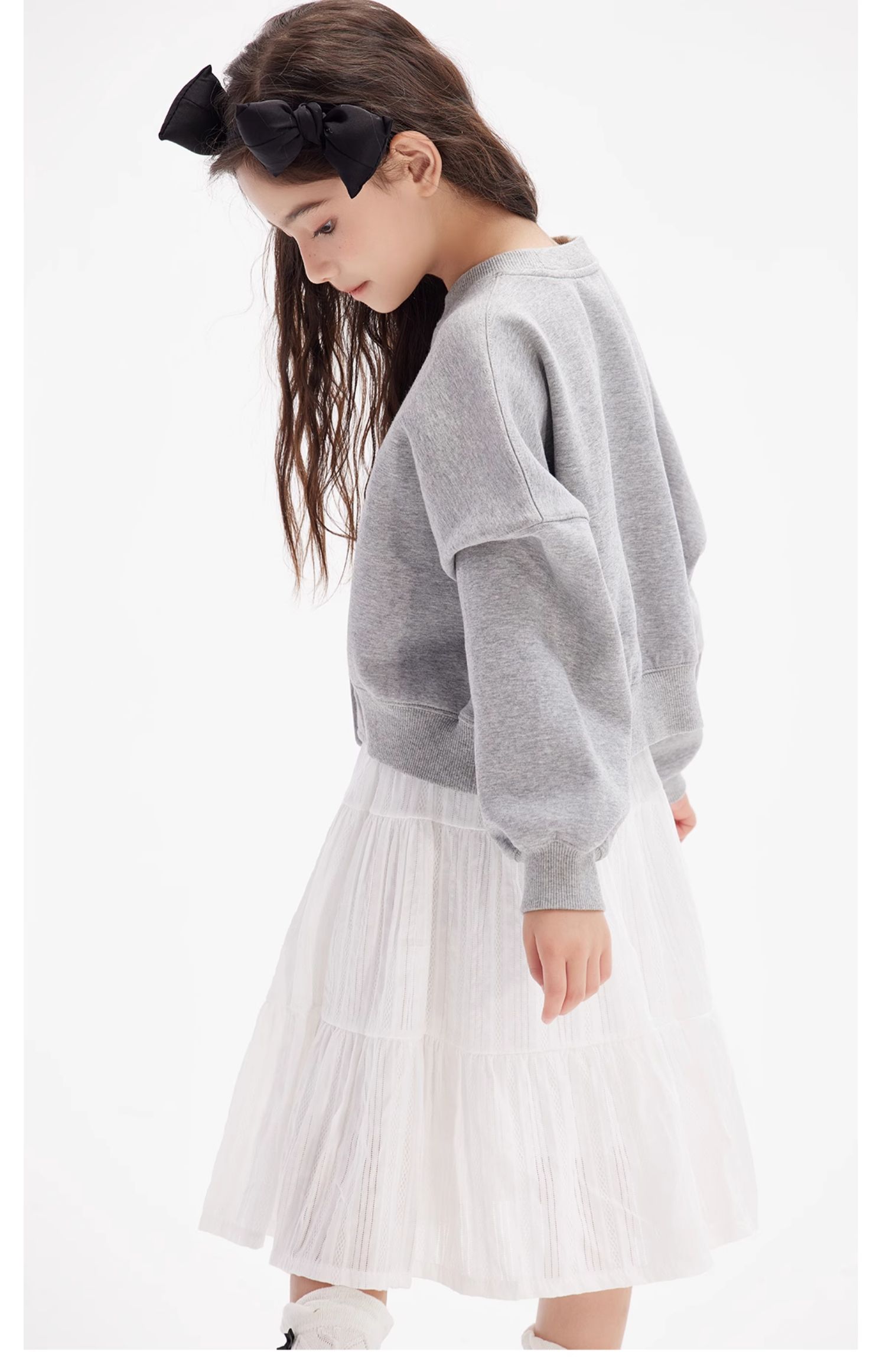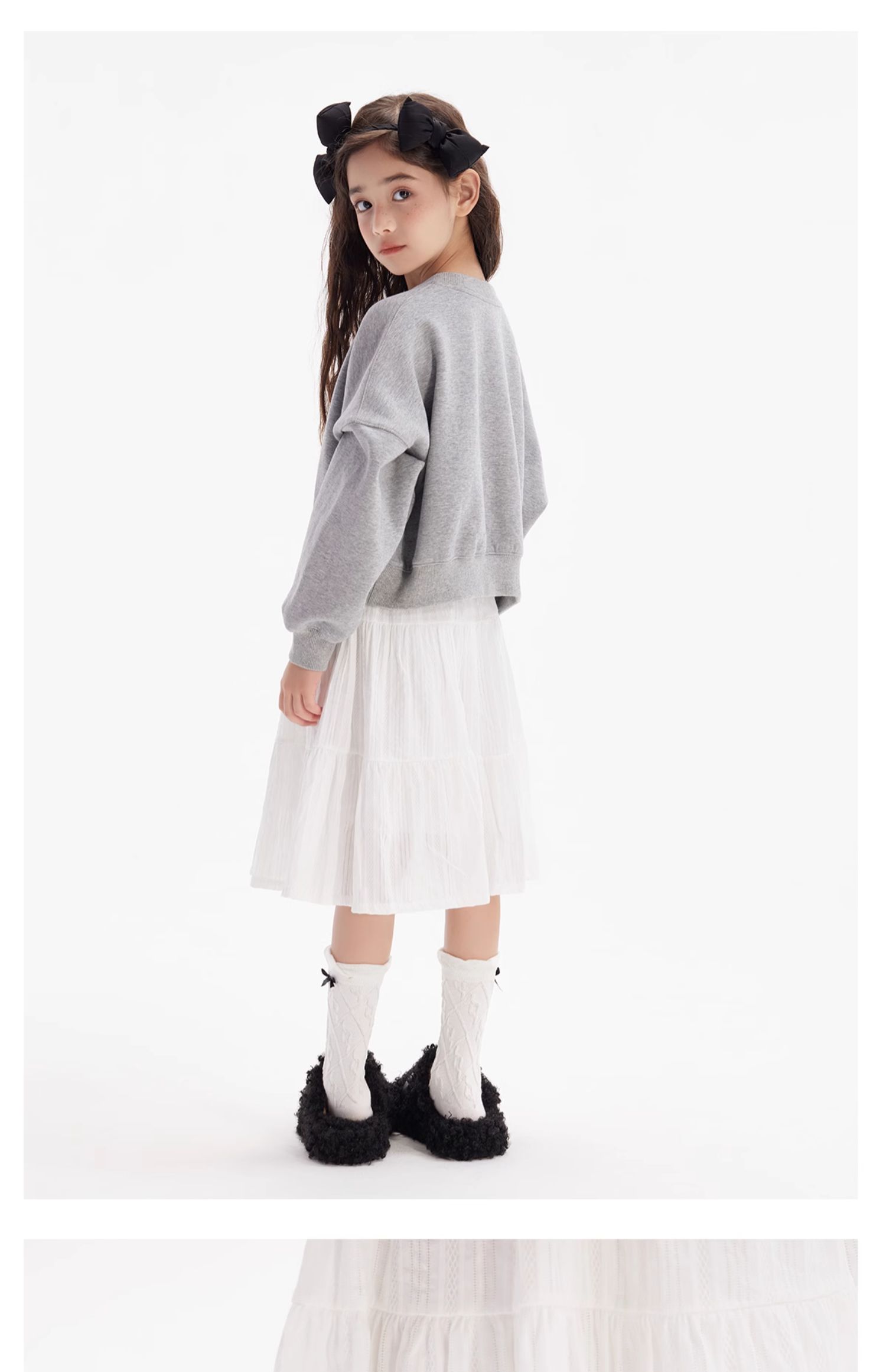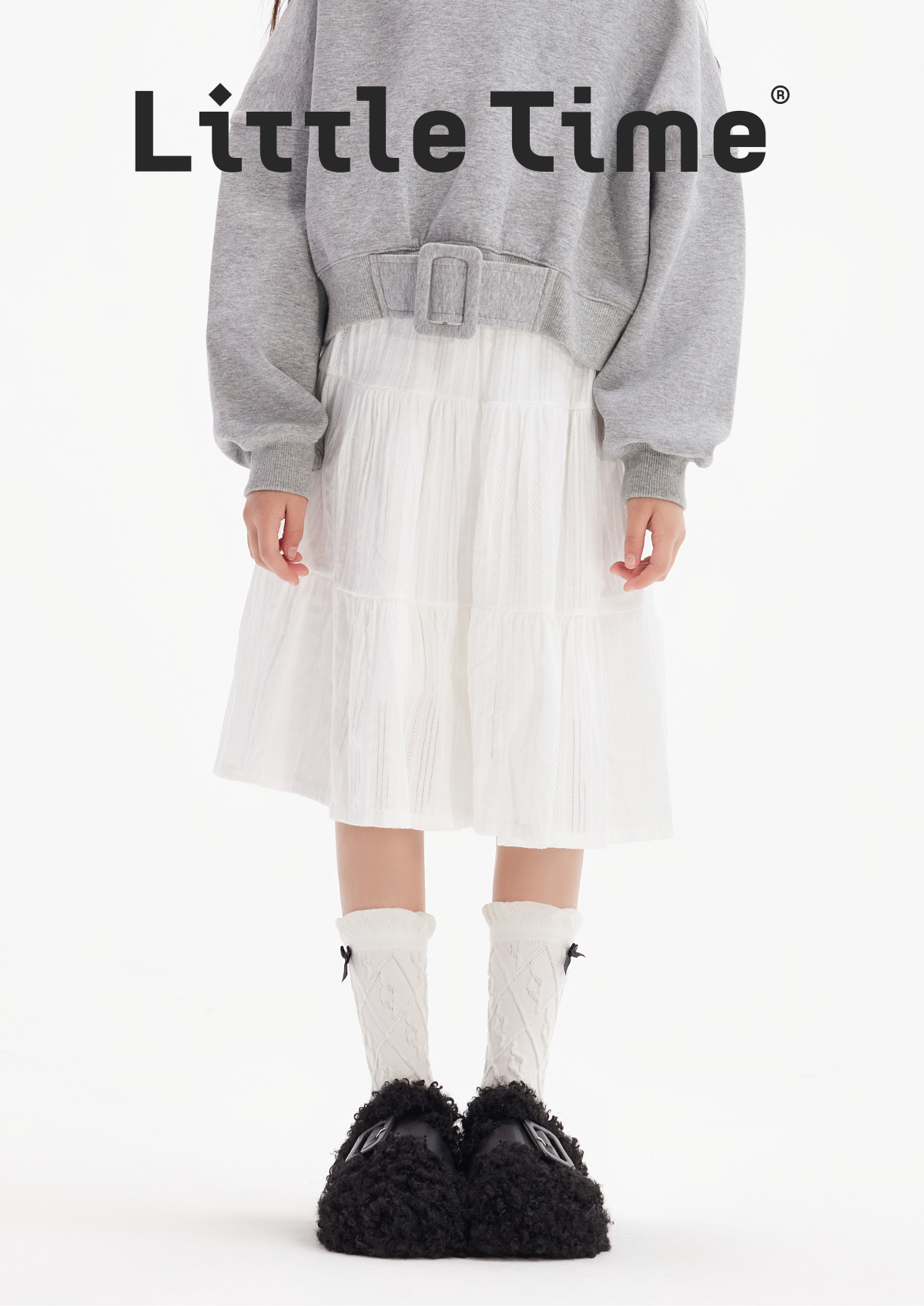 littletime女童纯棉半身裙2024春秋新款肌理感面料儿童中长款半裙
