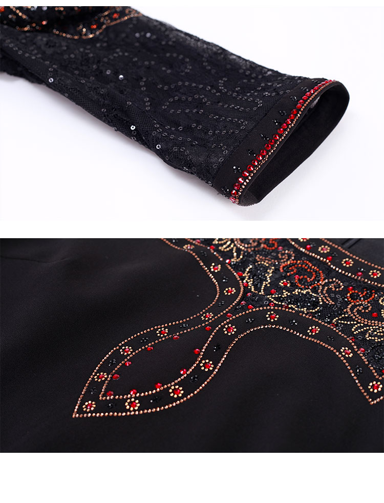 QG8A1夏季新品丝质数码印花钉珠中款宽松蕾丝长袖连衣裙