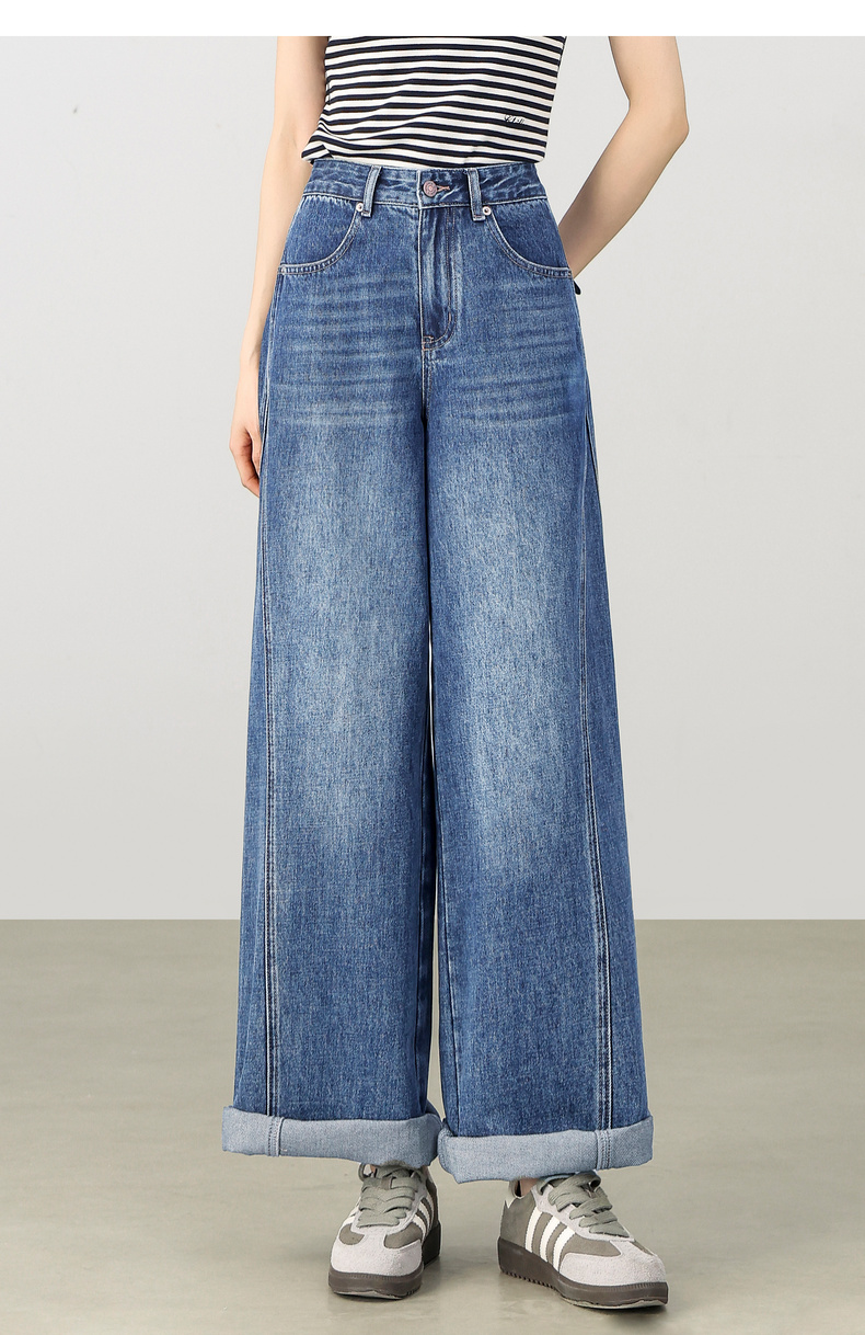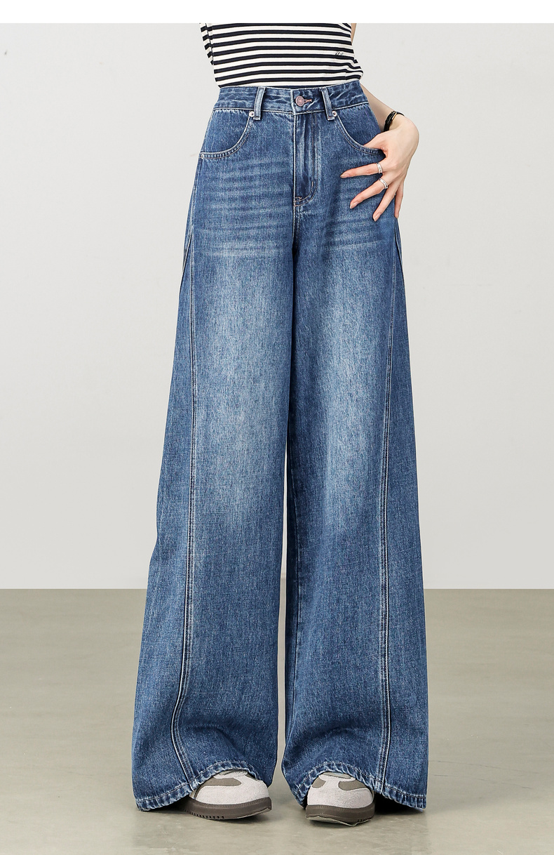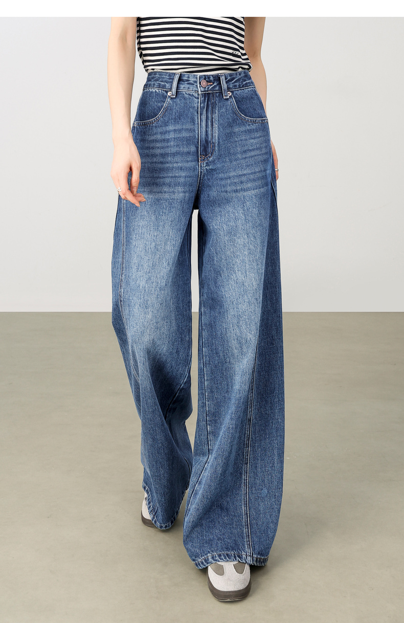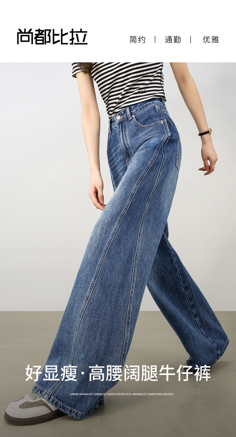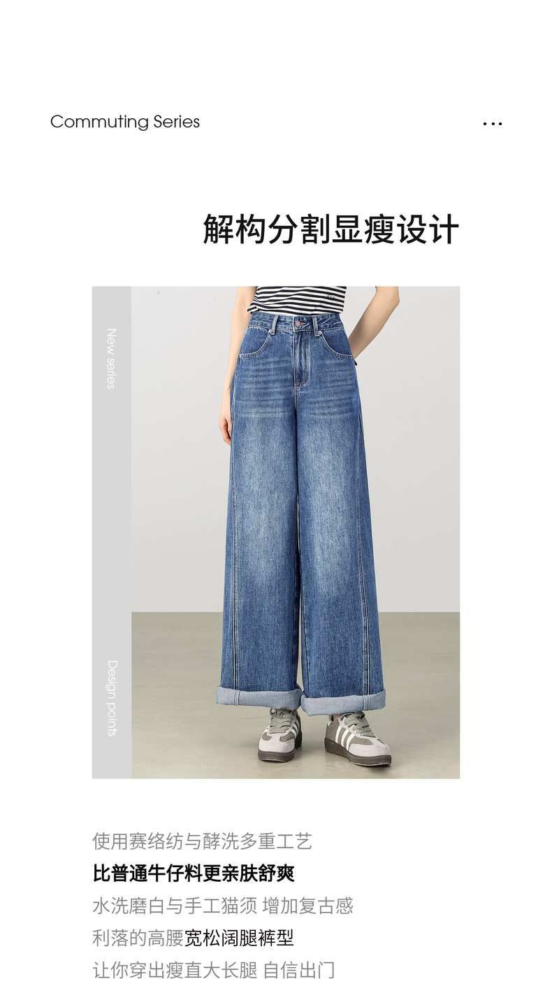 【内购】【显瘦易搭】丹宁通勤高腰解构分割宽松阔腿水洗牛仔长裤-W53ND2043