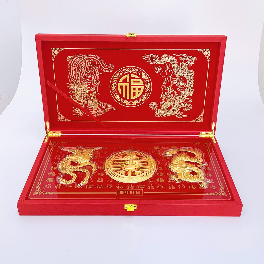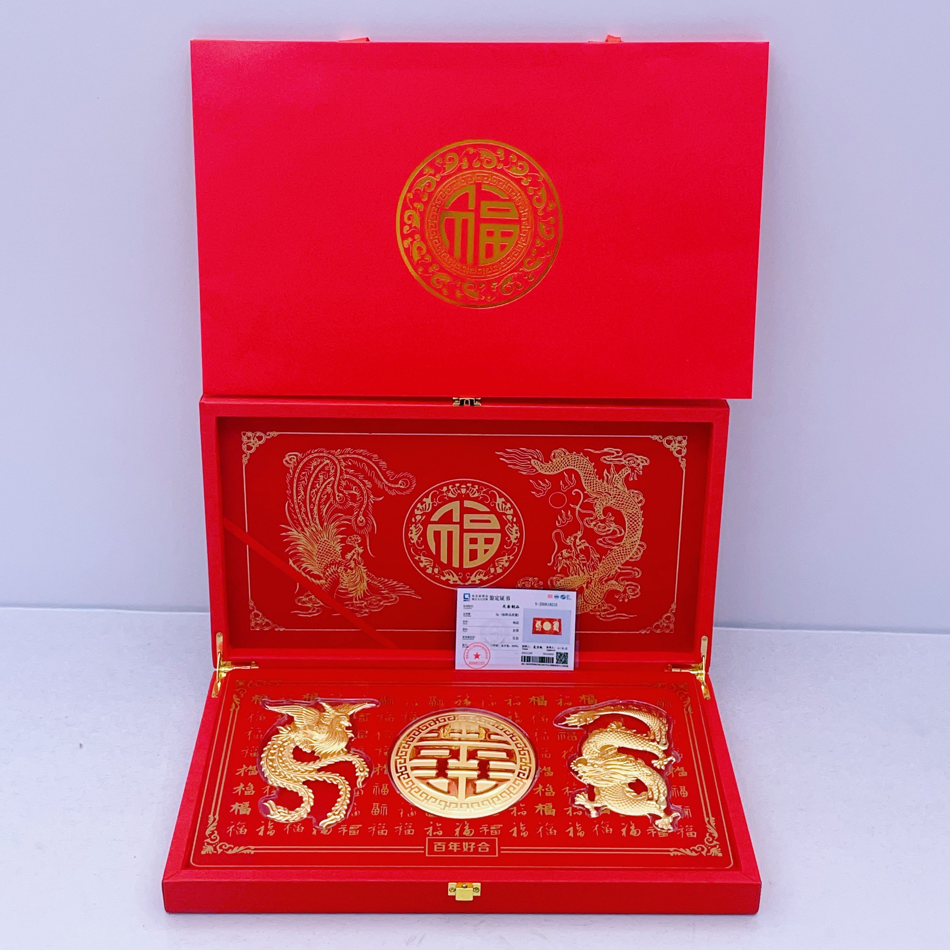 【限时克减150元】足金999#婚庆 龙凤双喜摆件礼盒婚庆礼盒陪嫁嫁妆订婚百年好合摆件礼盒(配精美包装/手提袋、NGTC国检证书)(ATBJ00012)(预售产品下单后不退款不退货不换货不补差价)