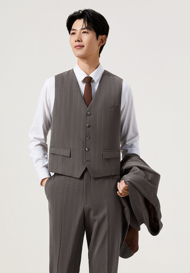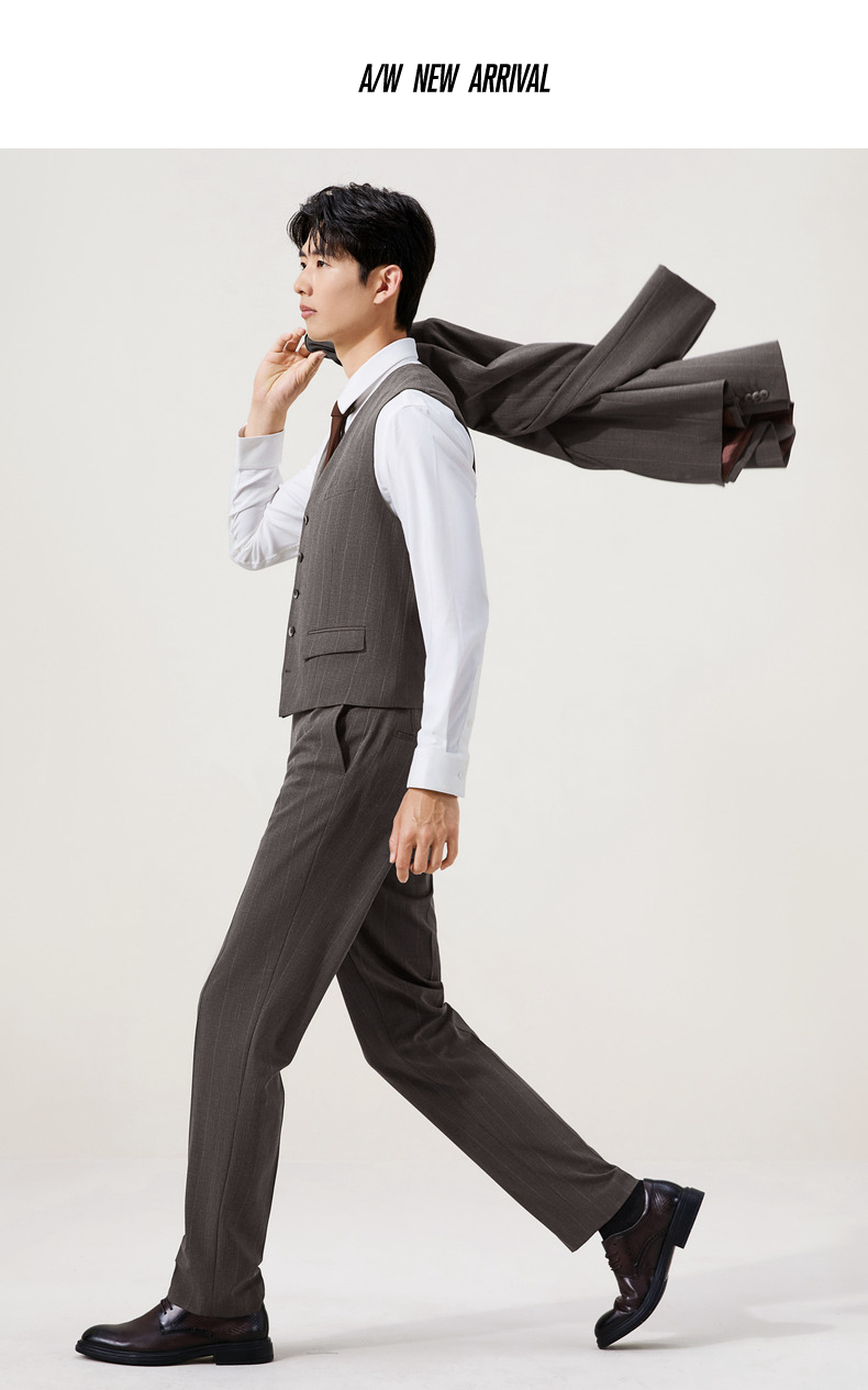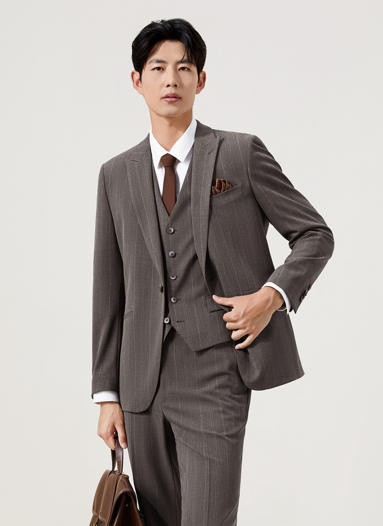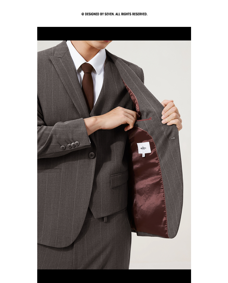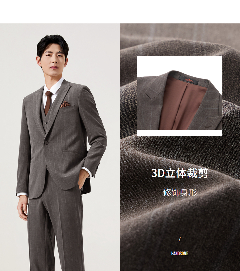 【婚礼季/复古条纹】柒牌西服套装三件套男士秋季商务结婚礼服正装西装129C70370