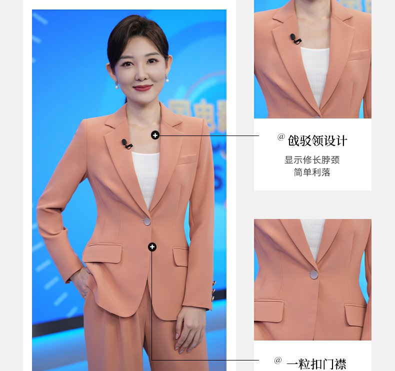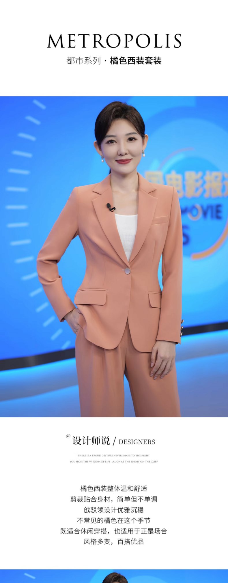 IWY/一粒扣橘色主持人西装外套女时尚气质西服套装阔腿裤两件套213118C1+p6