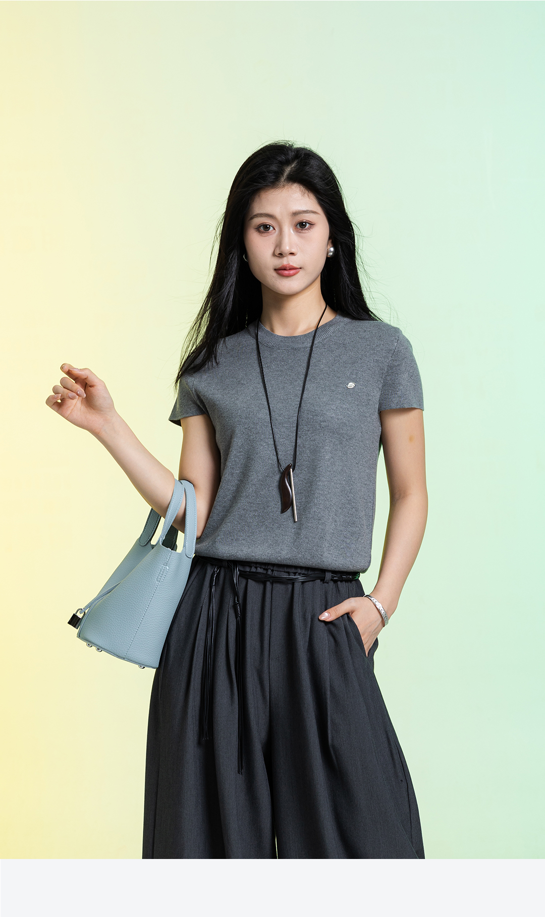 夏上新松弛高级氛围感短袖阔腿裤遮肉显瘦休闲通勤气质两件套套装4262037