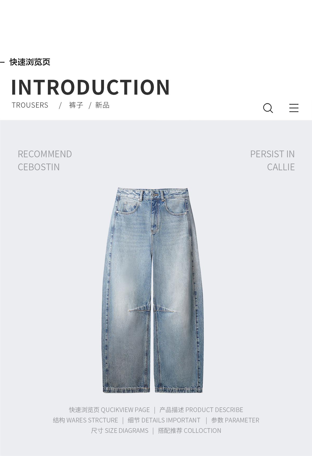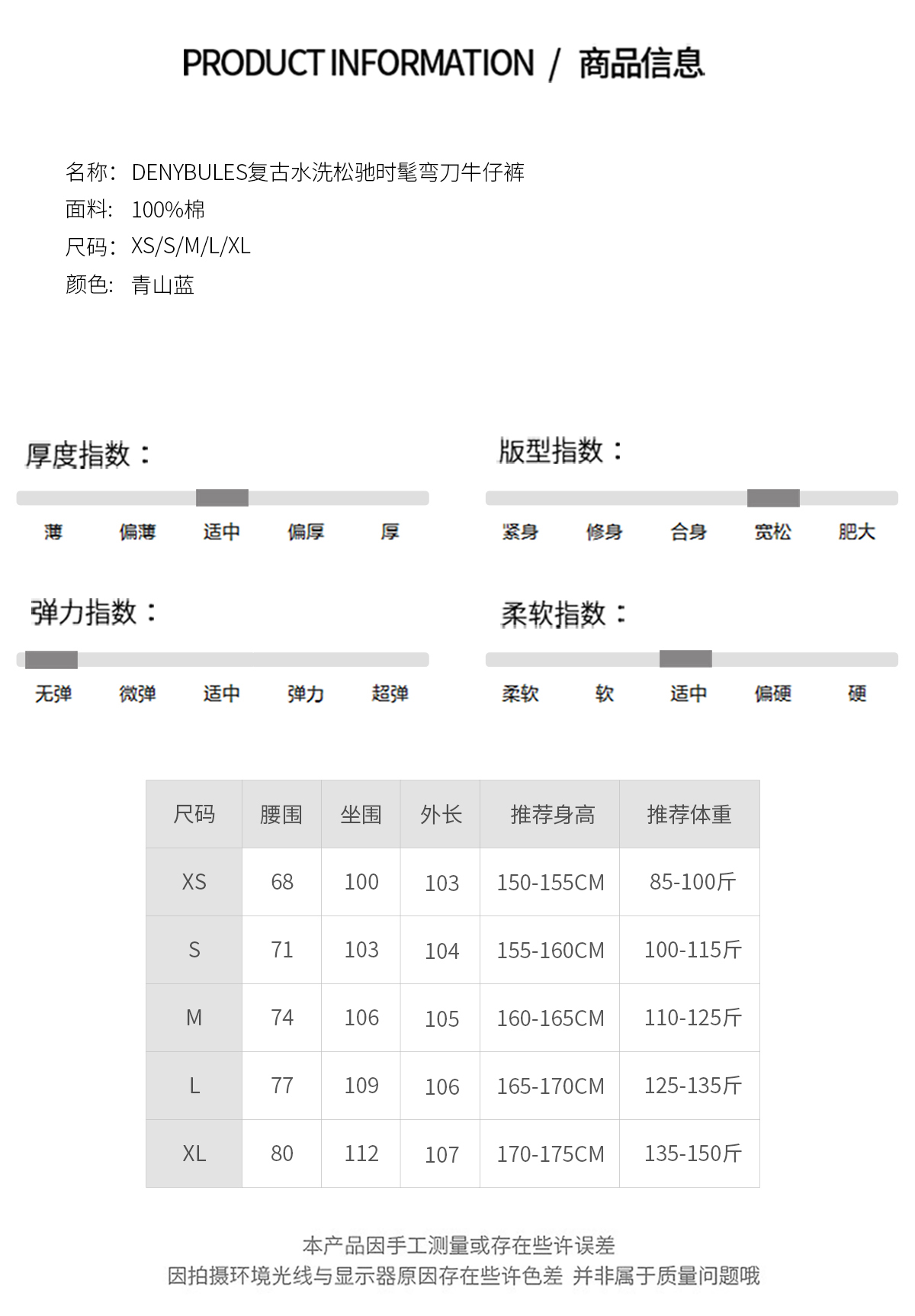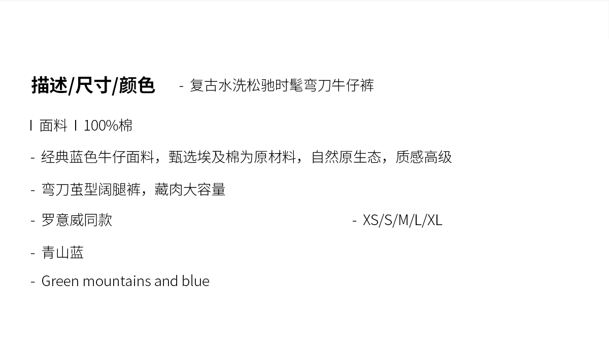 DENYBULES复古水洗松驰时髦弯刀牛仔裤