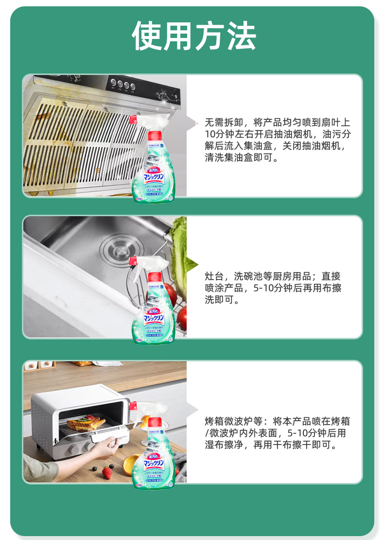 日本花王强力泡沫型厨房油污清洁剂/117612 轻松去油污清香不刺鼻不伤手