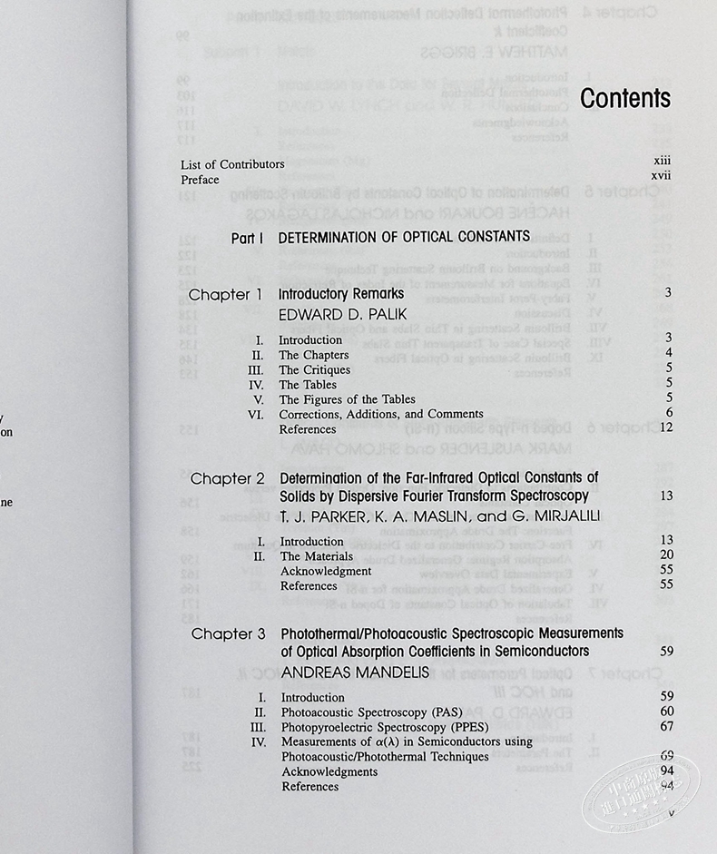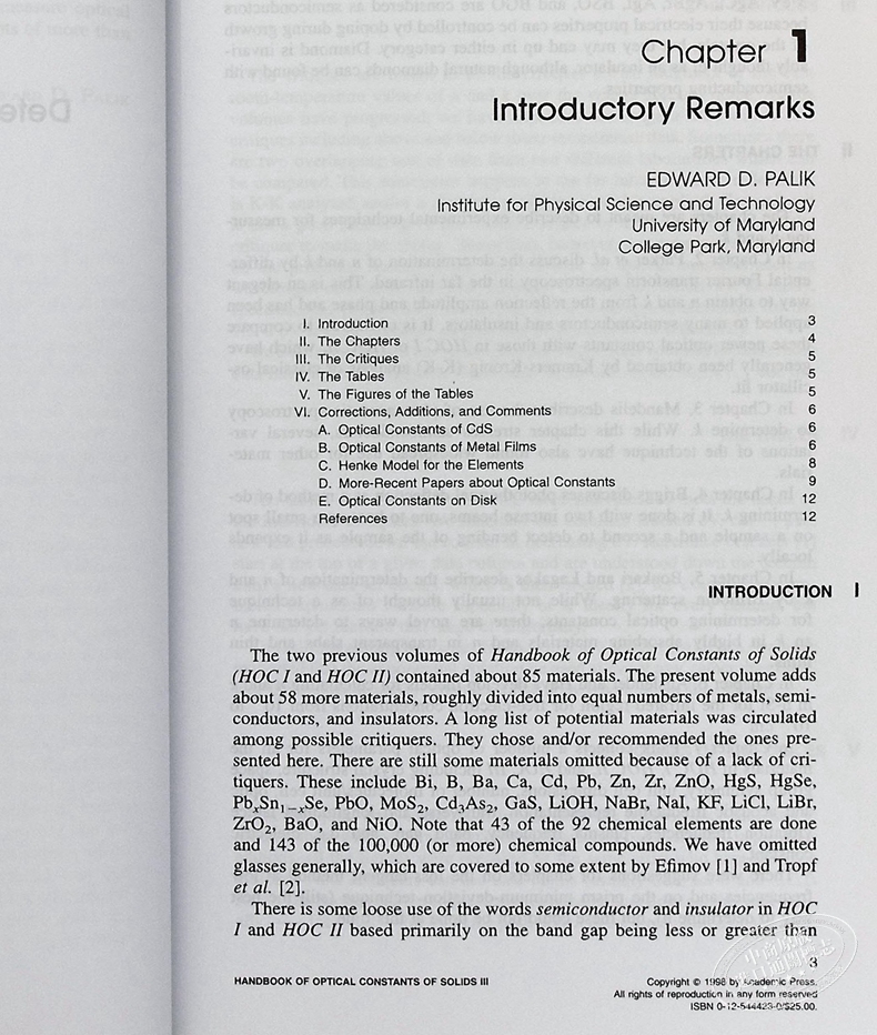 Handbook of Optical Constants of Solids 英文原版 固体的光学常数手册 第1版 Edward Palik