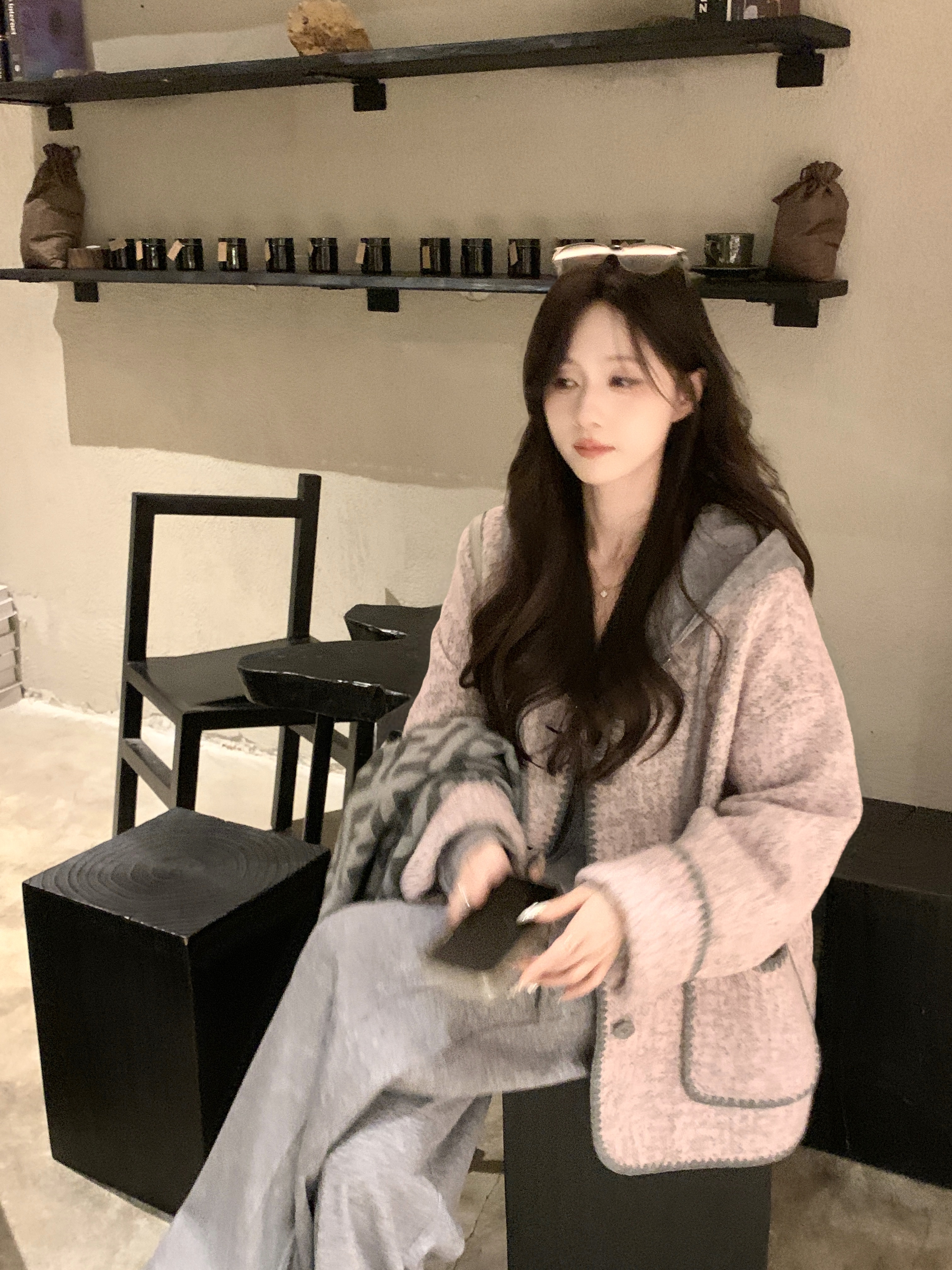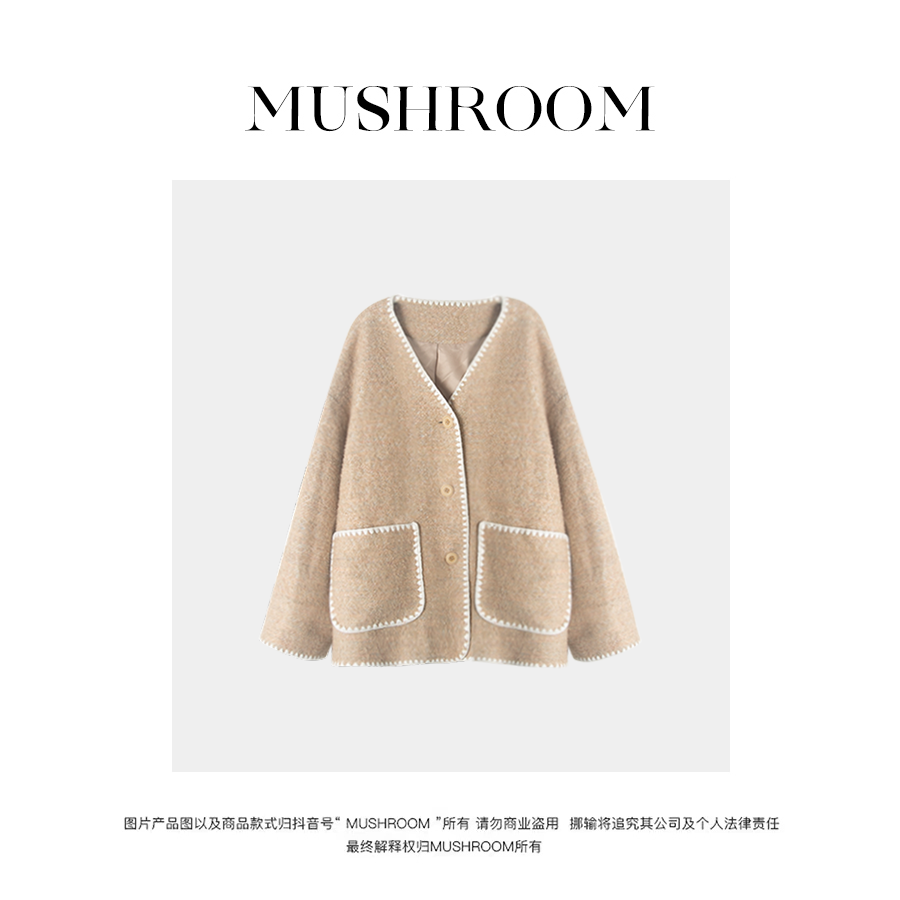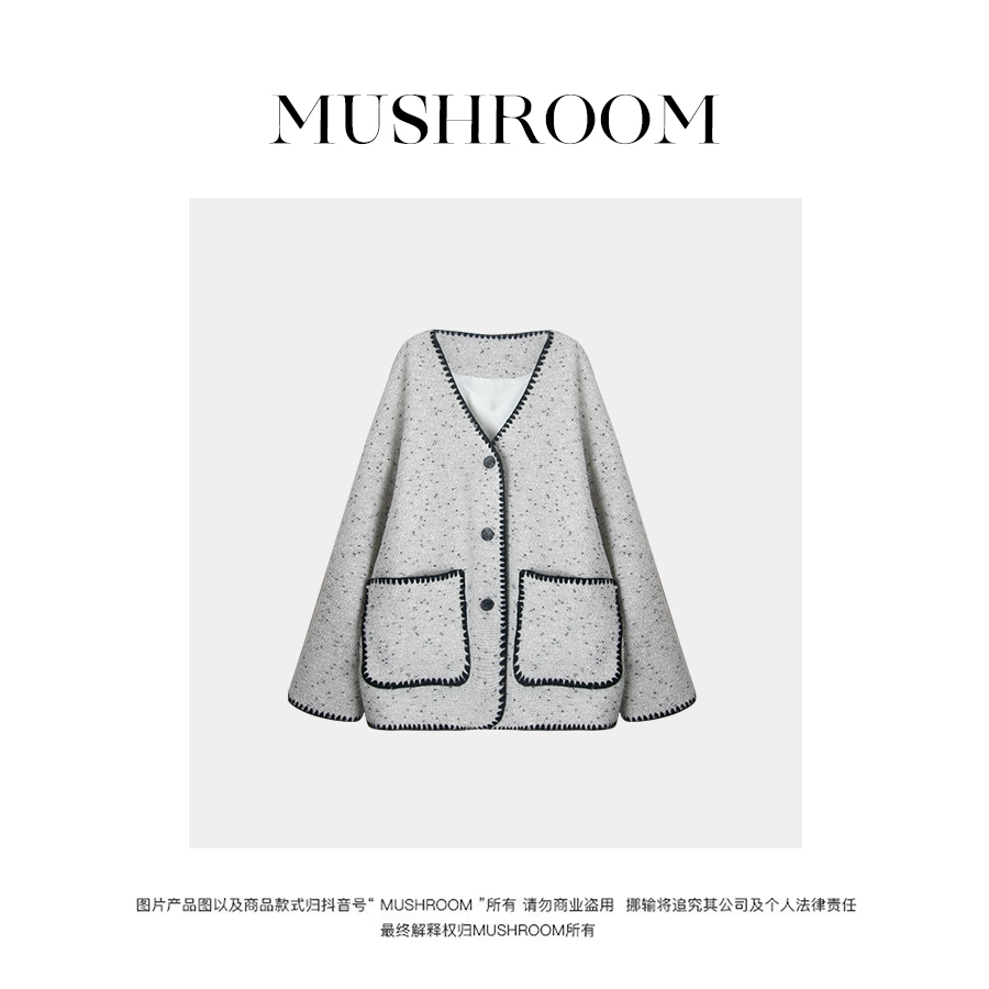 金蘑菇菇【冬日恋岛】设计师高定Yang毛香香风贝壳绣秋冬保暖时髦外套女