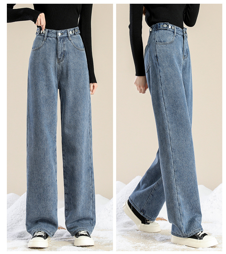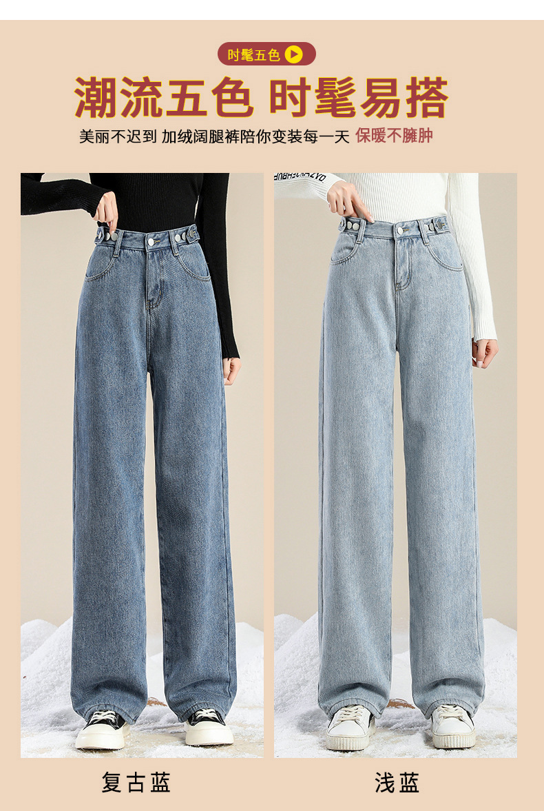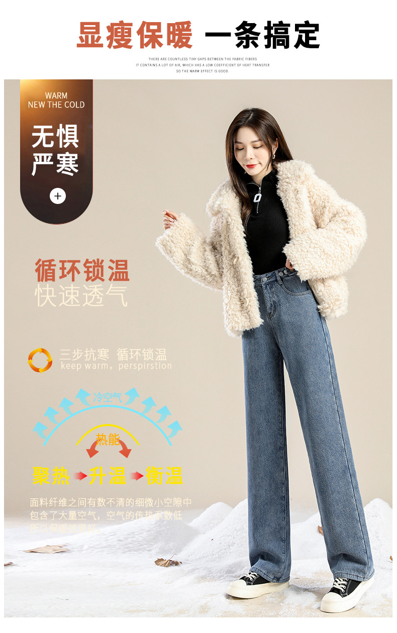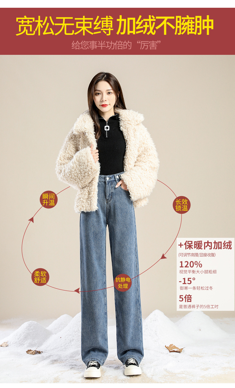 【秋冬新款加绒牛仔裤】加绒牛仔裤女秋冬新款小个子直筒长裤女款韩版大码加厚宽松阔腿裤