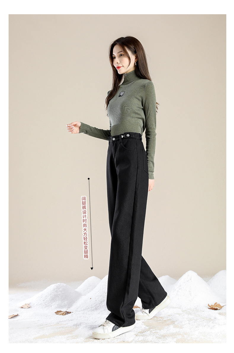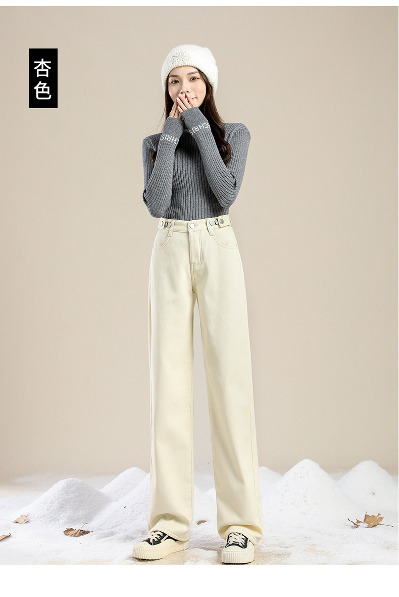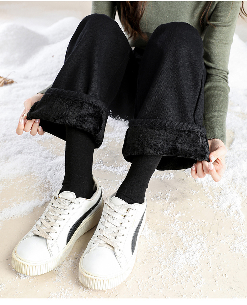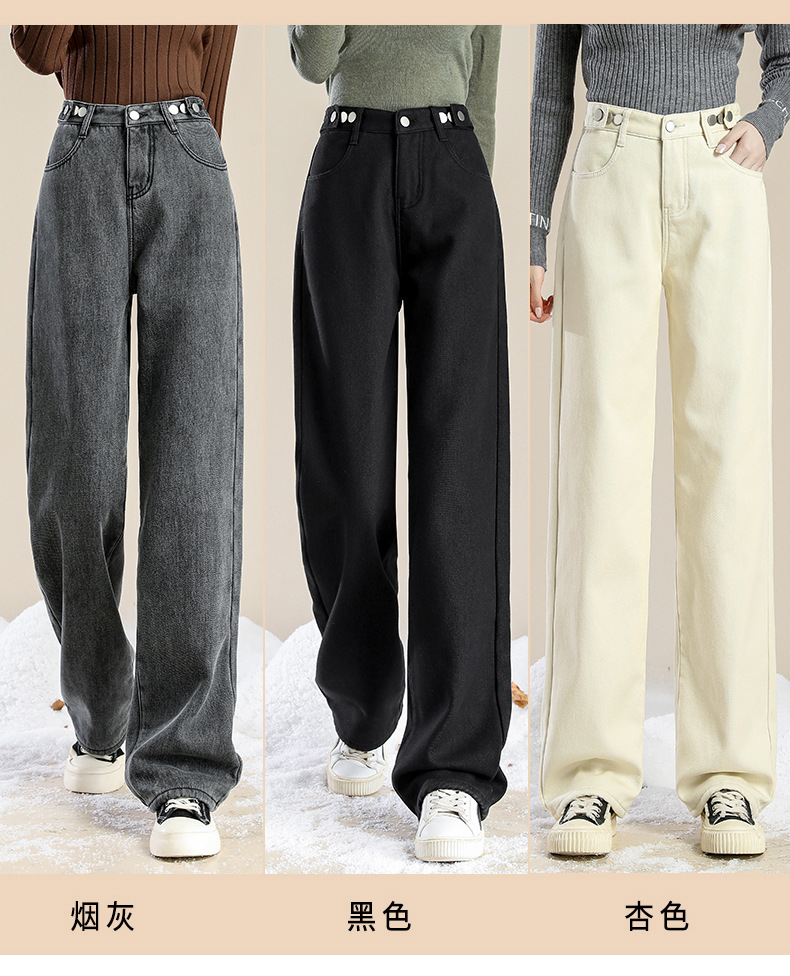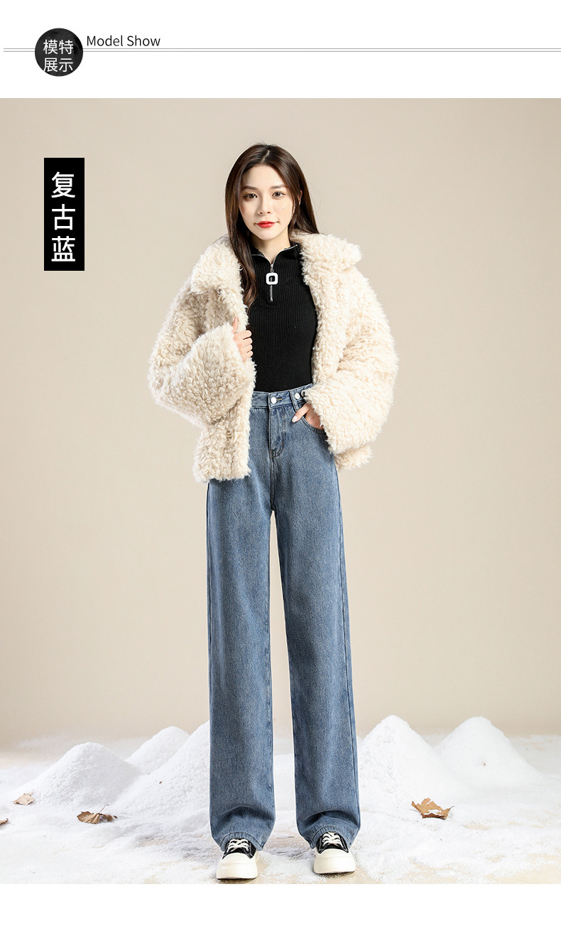 【秋冬新款加绒牛仔裤】加绒牛仔裤女秋冬新款小个子直筒长裤女款韩版大码加厚宽松阔腿裤