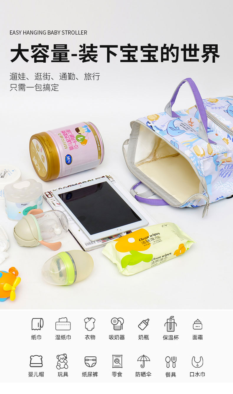 心选丨时尚宝妈【多功能大容量妈咪包】保温铝箔独立奶仓 便携母婴包 多功能收纳包