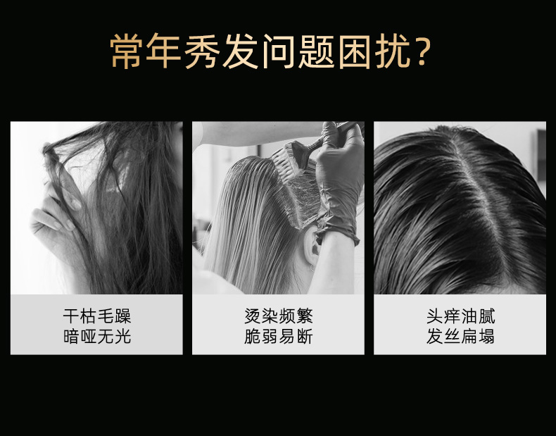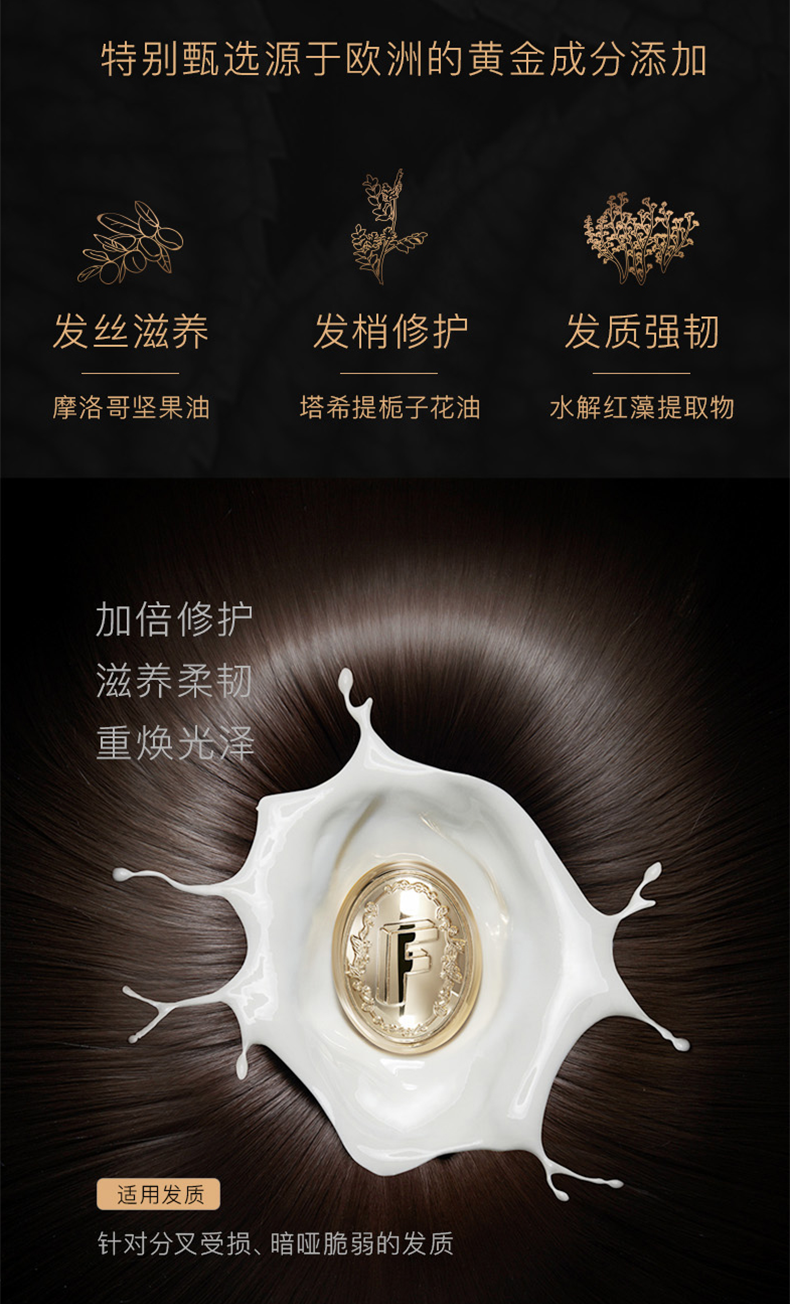 温馨提示:鱼子酱发膜、护发精油、护发素均用在头发中后段~