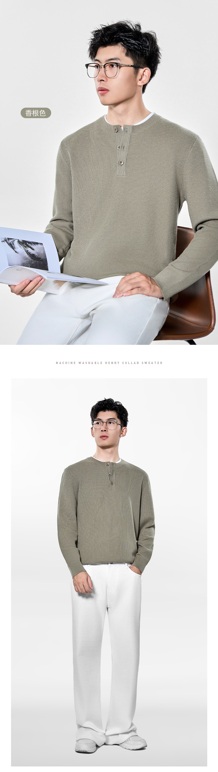 【实付满399送保温杯】【可机洗双股保暖亨利领毛衣】休闲保暖毛衣毛衫通勤打底长袖上衣MT501