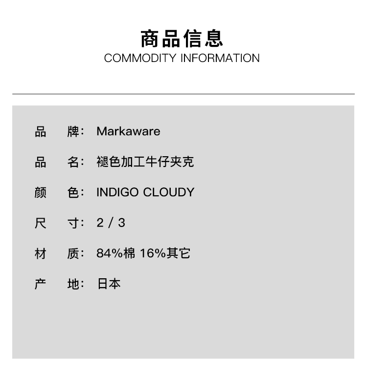 Markaware SHORT DENIM JACKET 有机棉丝绸混纺褪色加工牛仔夹克