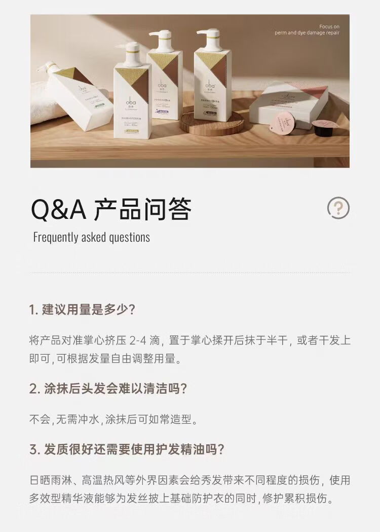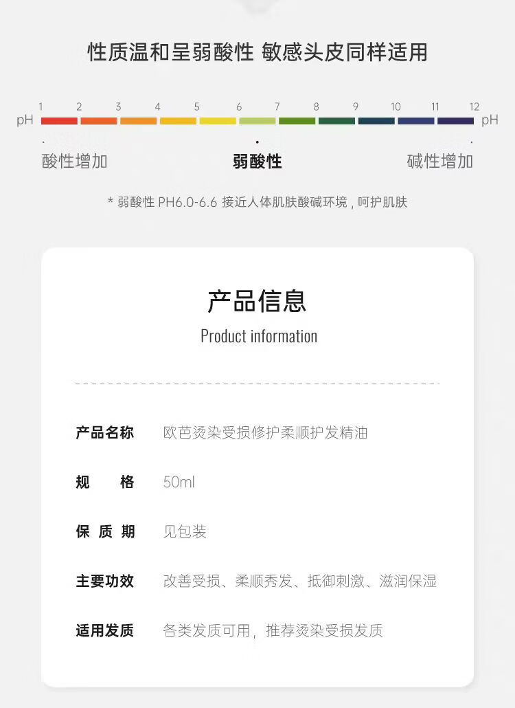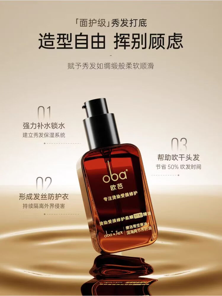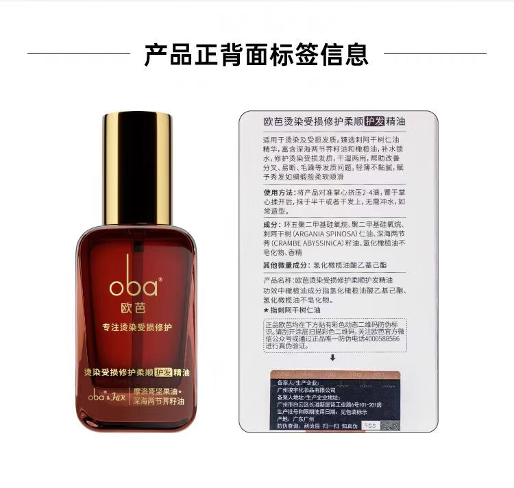 oba欧芭修护发精油防毛躁改善干枯柔顺滑润发烫染受损护理发油50ml