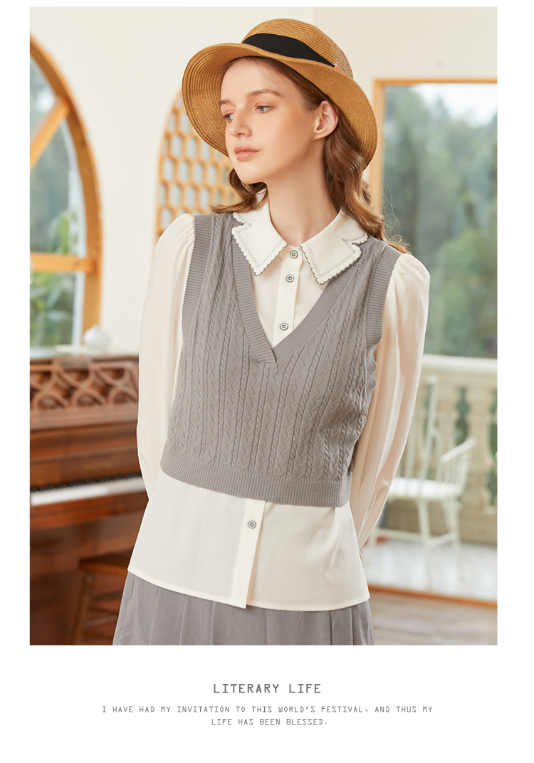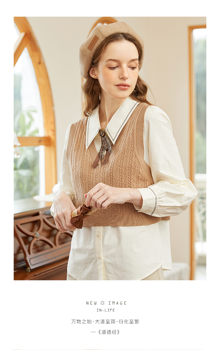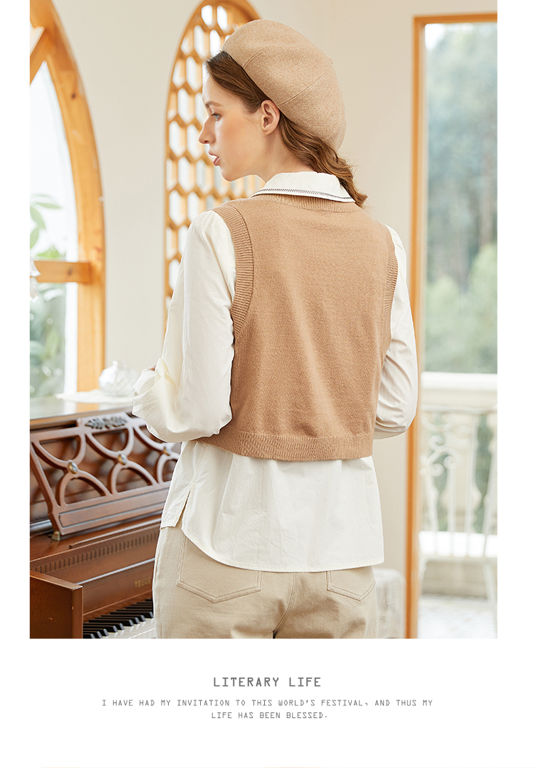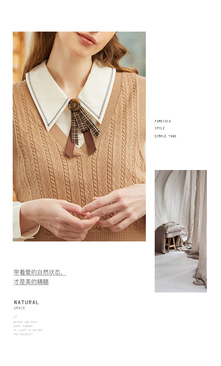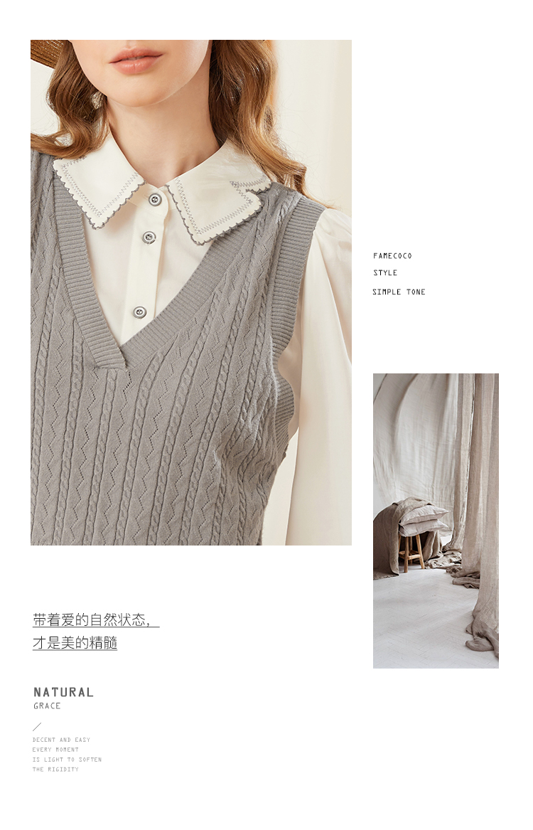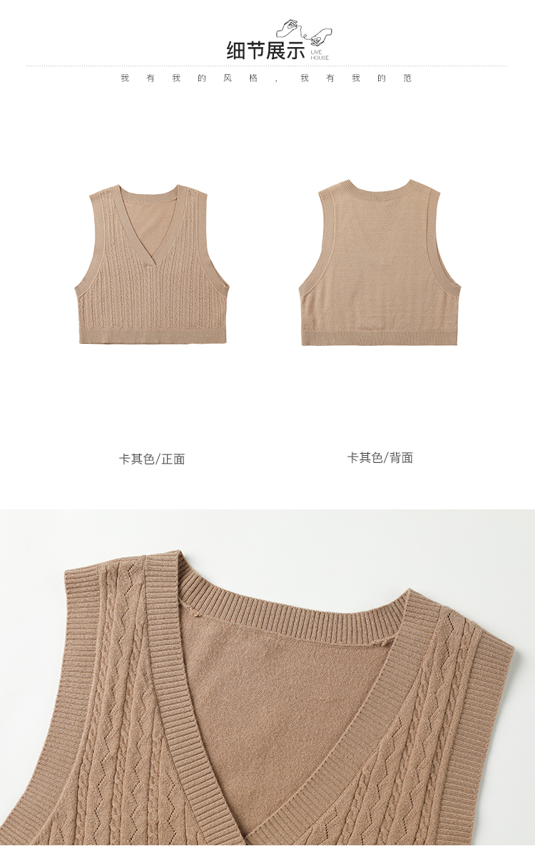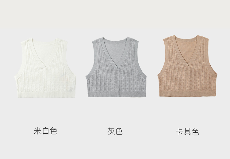 Famecoco范可儿短款针织马甲女春季V领高腰背心叠穿神器FAB1CA012