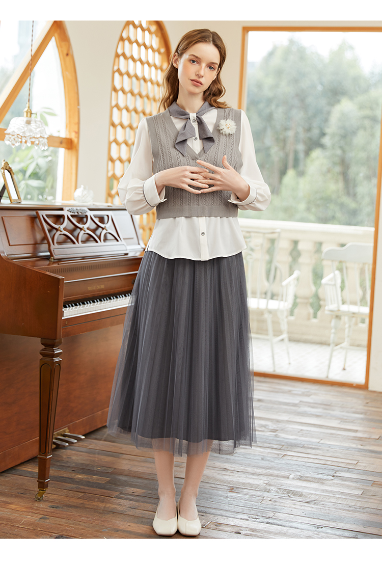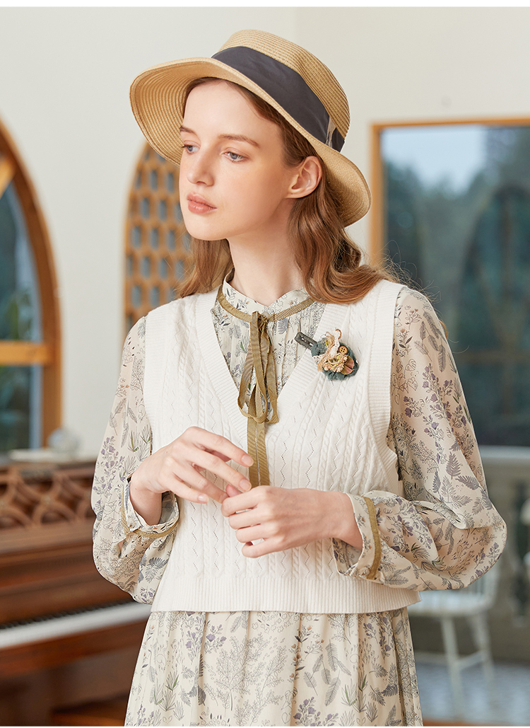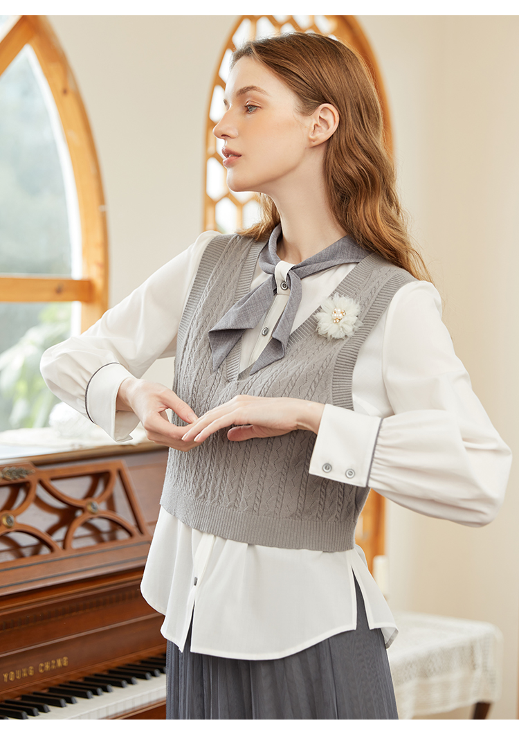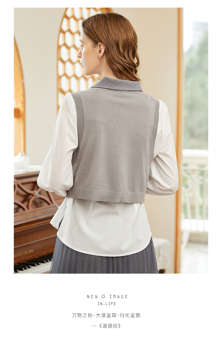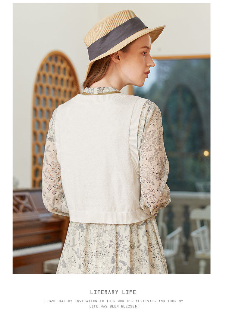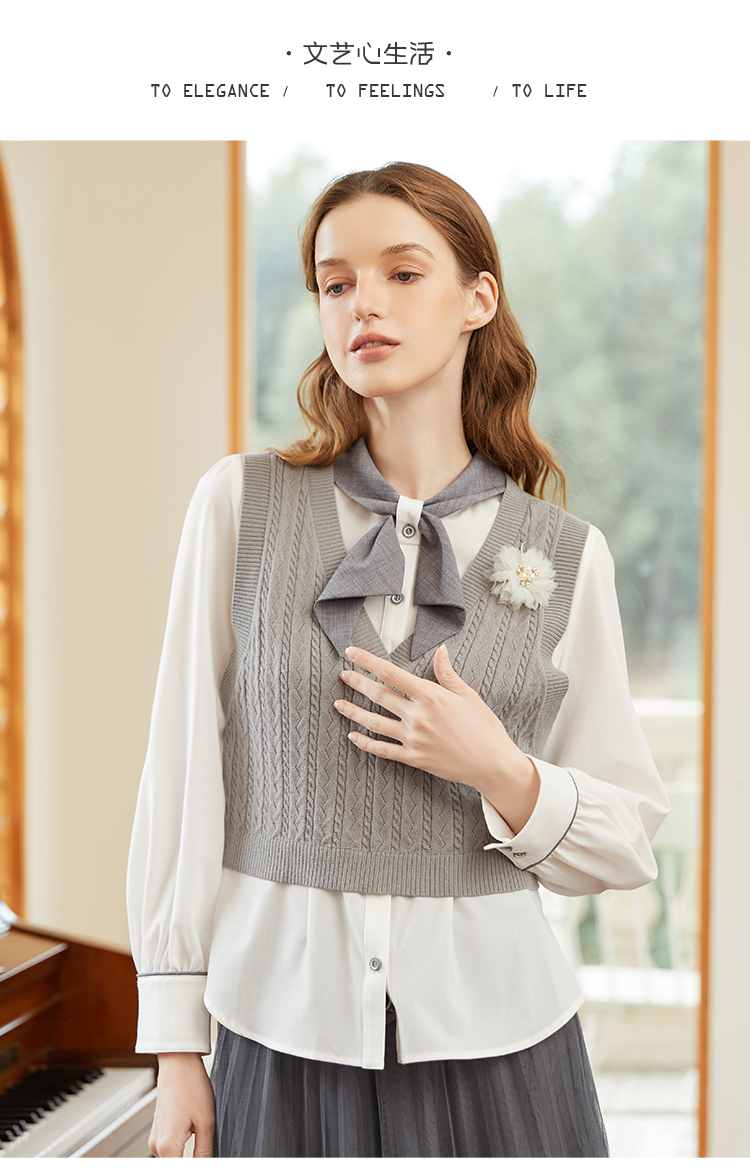 Famecoco范可儿短款针织马甲女春季V领高腰背心叠穿神器FAB1CA012