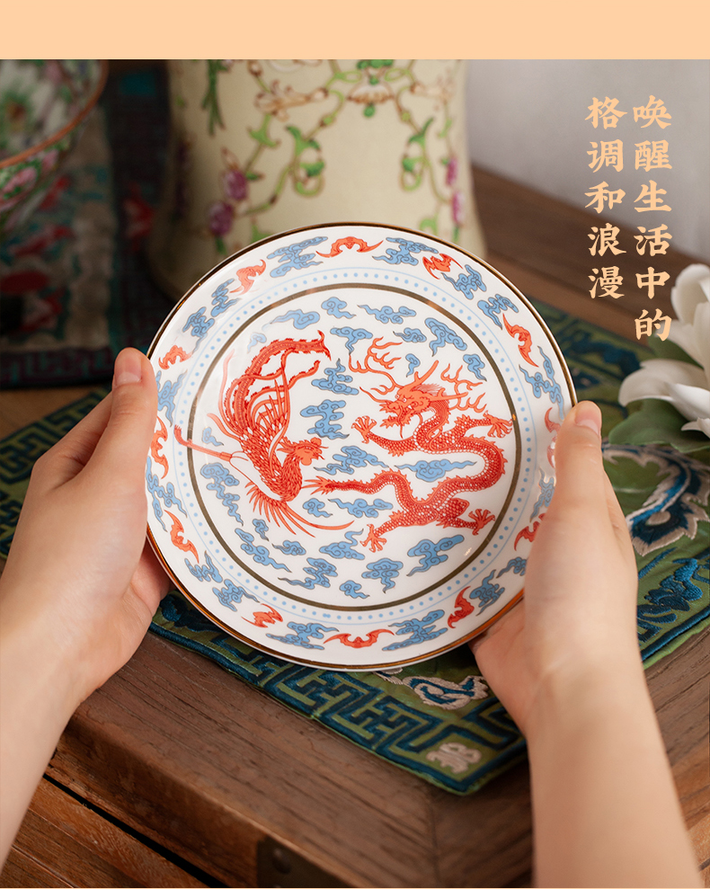 广东省博物馆万事兴龙系列珐琅彩龙凤小瓷盘
