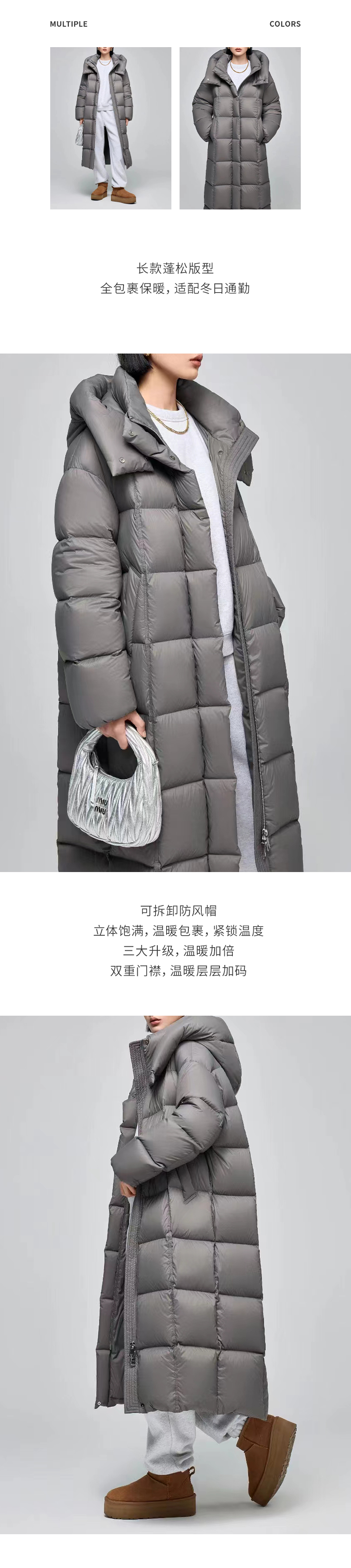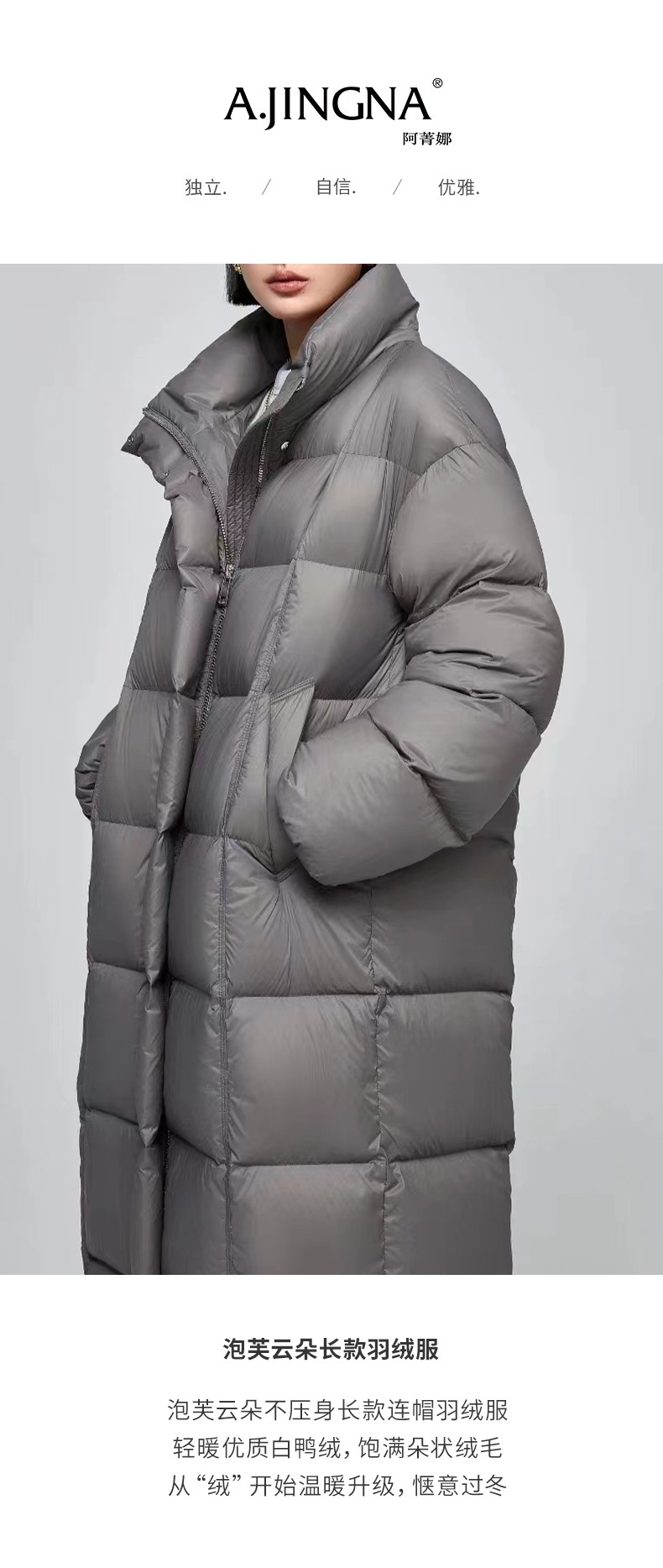 【泡芙云朵】阿菁娜冬季新款泡芙云朵长款羽绒服可拆卸帽蓬松保暖 双重门襟防风F30D216028