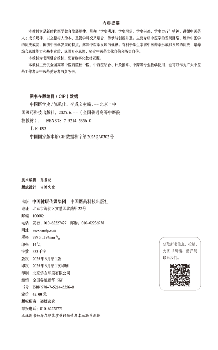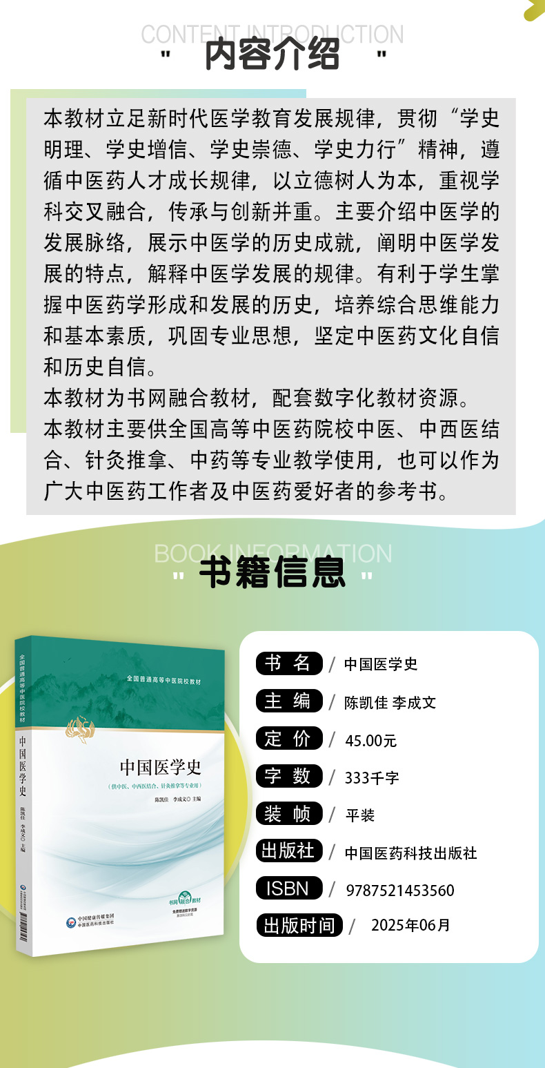 中国医学史 全国普通高等中医院校教材 陈凯佳 李成文 供全国高等中医药院校中医中西医结合针灸推拿中药学等 中国医药科技出版社