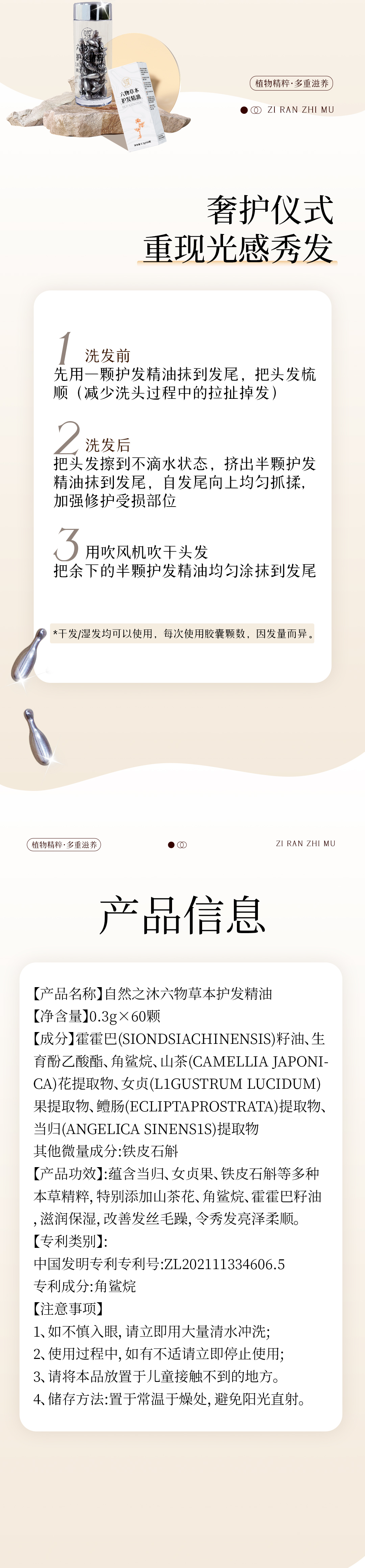 【节后发货】六物草本护发精油 60粒/瓶 (自营品)(自营品)