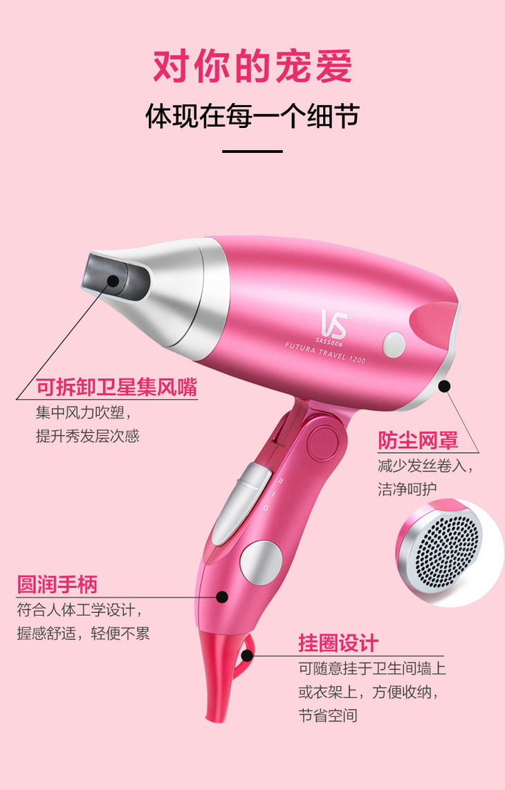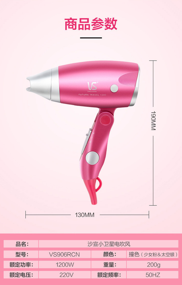沙宣(VS)电吹风机家用 折叠时尚便捷吹风筒VS906RCN