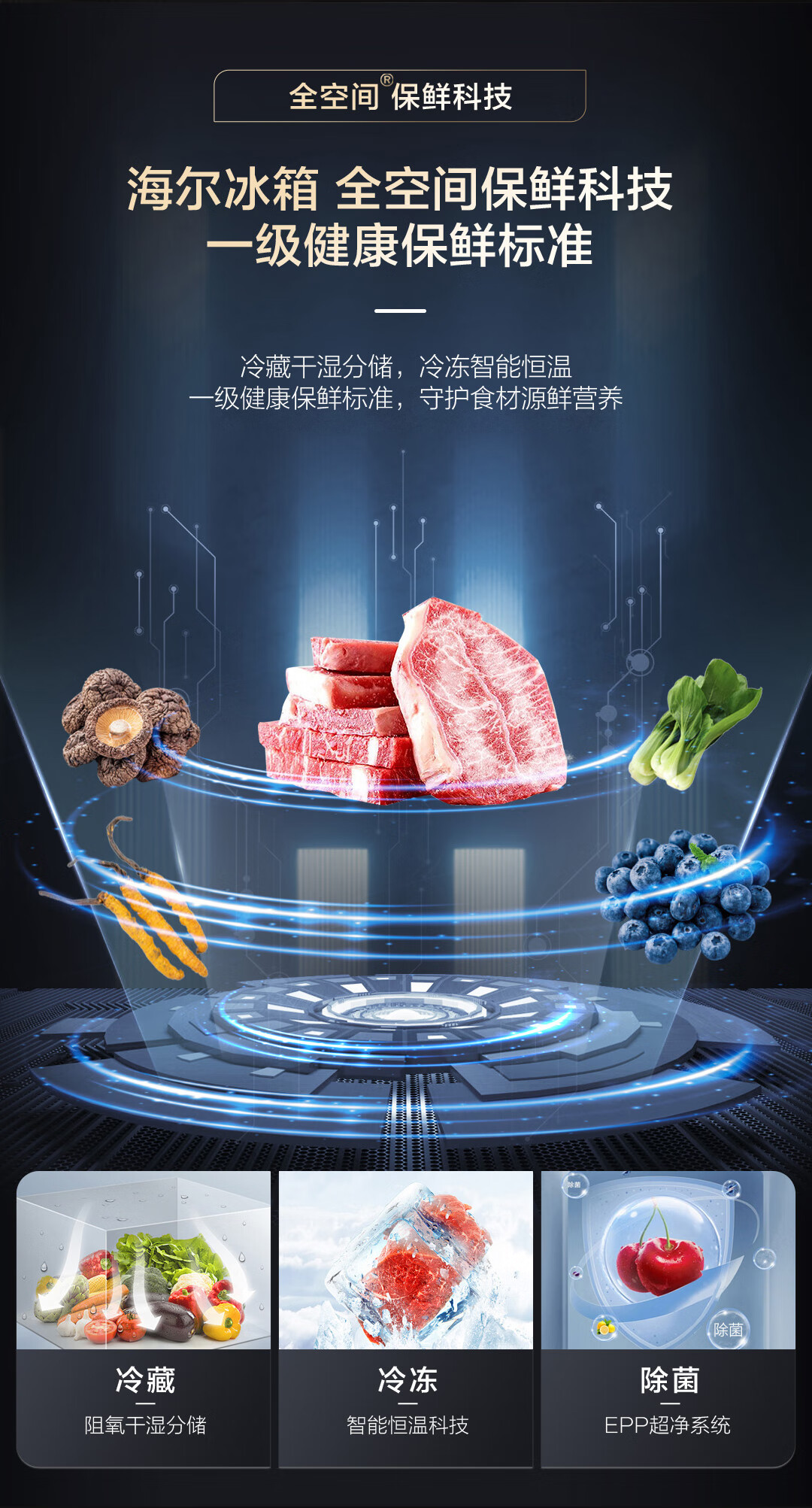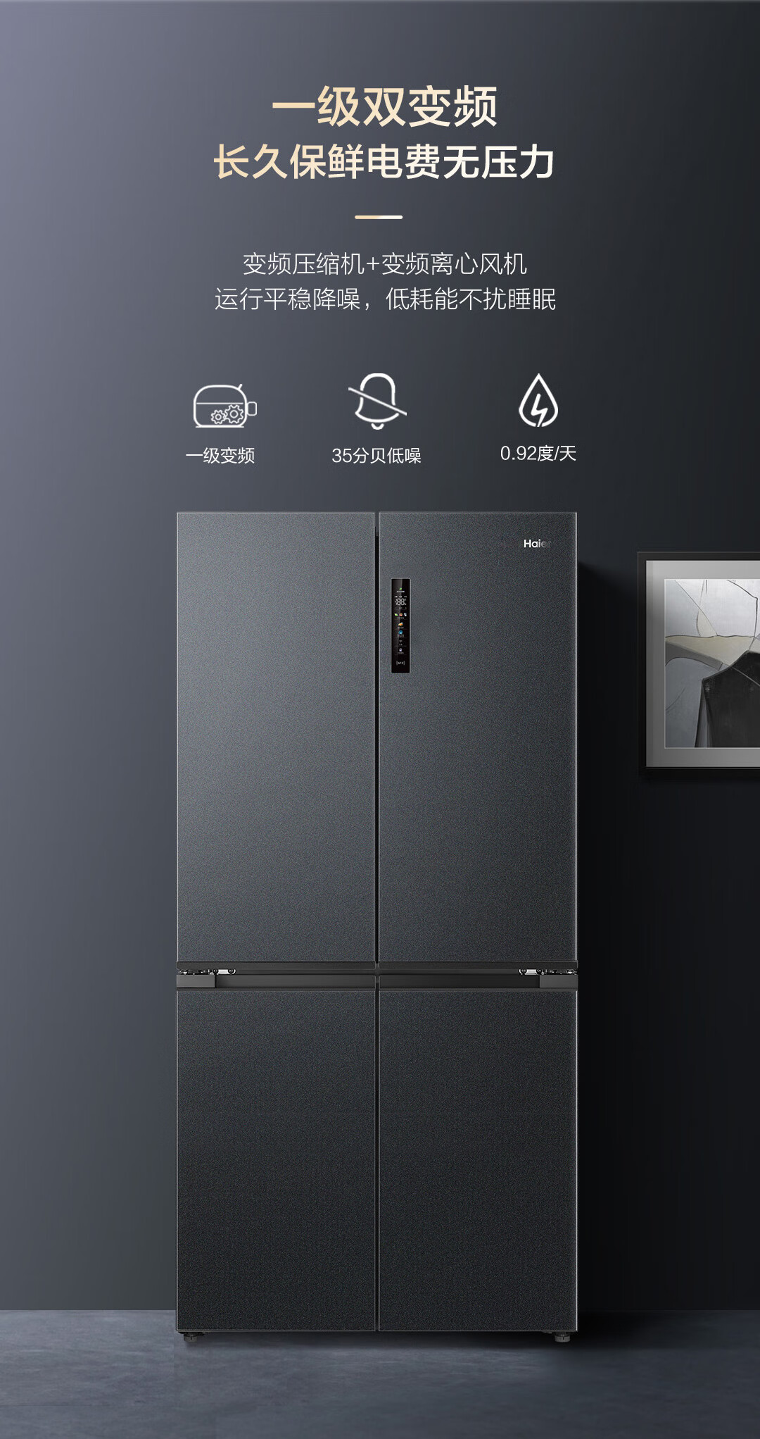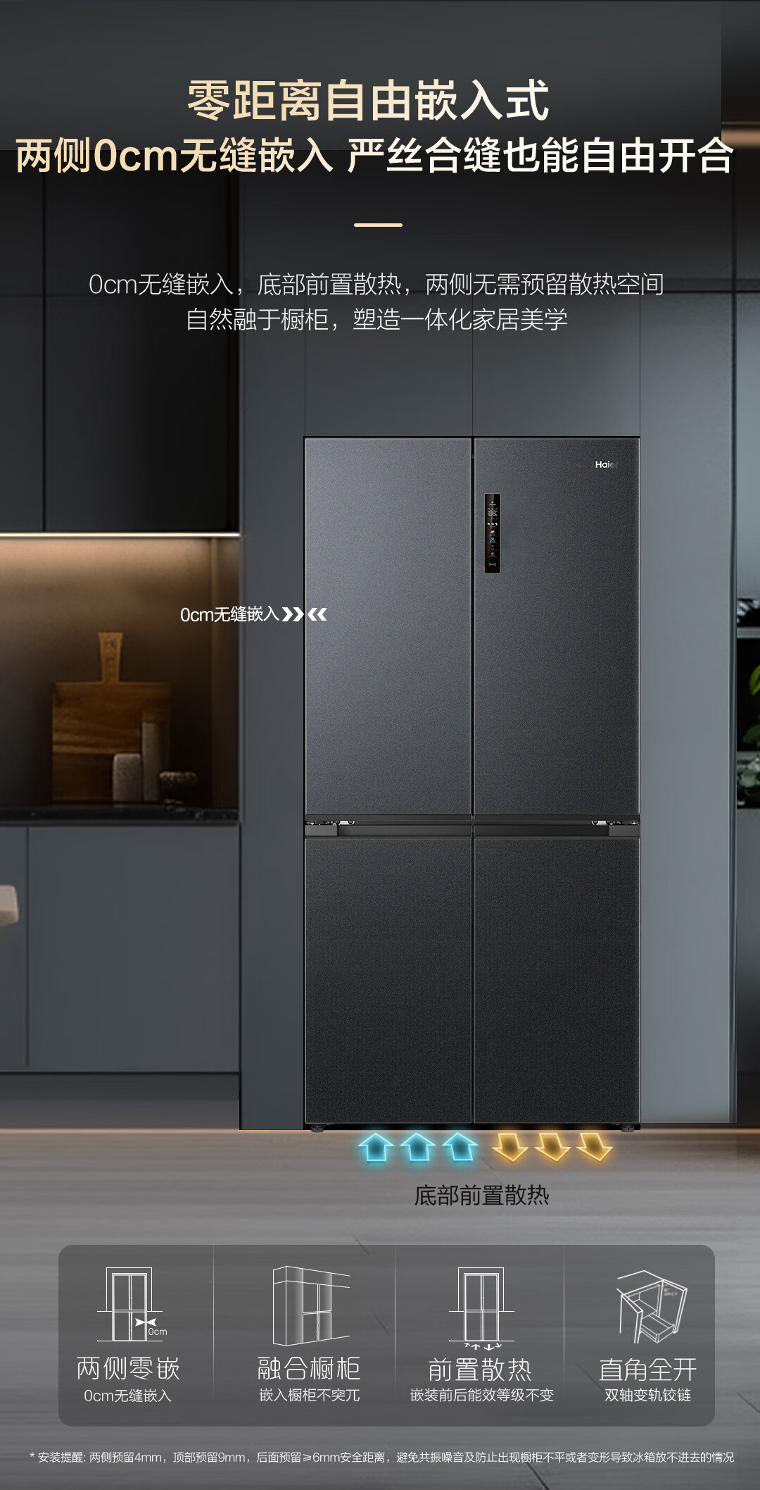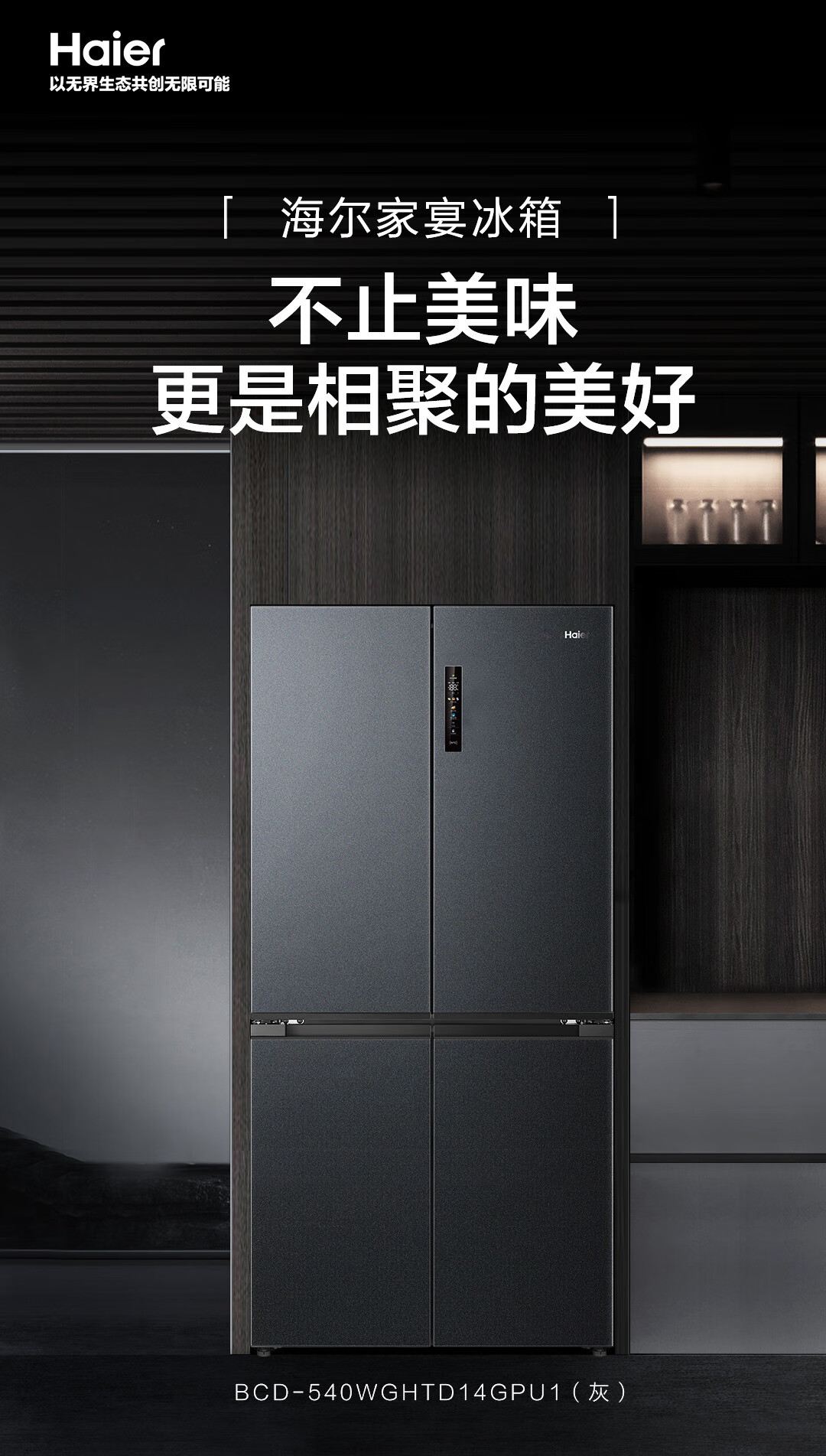 海尔(Haier)540L四开门十字对开门冰箱超薄零嵌EPP超净全空间保险科技阻氧干湿分储宽幅变温大容量智能电冰箱 BCD-540WGHTD14GPU1(灰)