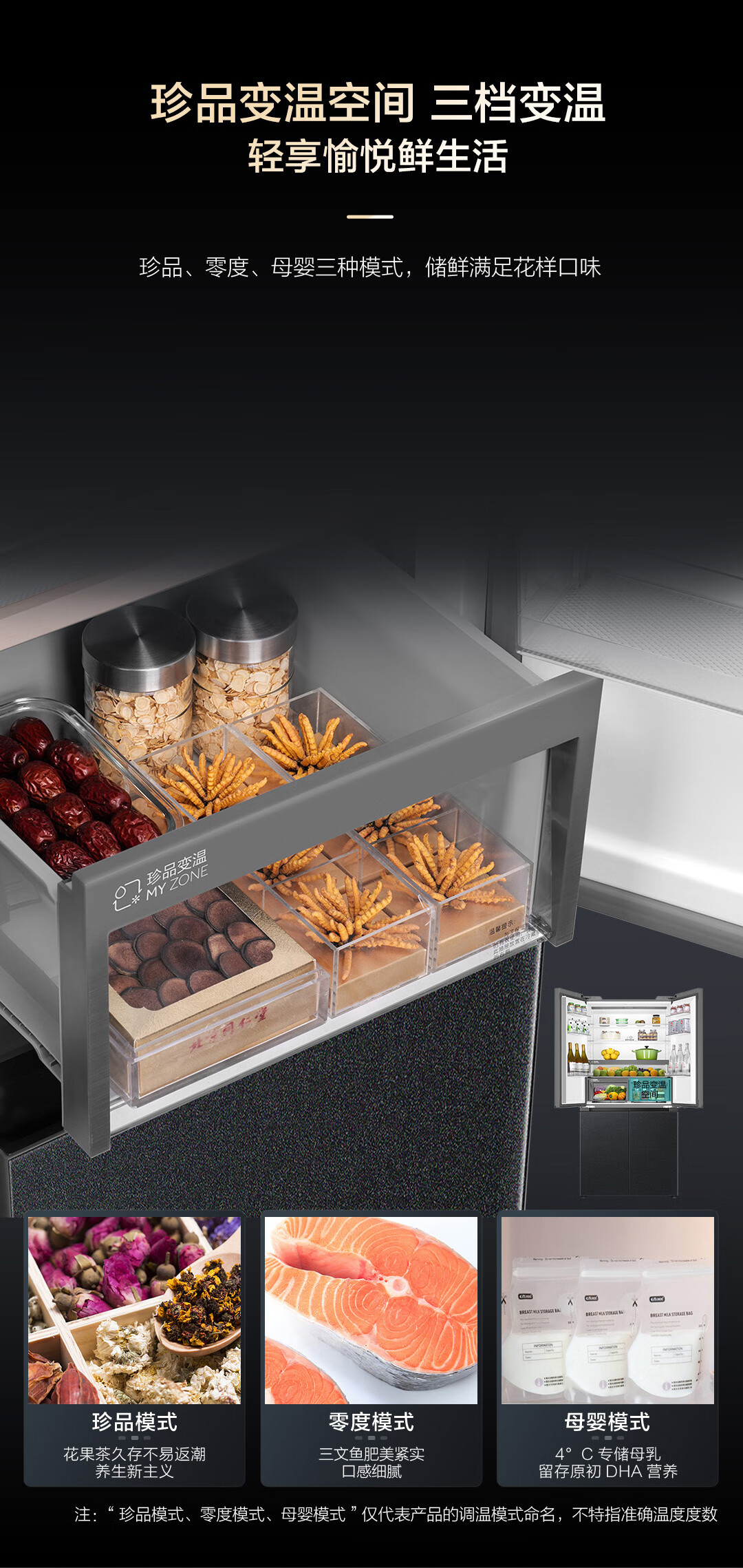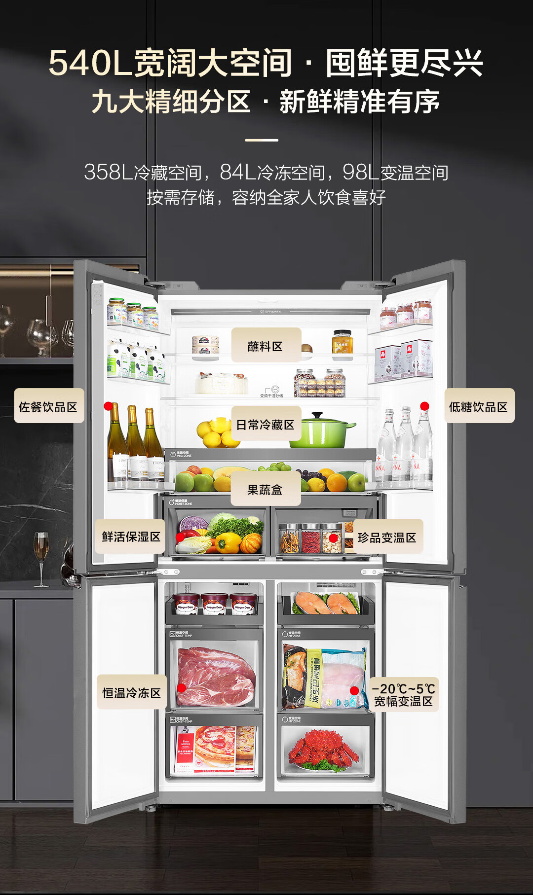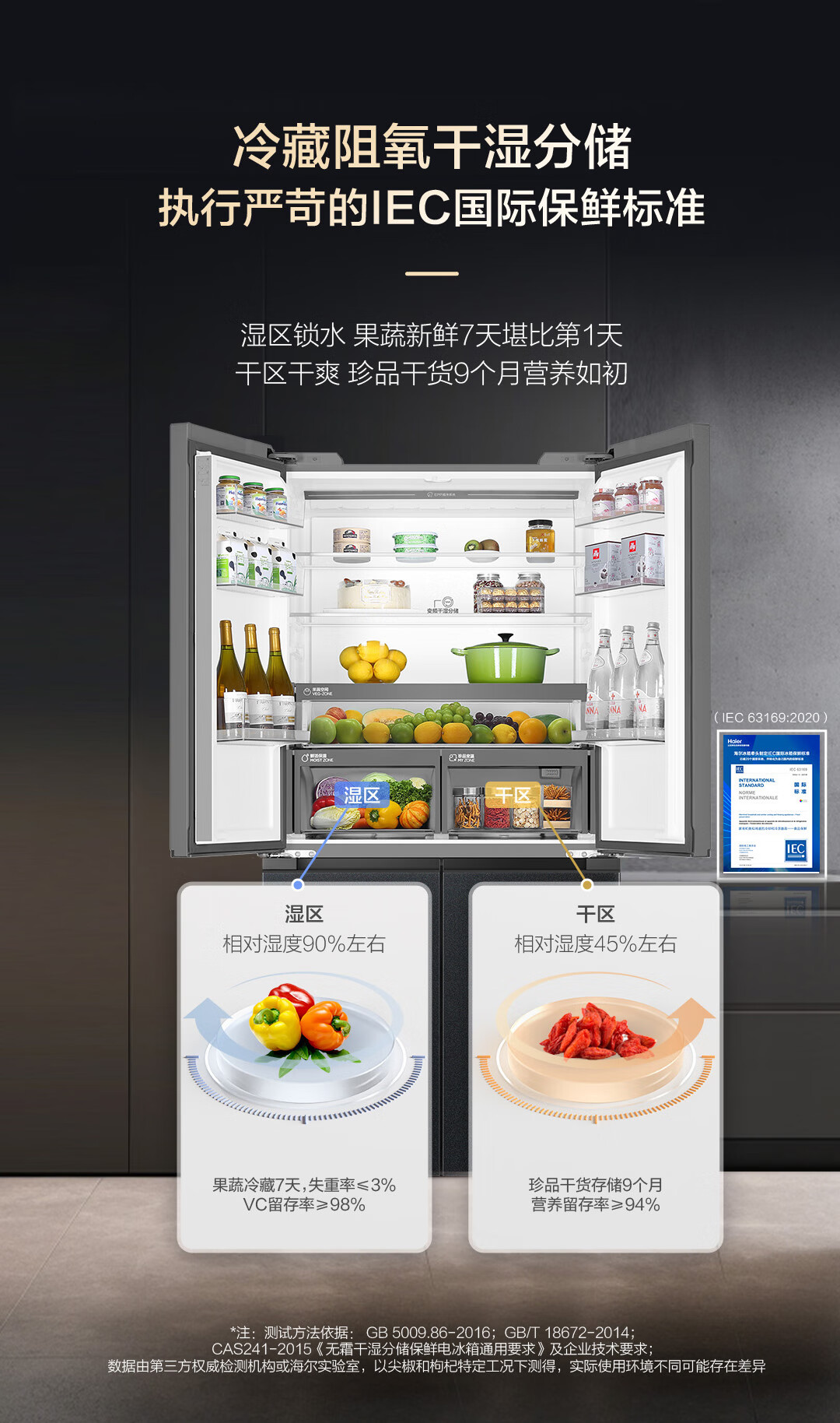 海尔(Haier)540L四开门十字对开门冰箱超薄零嵌EPP超净全空间保险科技阻氧干湿分储宽幅变温大容量智能电冰箱 BCD-540WGHTD14GPU1(灰)