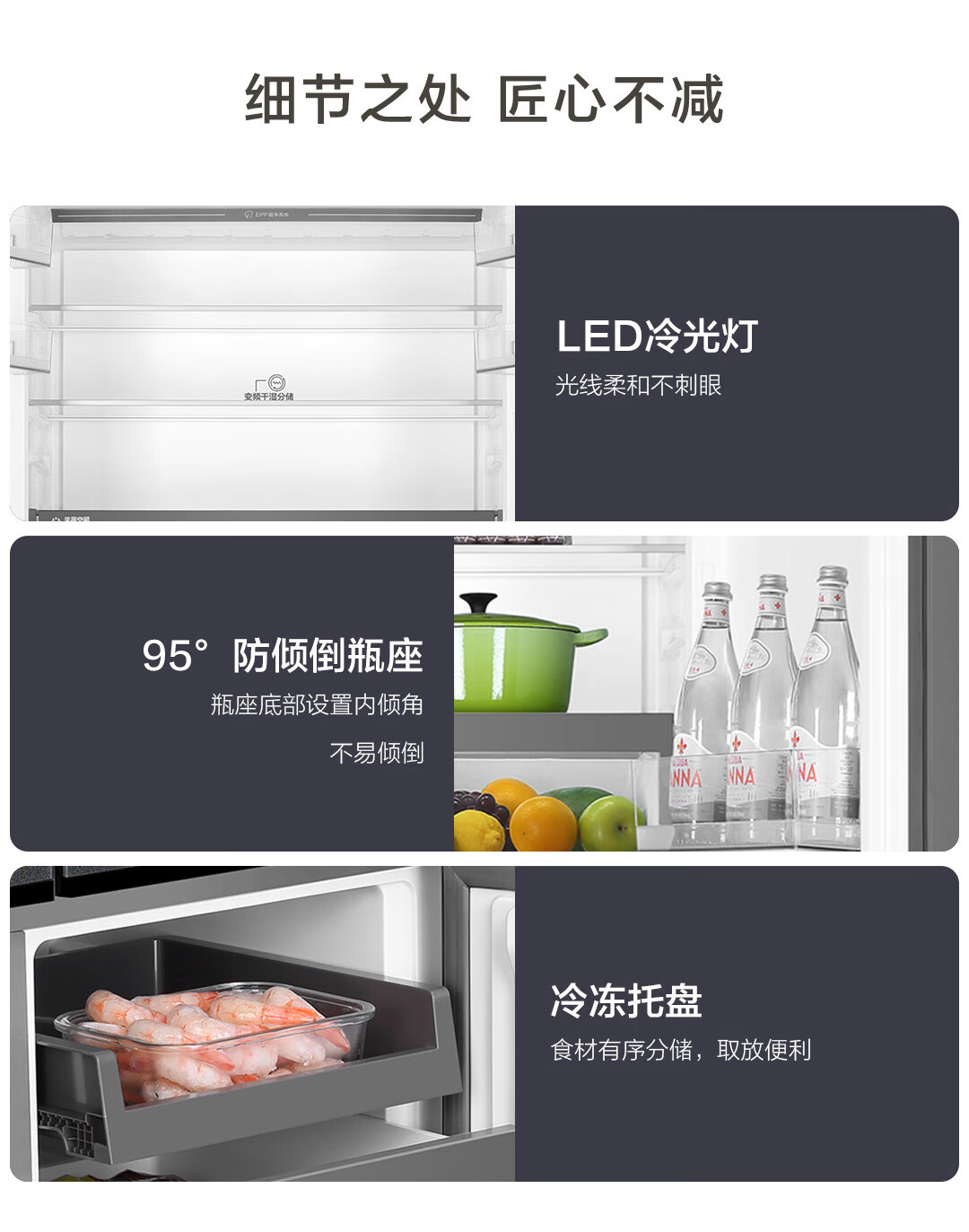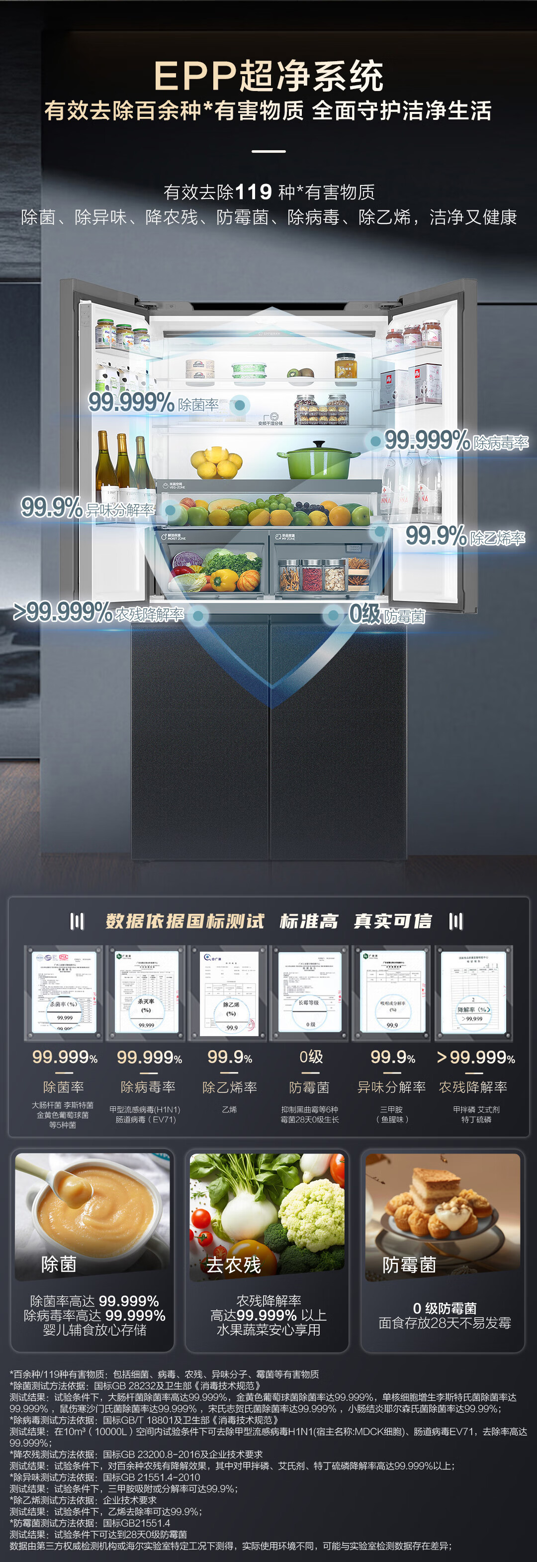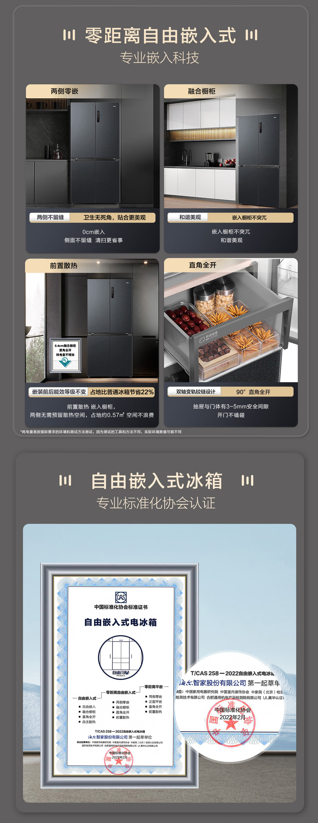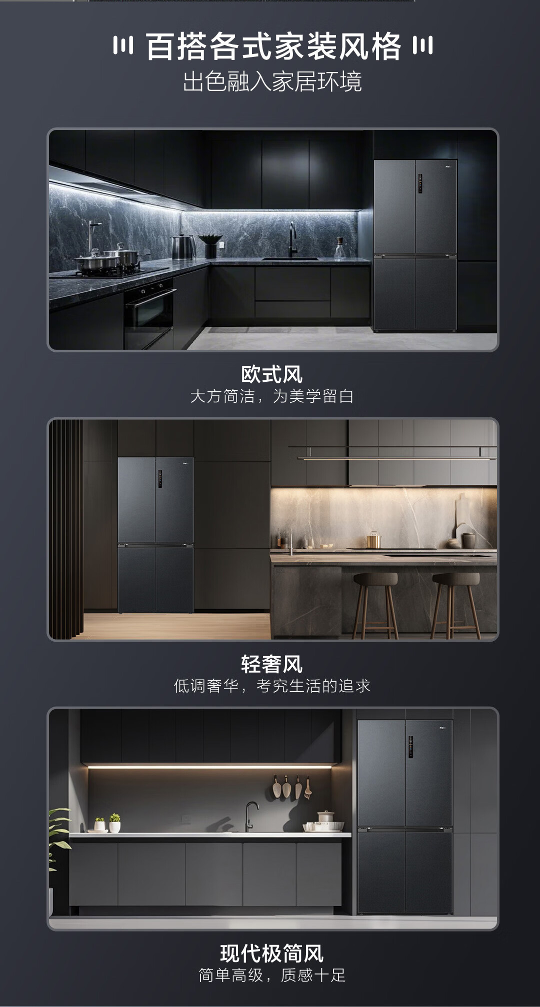 海尔(Haier)540L四开门十字对开门冰箱超薄零嵌EPP超净全空间保险科技阻氧干湿分储宽幅变温大容量智能电冰箱 BCD-540WGHTD14GPU1(灰)