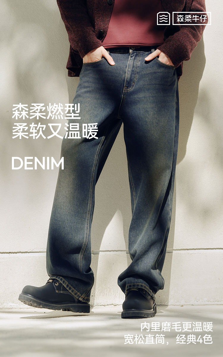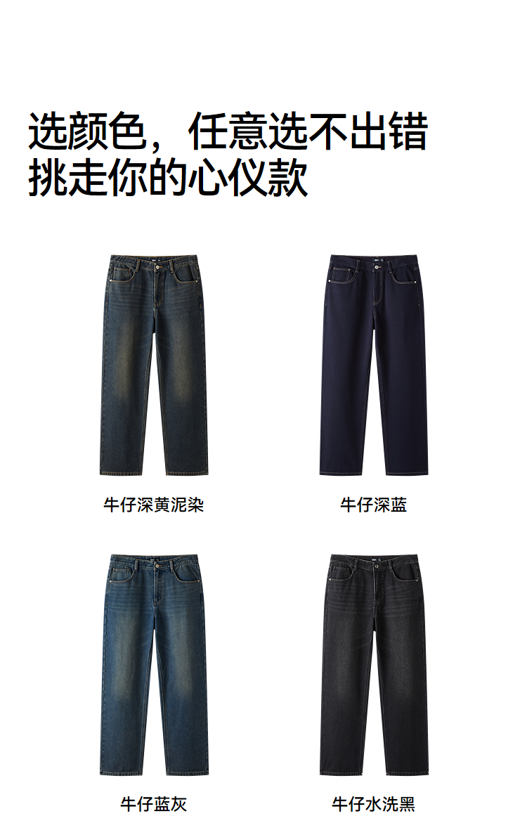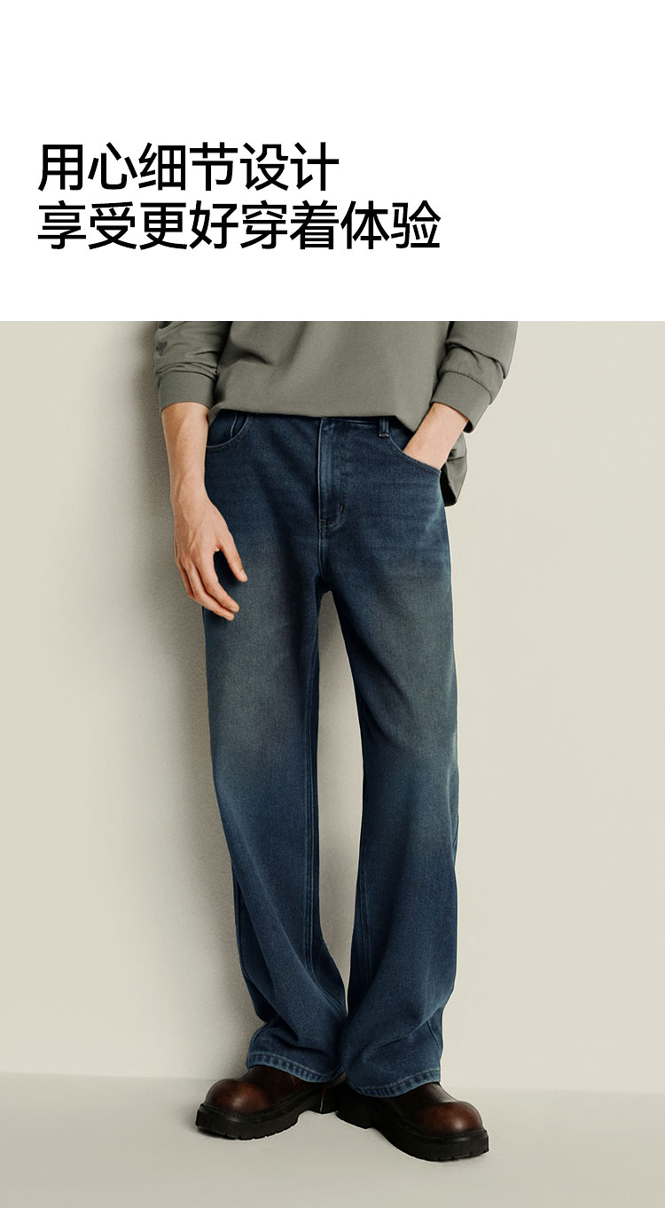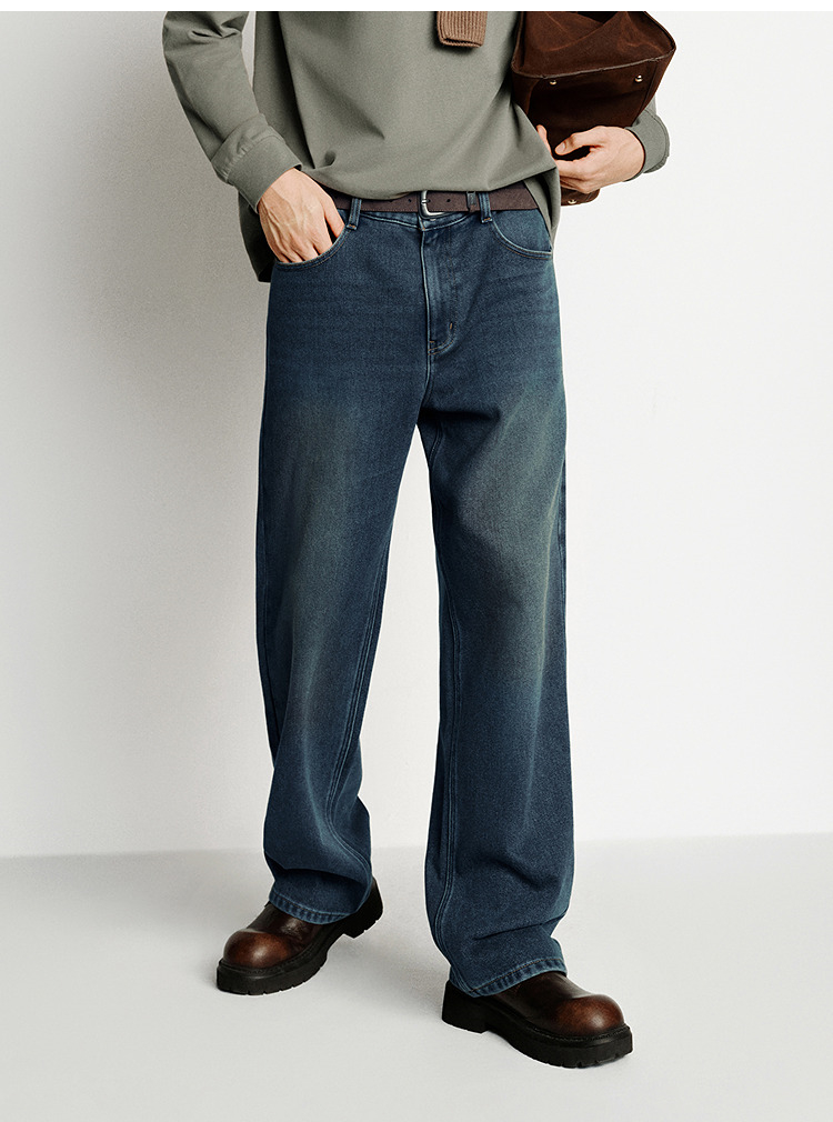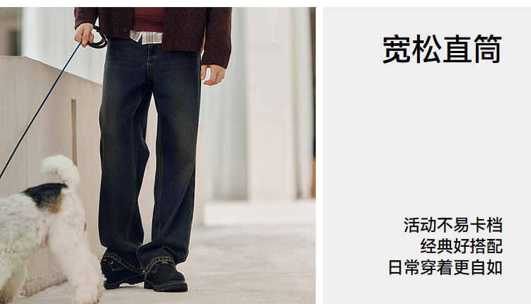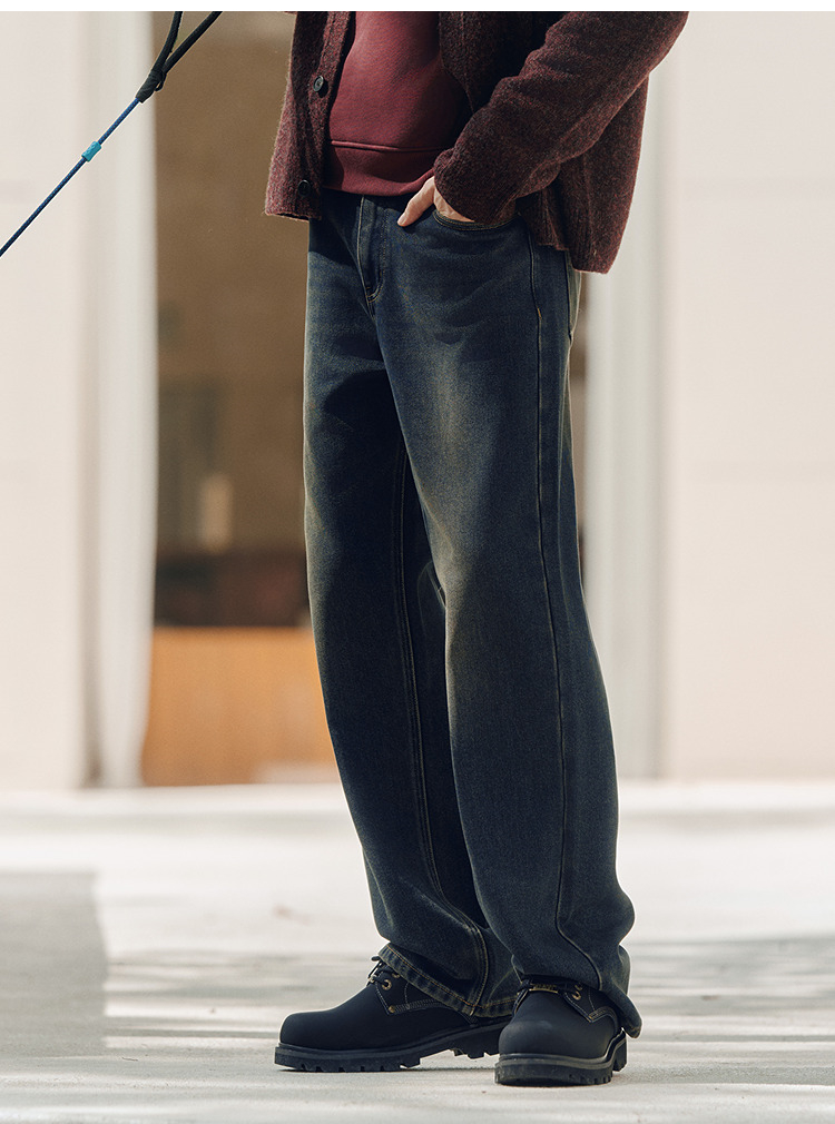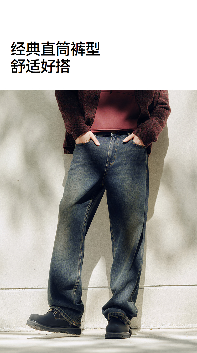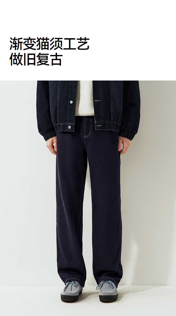 森马牛仔裤男猫须做旧复古宽松直筒裤2025秋冬新款长裤子经典质感