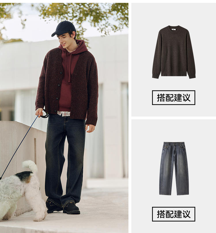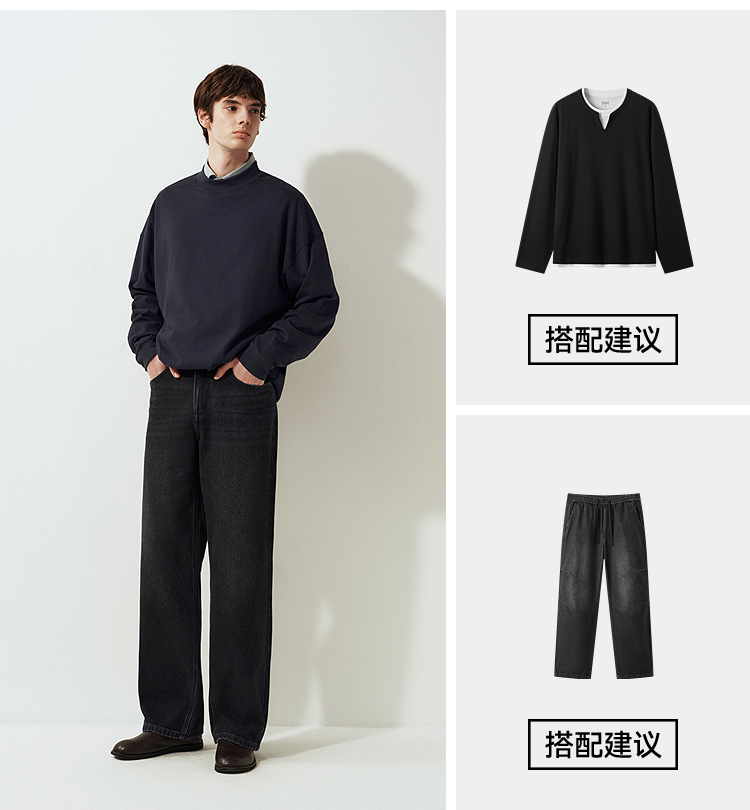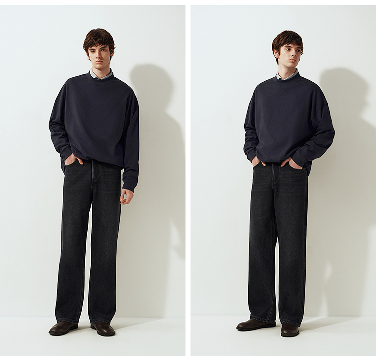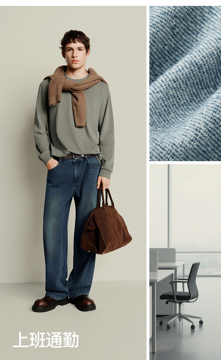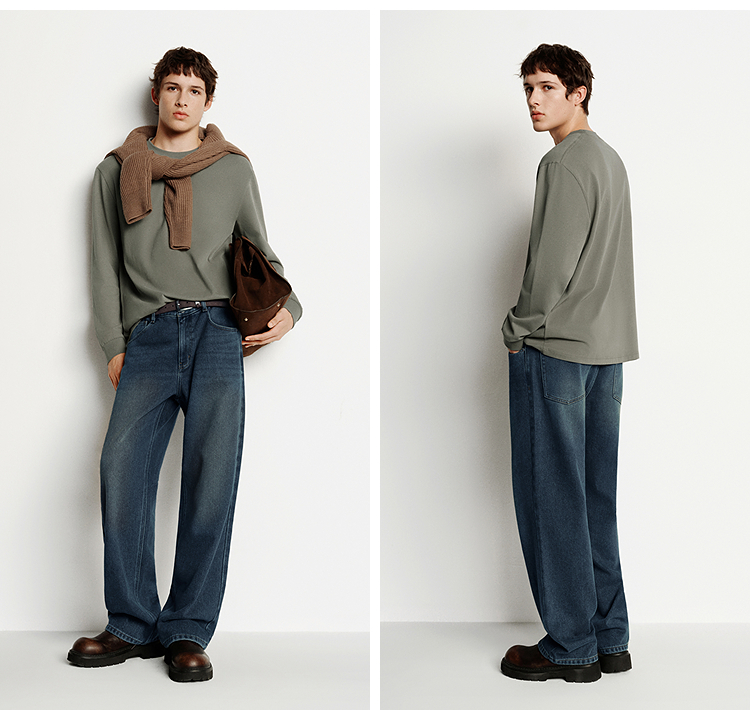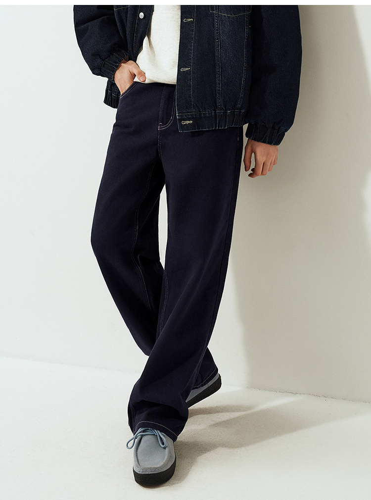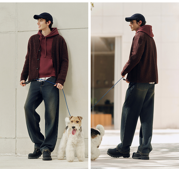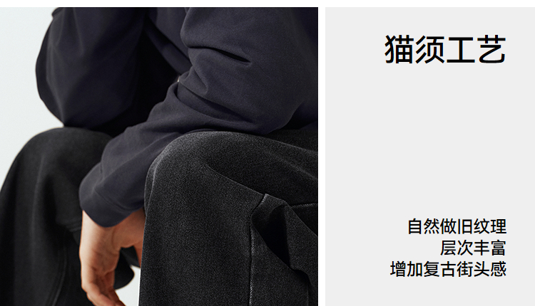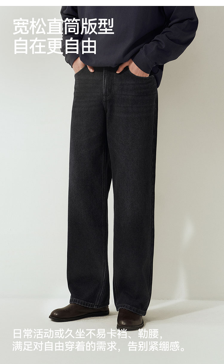 森马牛仔裤男猫须做旧复古宽松直筒裤2025秋冬新款长裤子经典质感