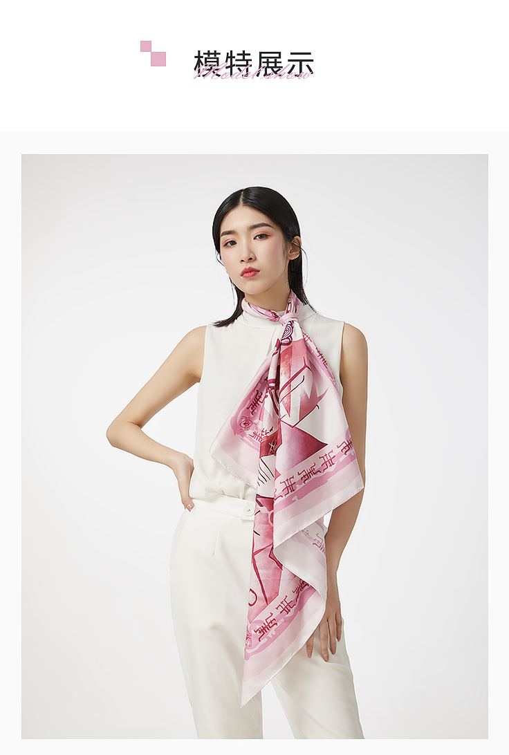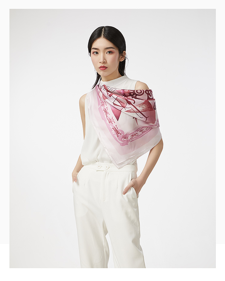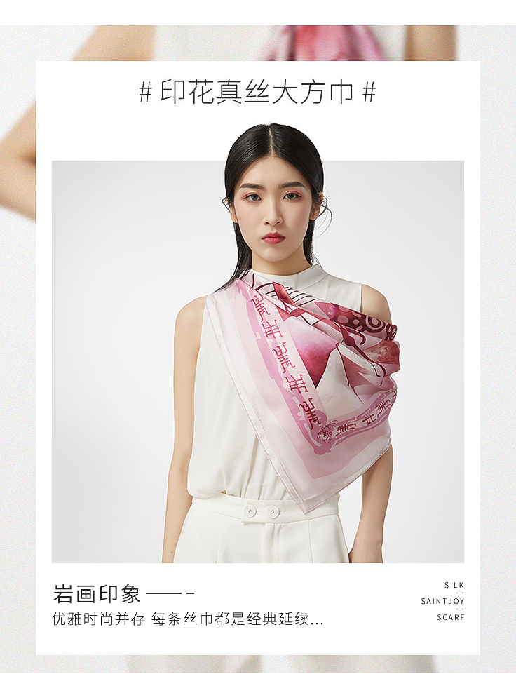 SAINTJOY/上久楷 女式真丝方巾 春风十里 FJS23044