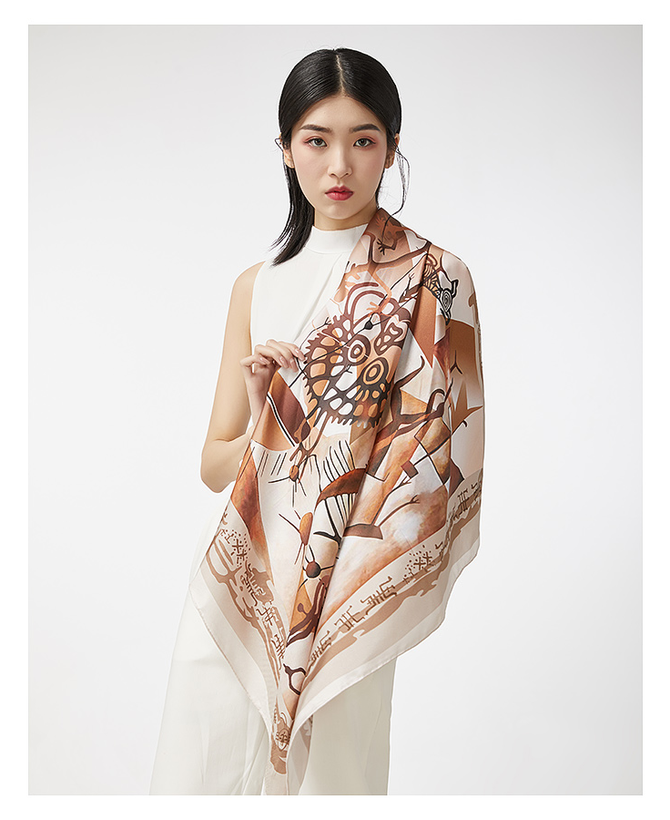 SAINTJOY/上久楷 真丝方巾 贺兰口岩画印象FJS19027