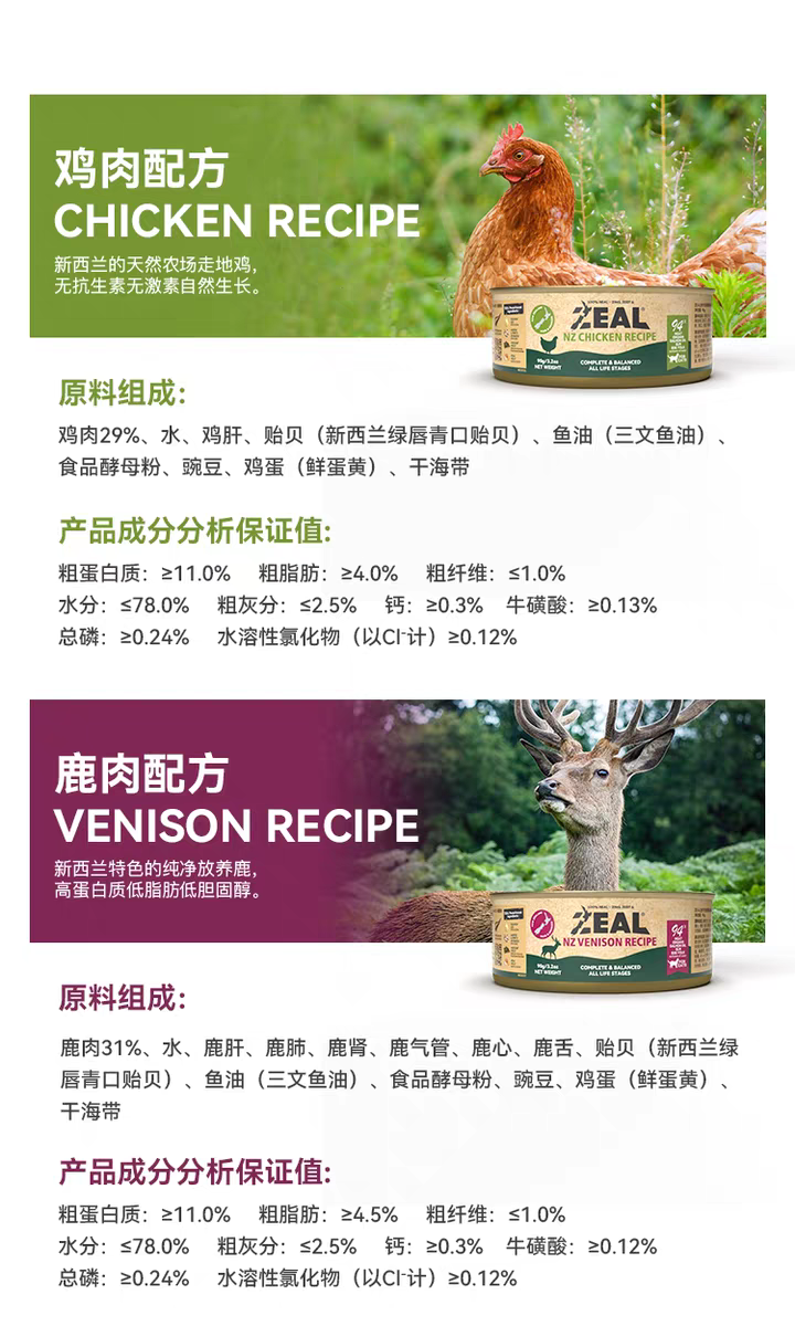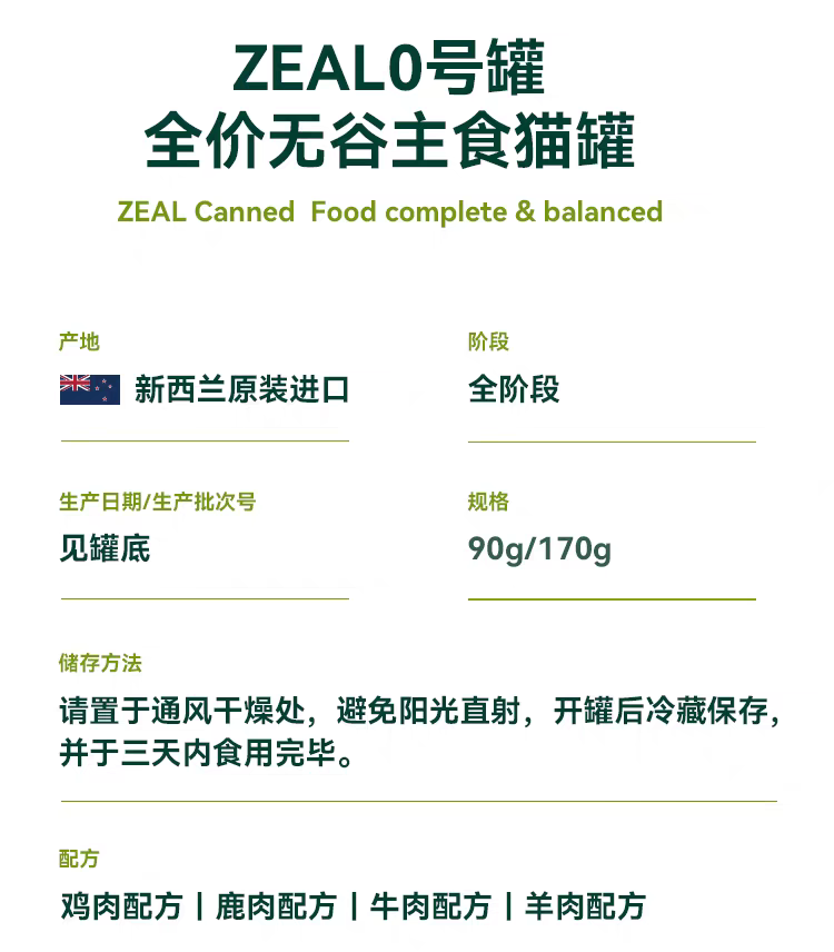 ZEAL猫咪全价主食罐头 新西兰原装进口 自有工厂 无谷营养鲜肉 90g/罐