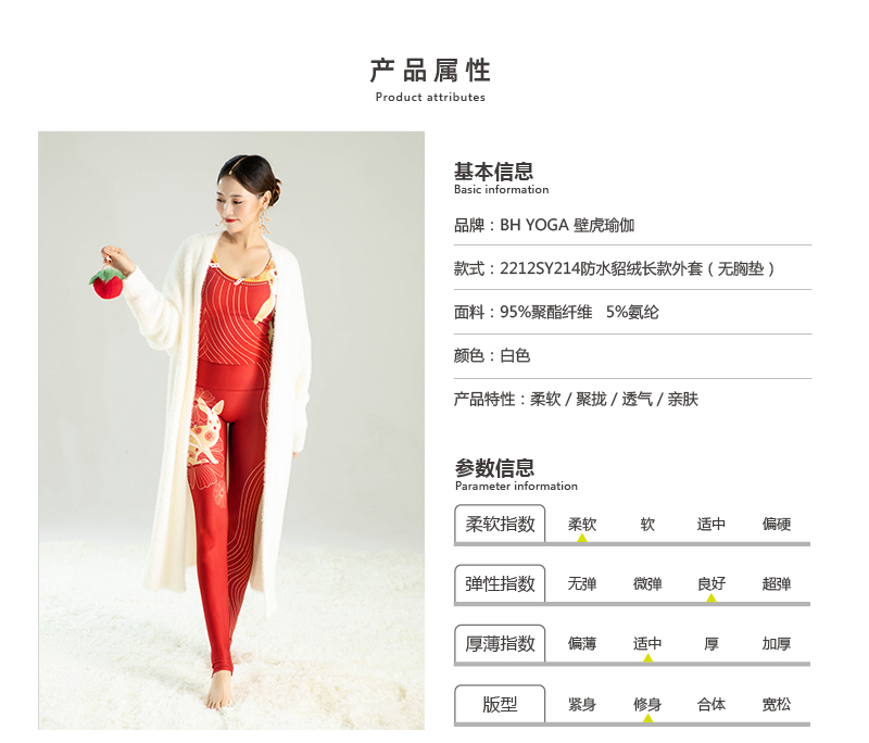 壁虎瑜伽【2212SY214】防水貂绒长款外套【5天发货】(无胸垫)