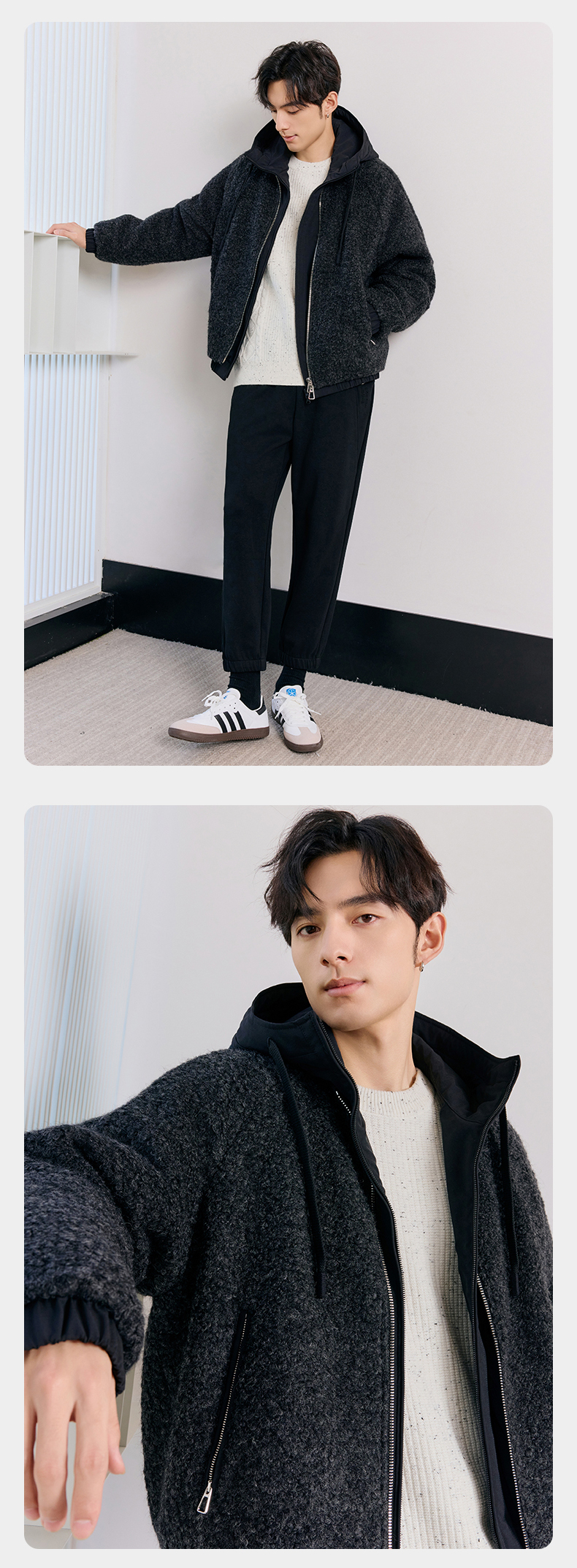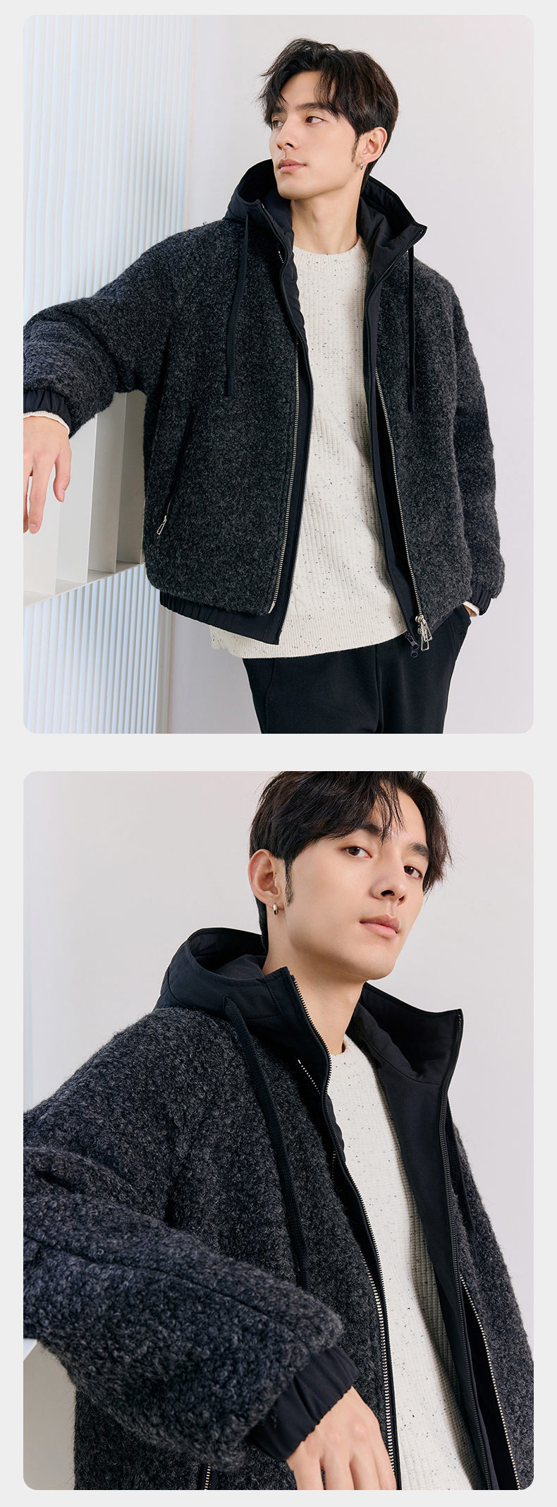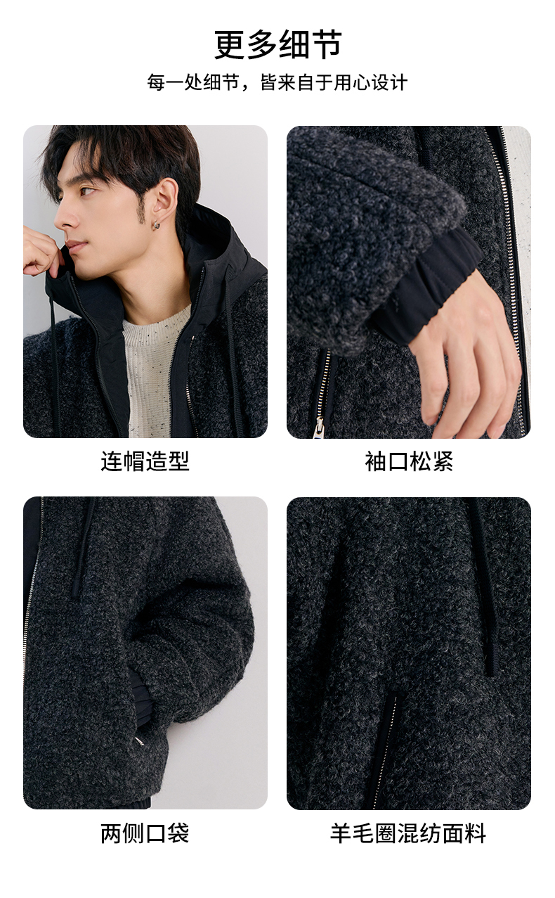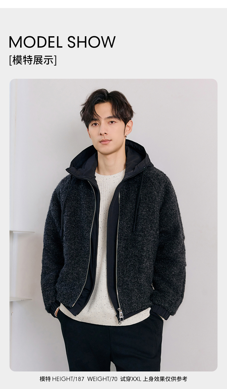 贝纳川羊毛连帽羽绒服ECT405136
