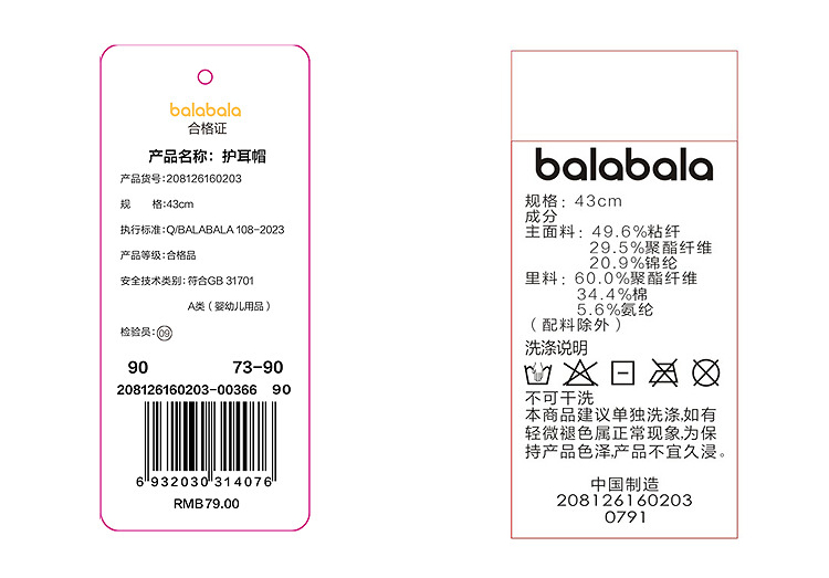 【balaOne】巴拉巴拉儿童帽子男女童2025年新款冬装宝宝保暖可爱