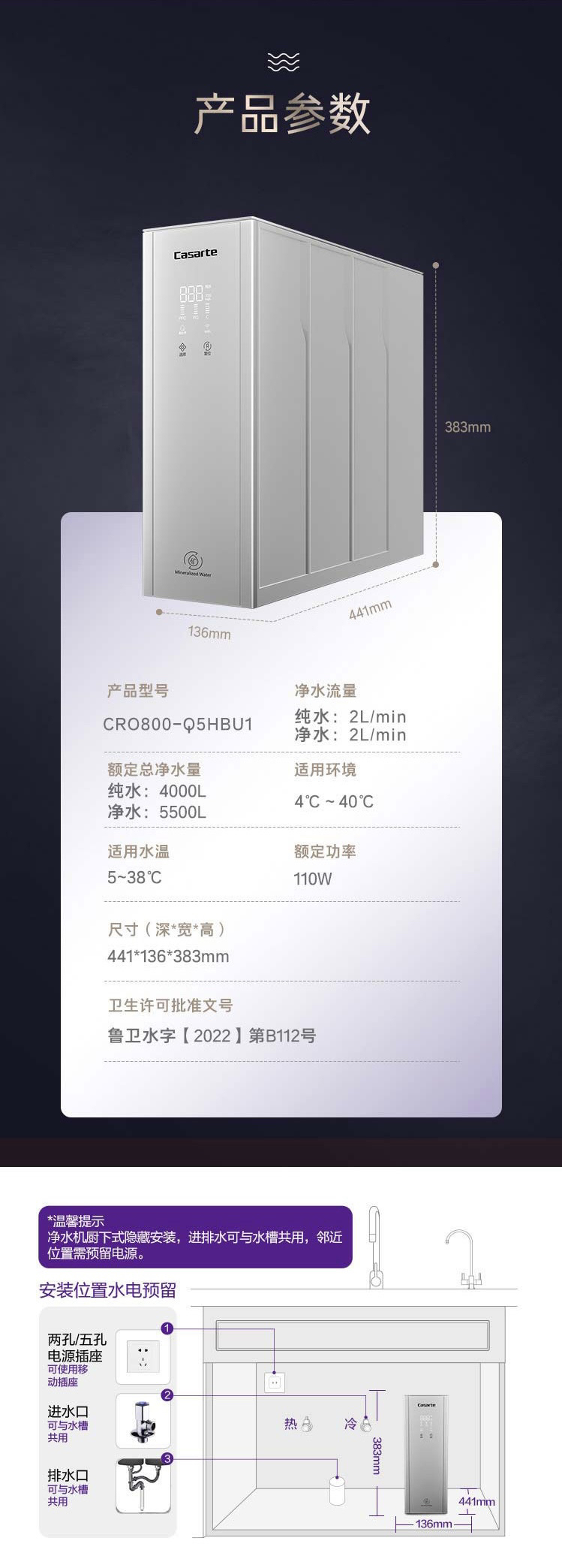 卡萨帝(Casarte)净水机 CRO800-Q5HBU1