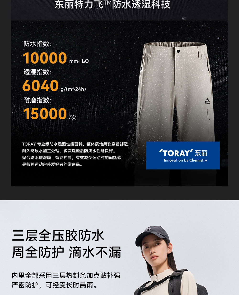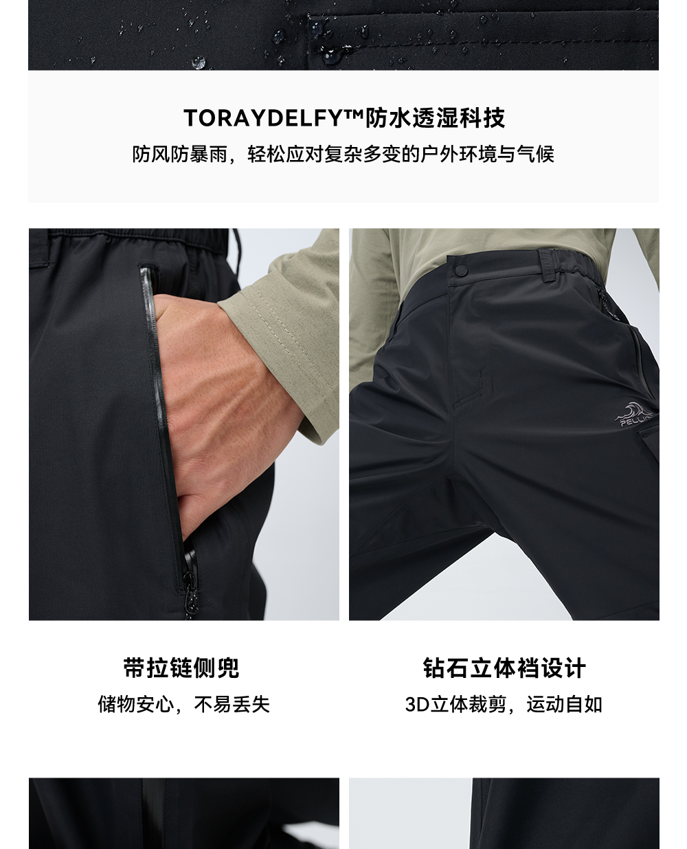 伯希和户外硬壳冲锋裤男女2025新款3L全压胶暴雨级防水专业滑雪裤