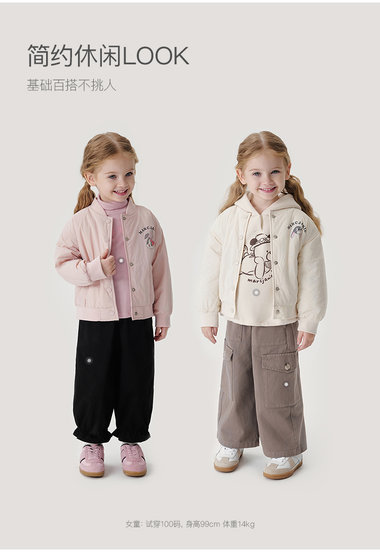 马克珍妮女童趣味印花夹棉棒球服外套2024年秋装新款241631