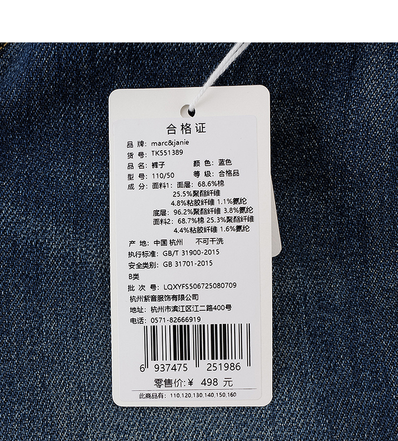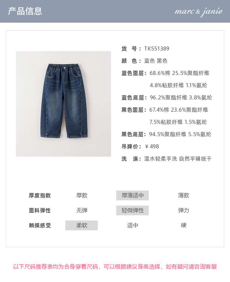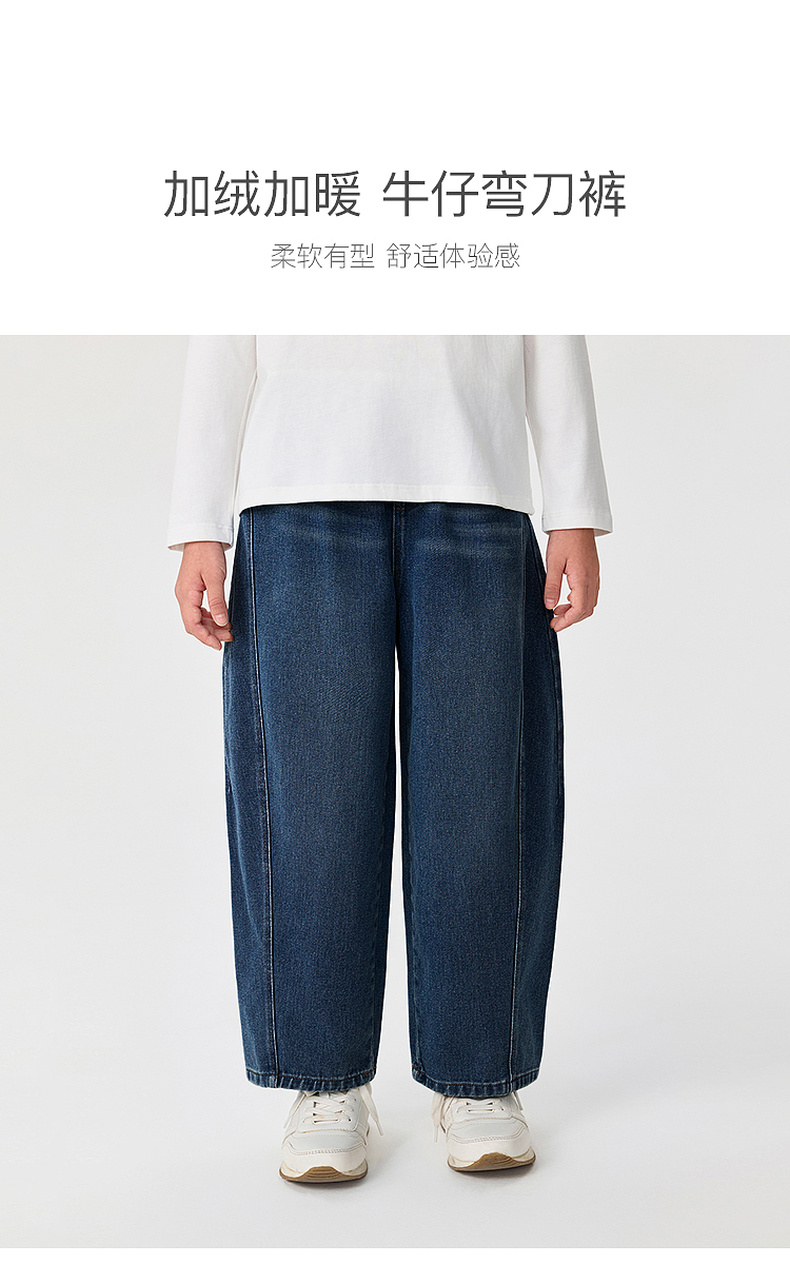 马克珍妮女童加绒保暖牛仔弯刀裤2025年秋冬新款551389