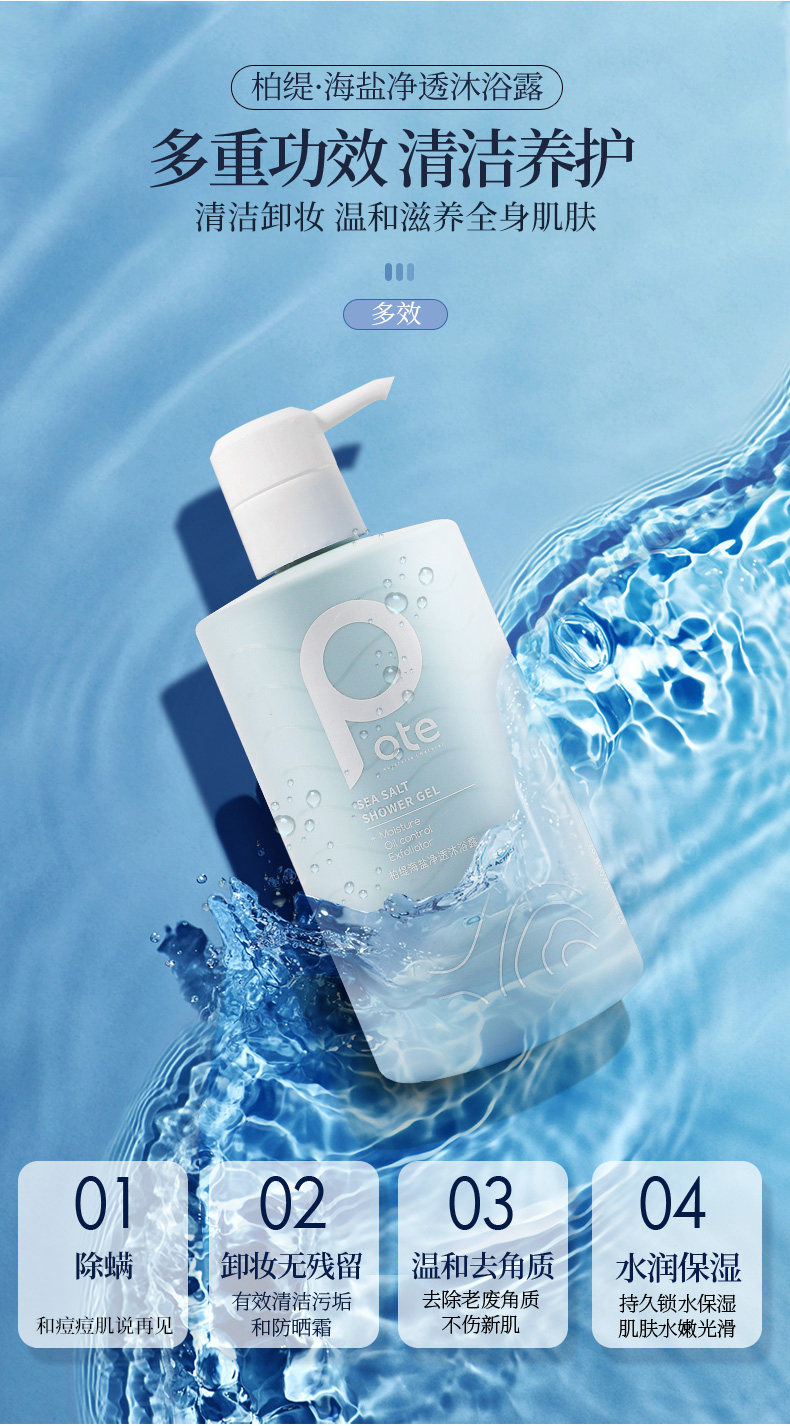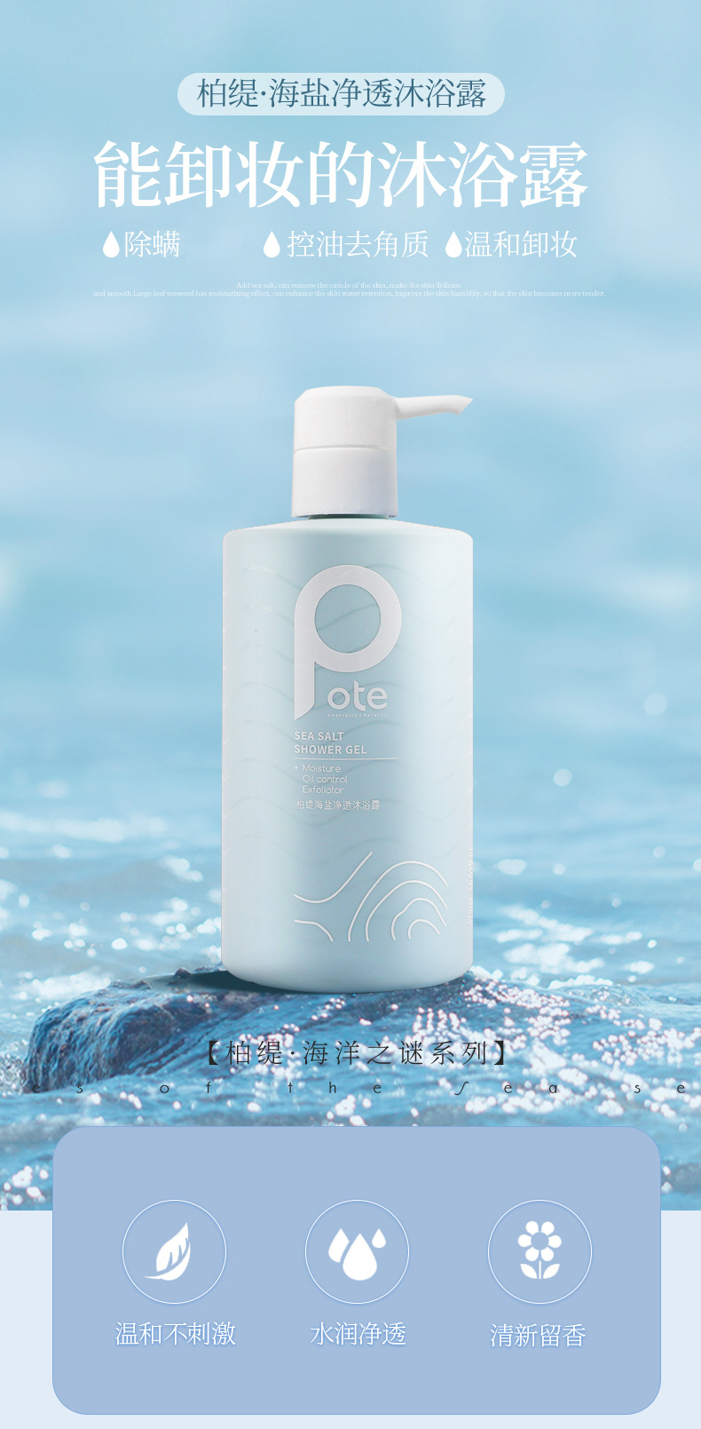 「除螨沐浴露」Pote柏缇海洋之谜海盐净透沐浴露 温和卸妆 水润保湿 控油去角质 475ml/瓶【赠随机袋装小样+沐浴球】